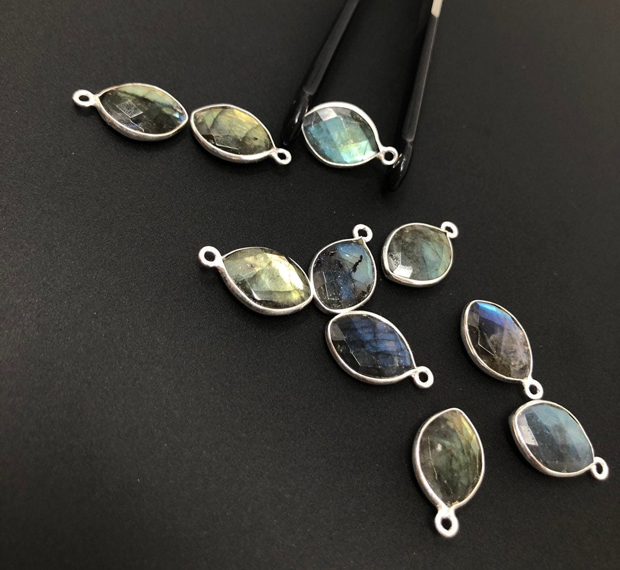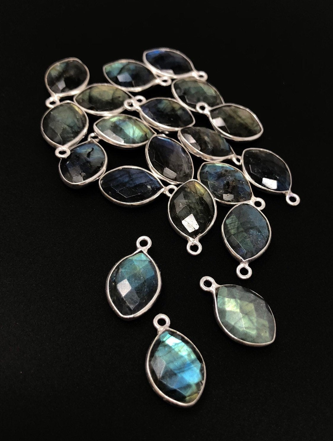 Wholesale Labradorite Gemstone Charms, Sterling Silver Charms, Jewelry Findings, Jewelry Making, Jewelry Supplies, 3 Pcs/4 Pcs, 15.5x9.5mm