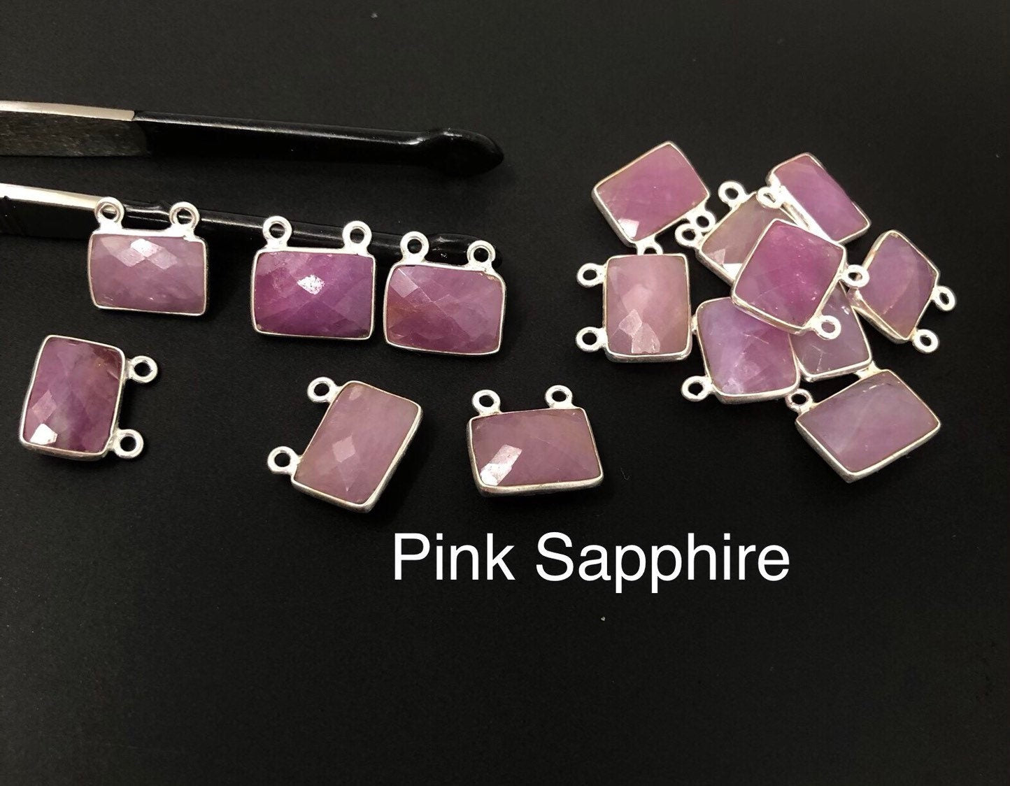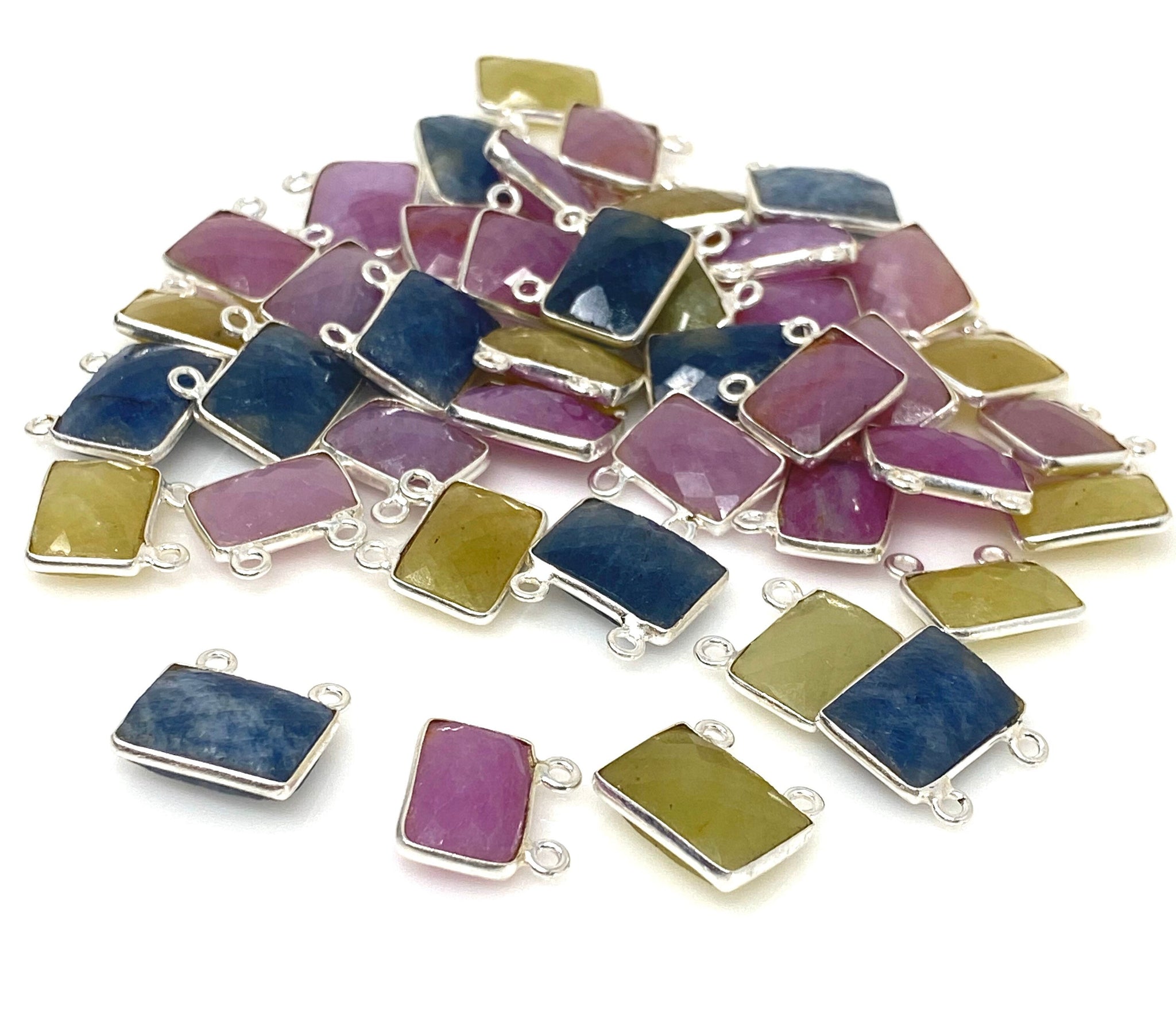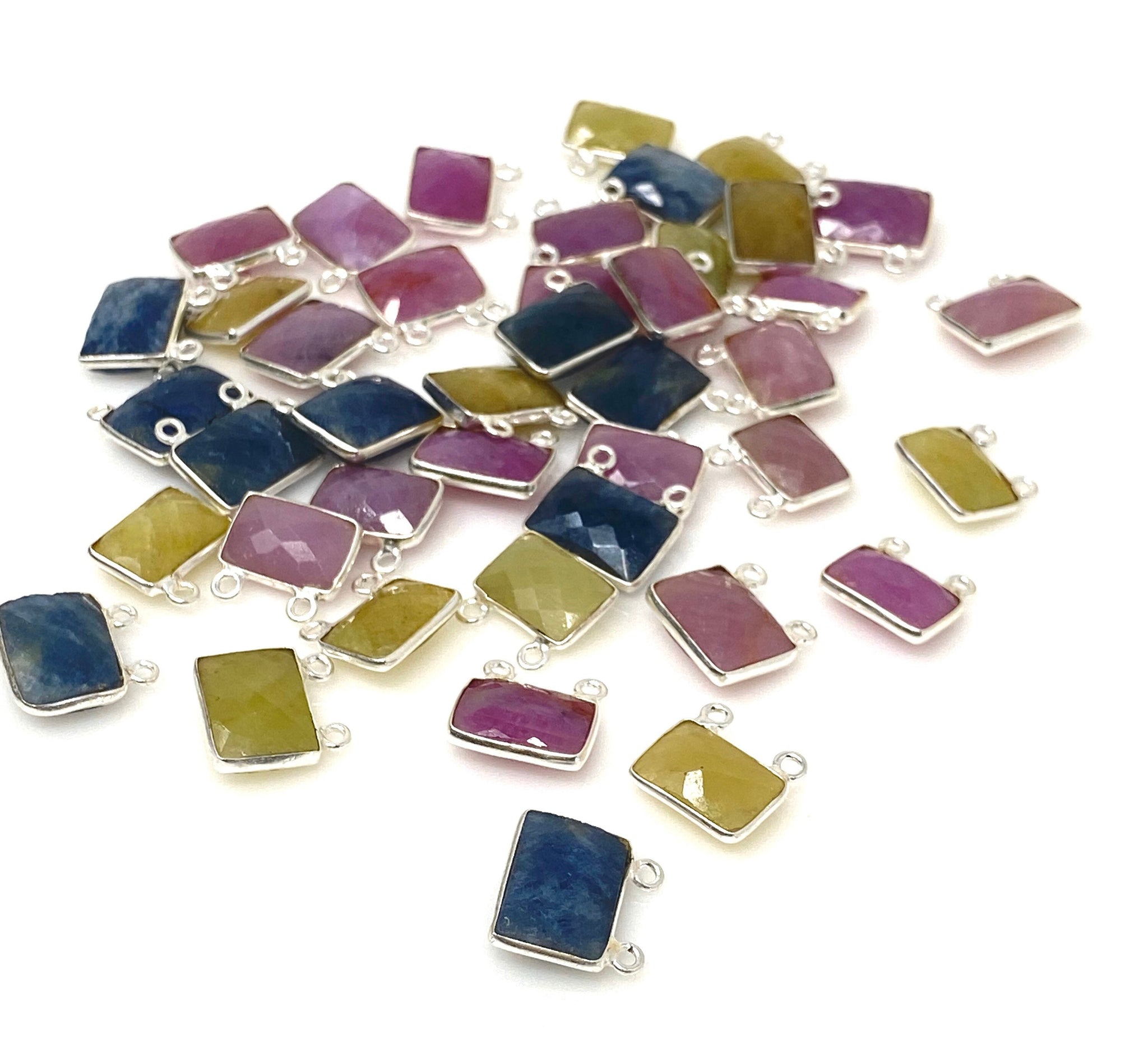 10 Pcs/ 12 Pcs Natural Sapphire Gemstone Connectors, Bulk Jewelry Supplies, Sterling Silver Jewelry Findings, 12x13mm - 14x15mm