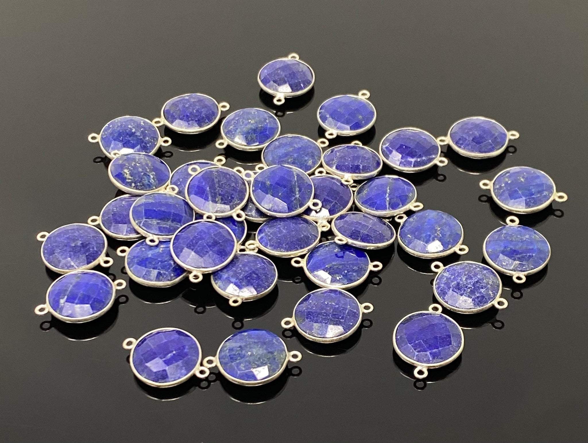 Silver Plated Gemstone Lapis Lazuli Bezel Connectors Jewelry Supplies for Jewelry Making.