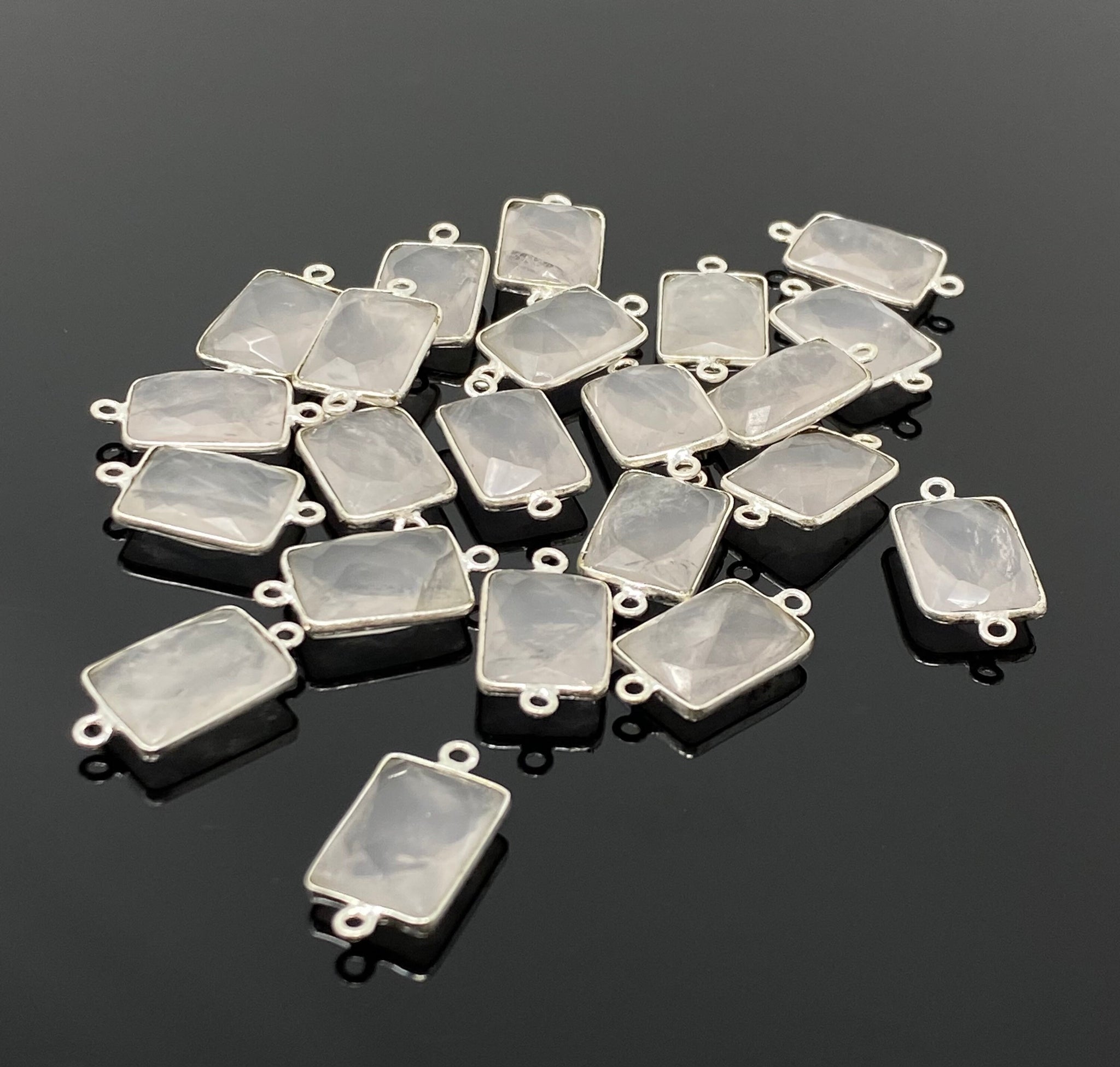 Natural Genuine Untreated Faceted Gemstone Rose Quartz Silver Plated Connector for Jewelry Making at Wholesale Price.