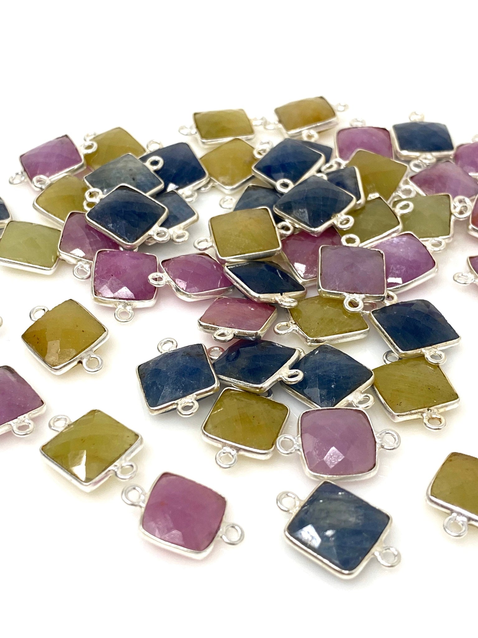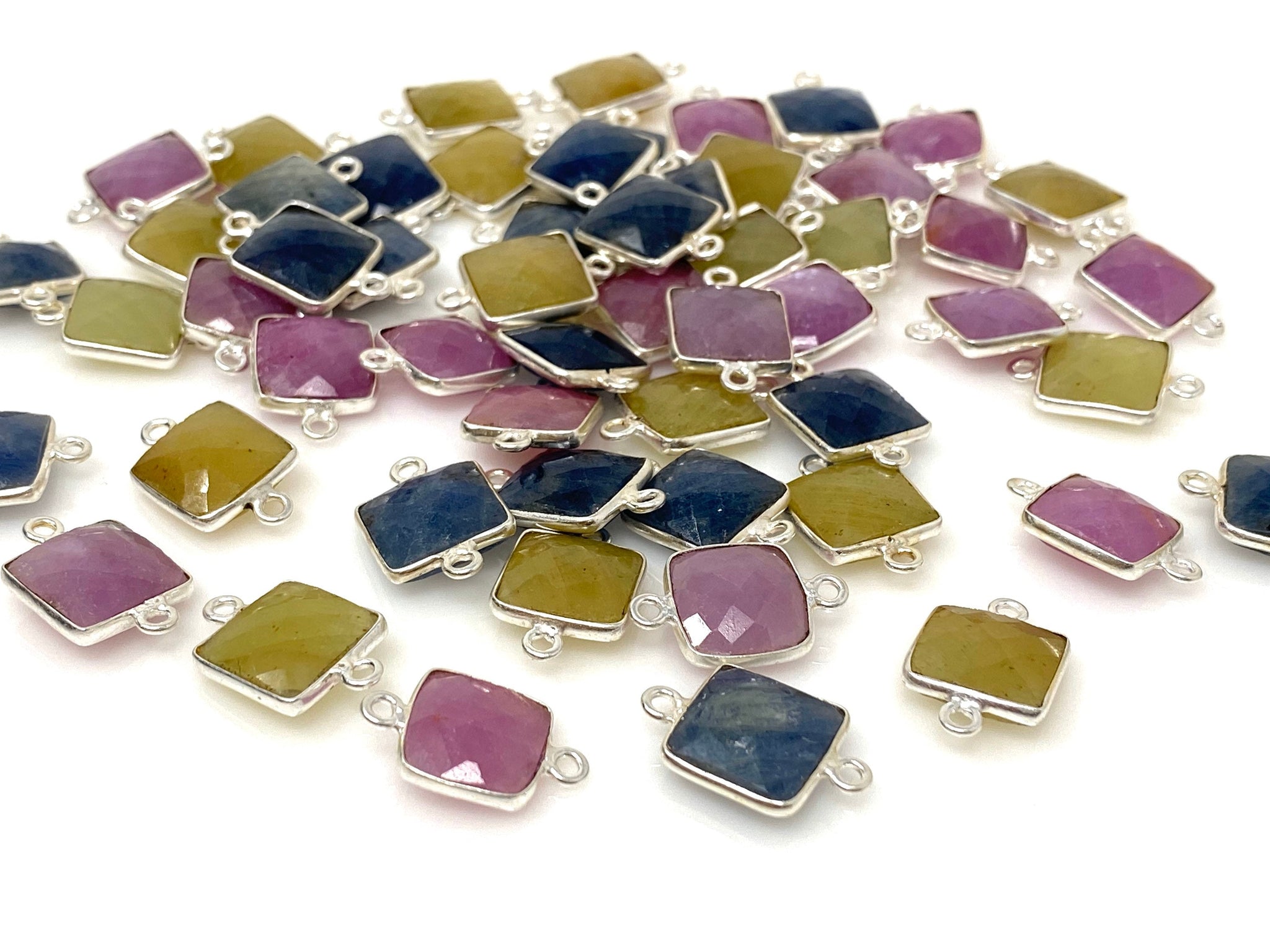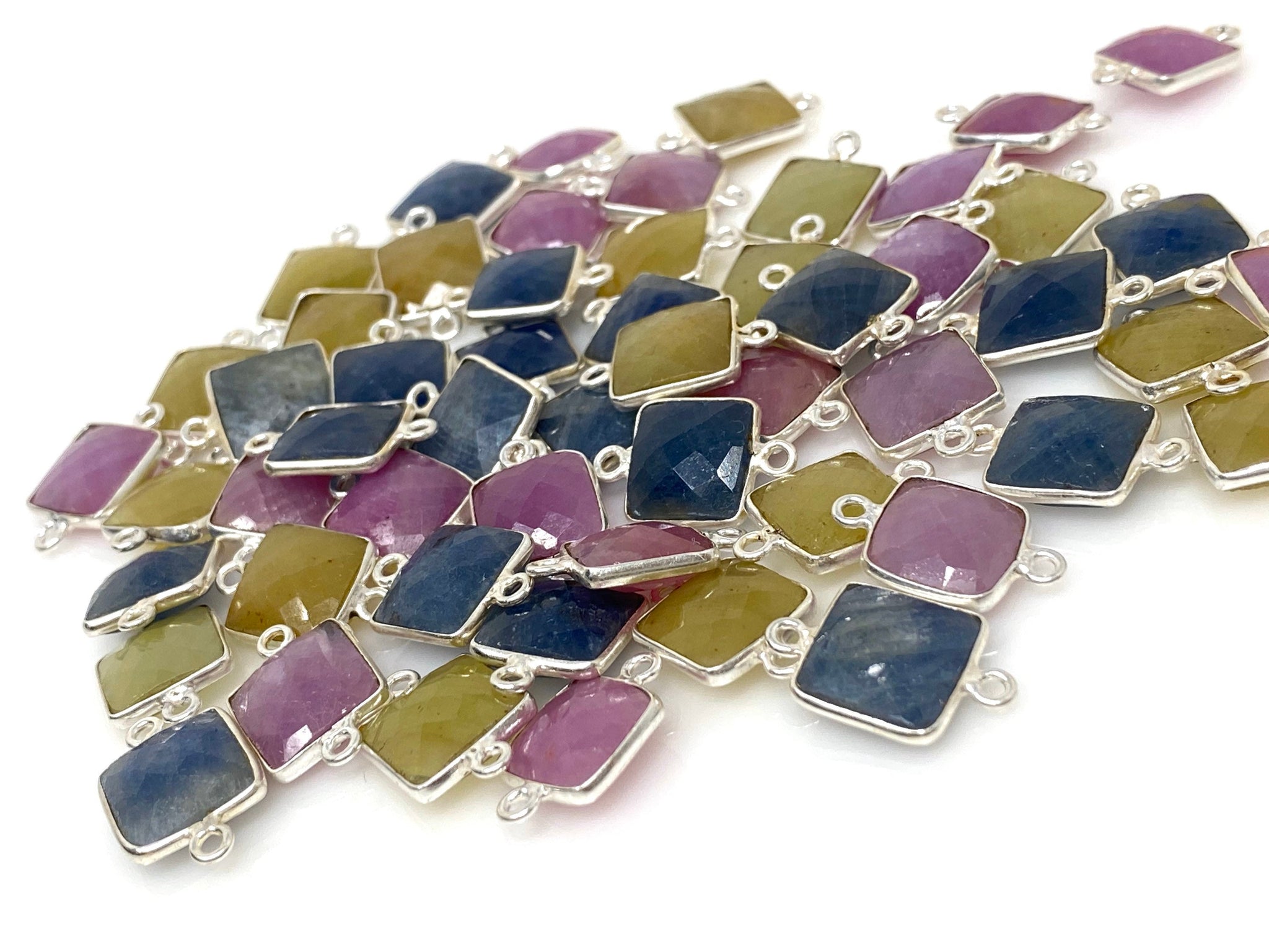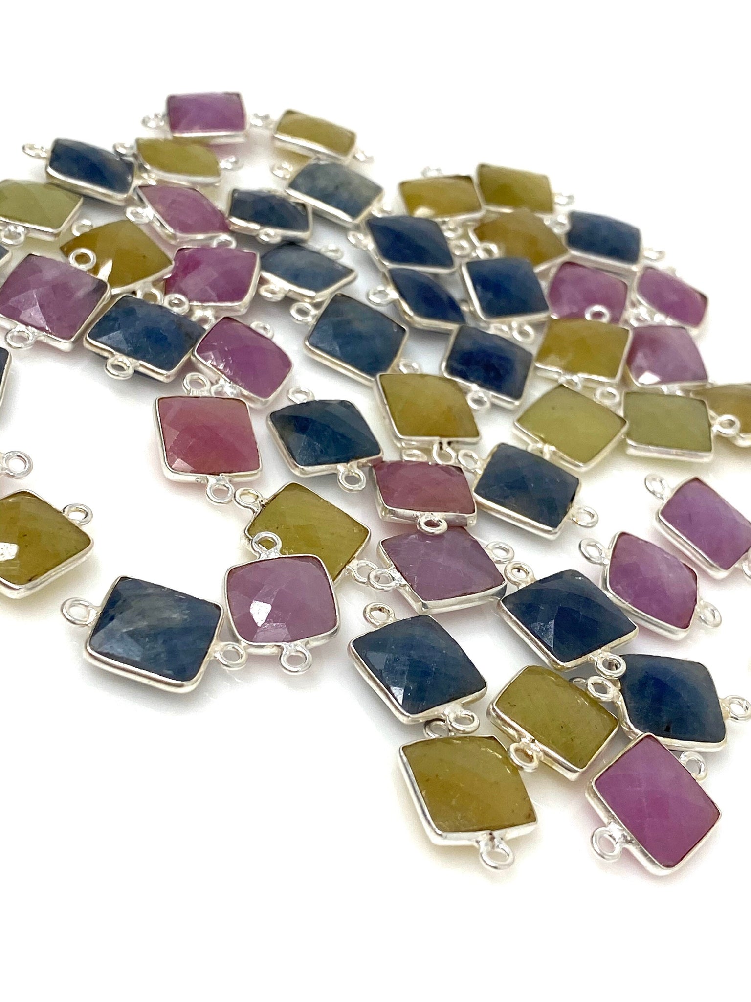 10pcs/ 15 Pcs Natural Sapphire Gemstone Connectors, Sterling Silver Bulk Wholesale Jewelry Supplies, 18X11mm