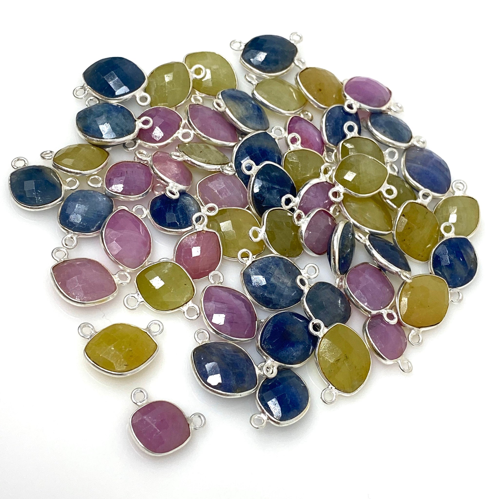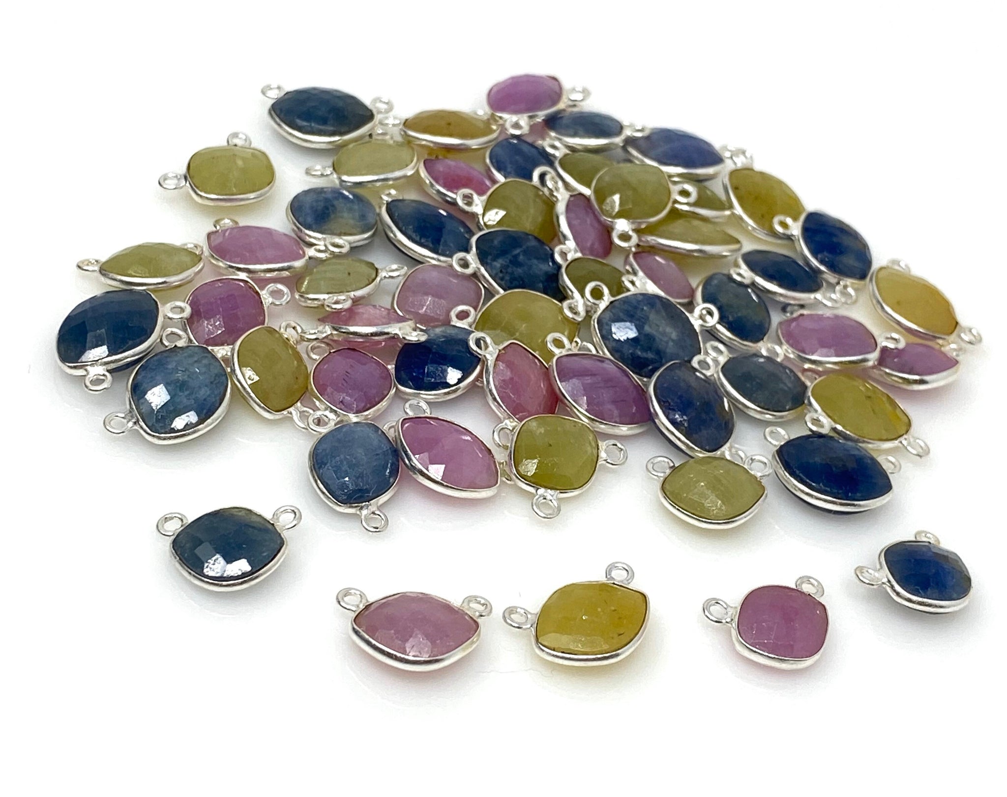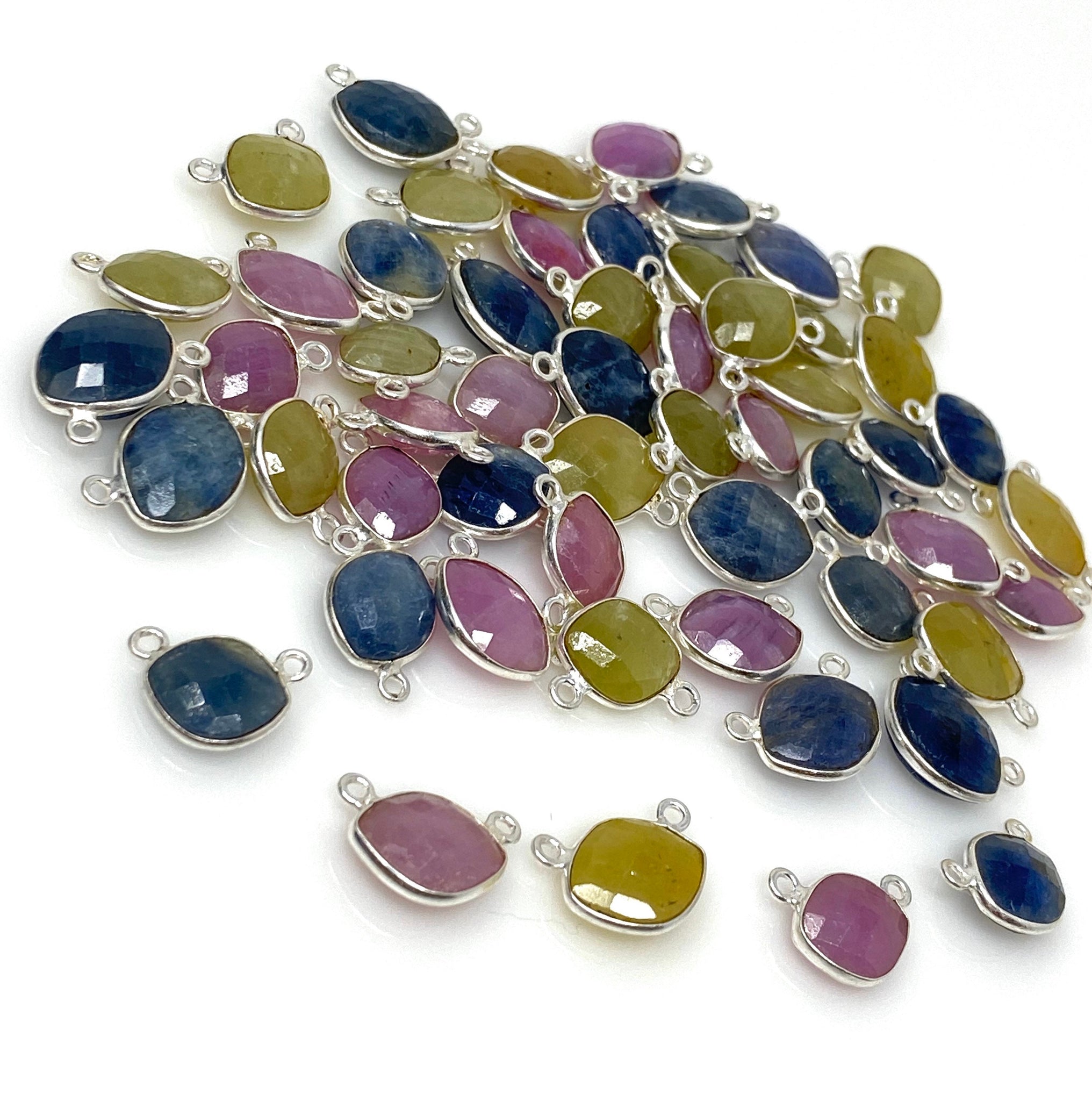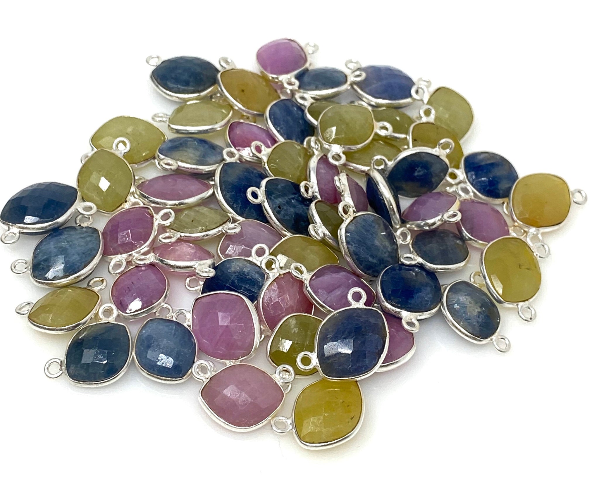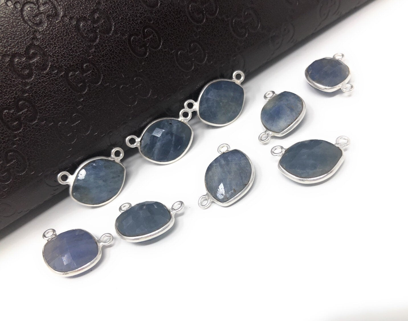10Pcs/ 15 Pcs Natural Sapphire Gemstone Connectors, Sterling Silver Bulk Wholesale Jewelry Supplies, 14x10mm - 17x12mm