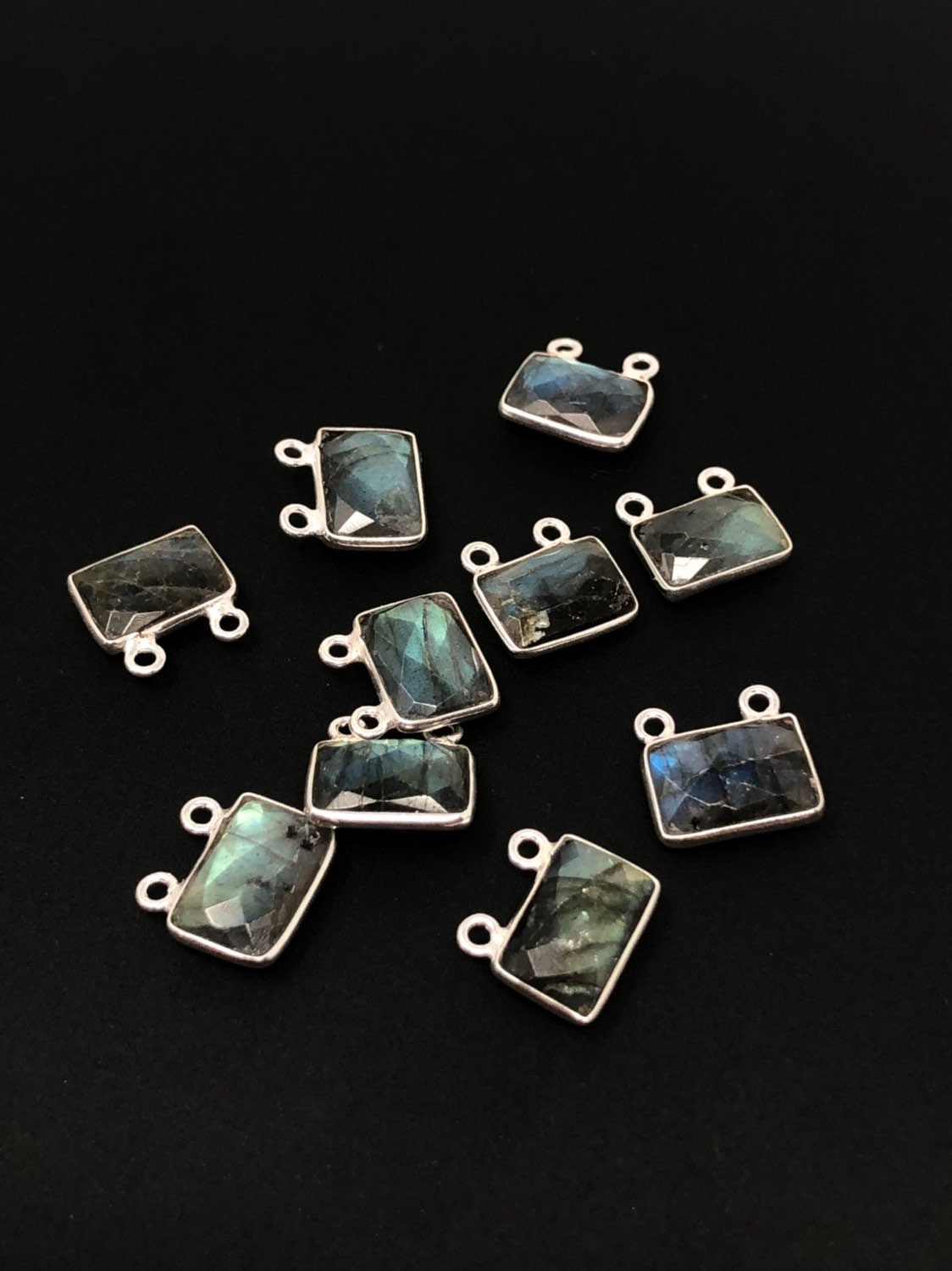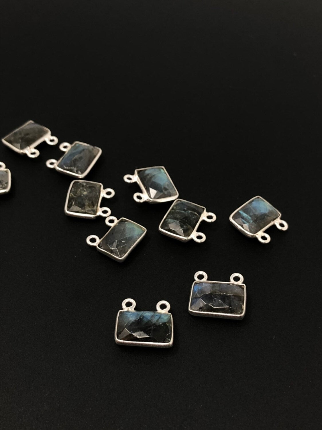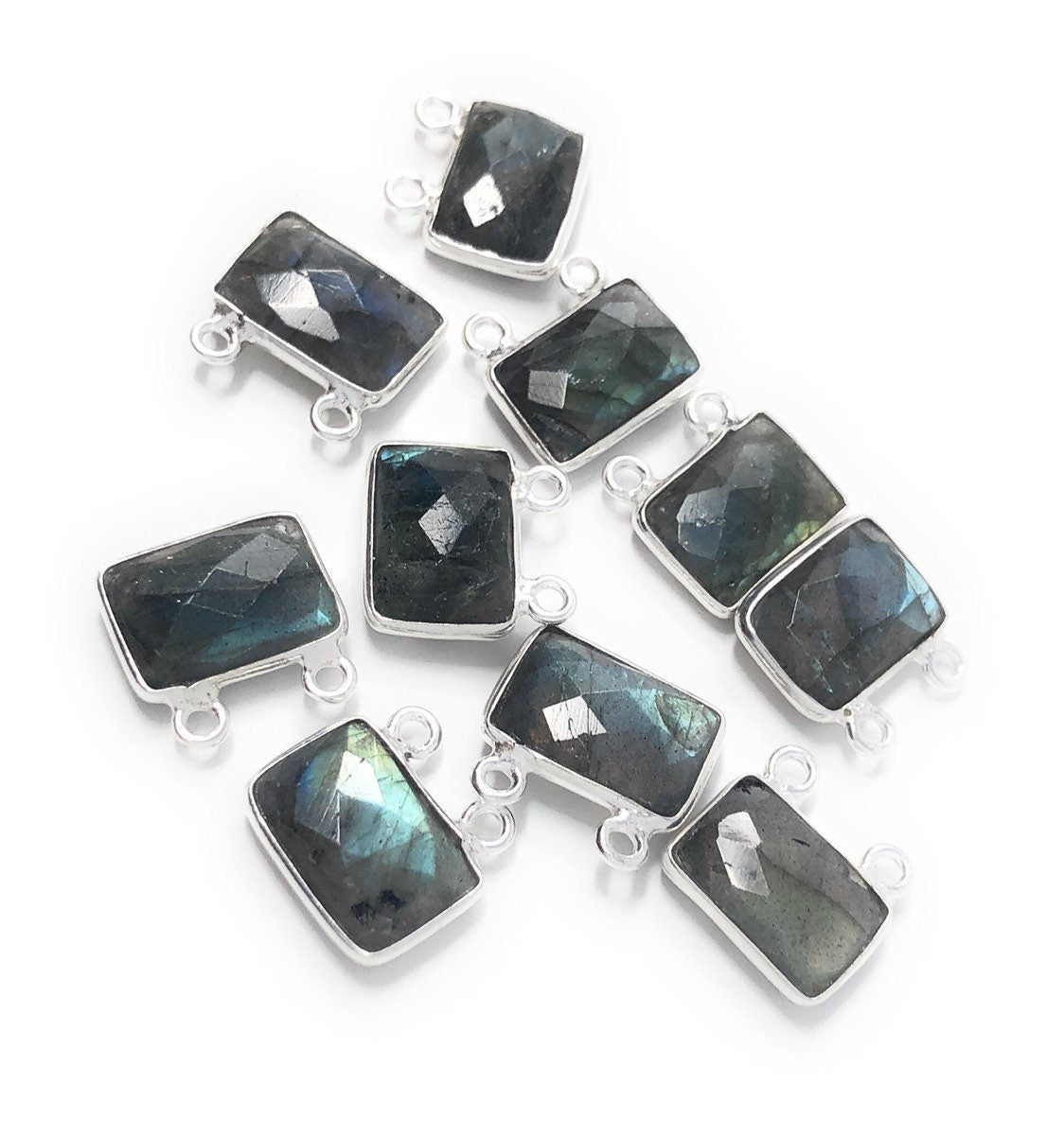 10 pcs Sterling Silver Labradorite Gemstone Double Sided Briolette Connectors Jewelry Findings for Jewelry Making at Wholesale Price.