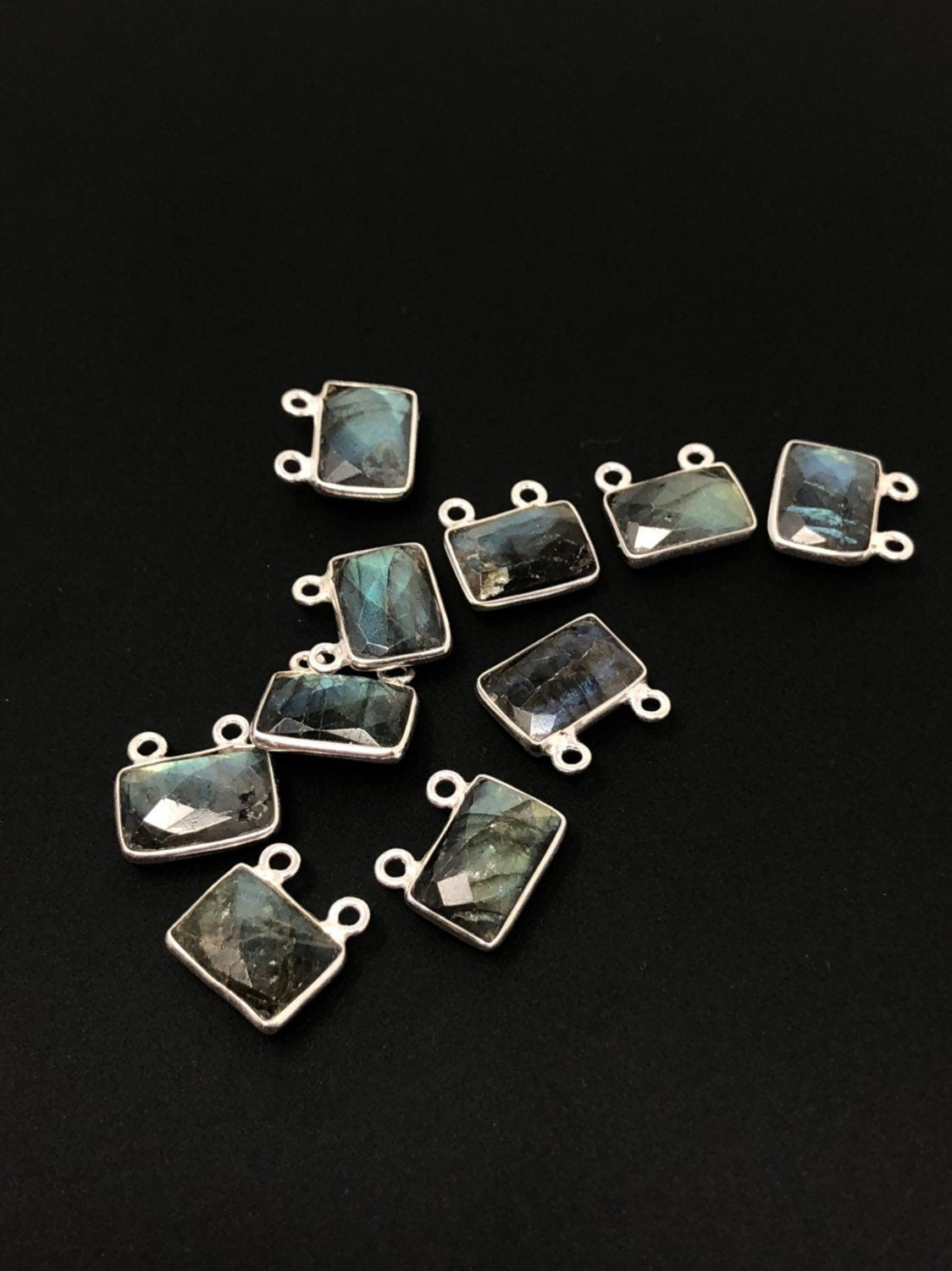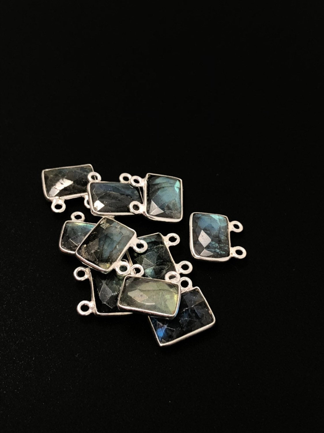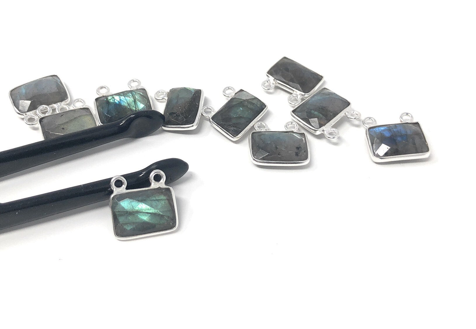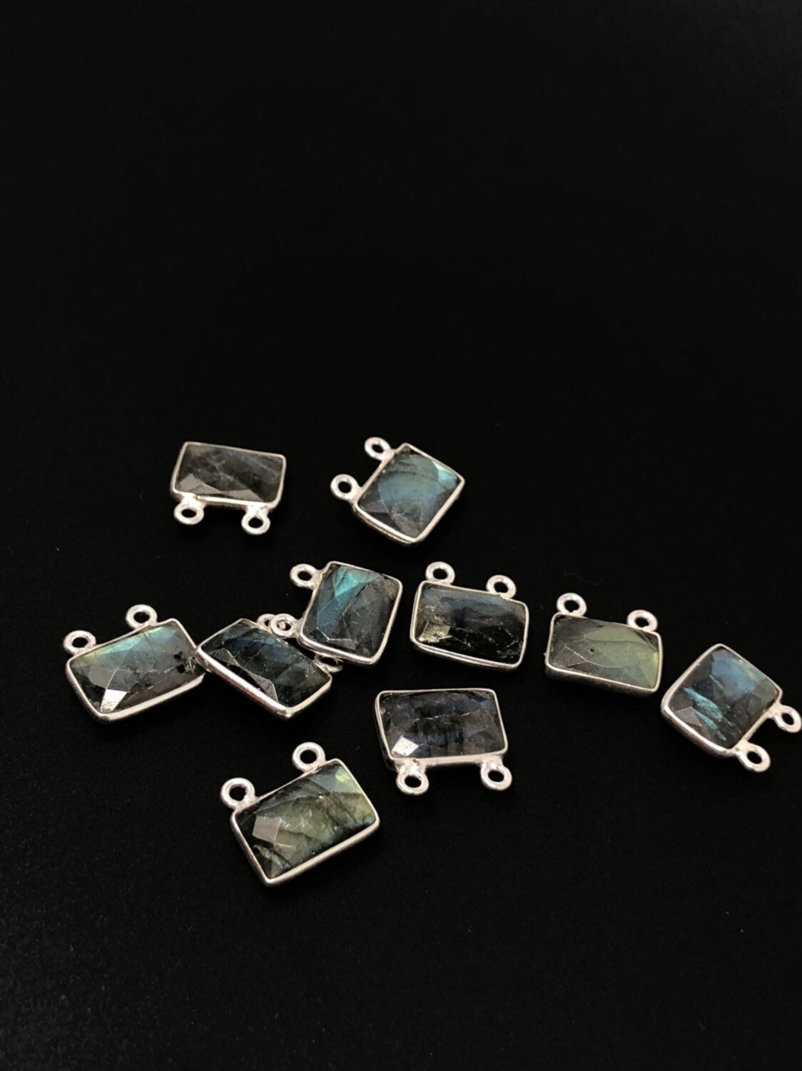10 pcs Sterling Silver Labradorite Gemstone Double Sided Briolette Connectors Jewelry Findings for Jewelry Making at Wholesale Price.