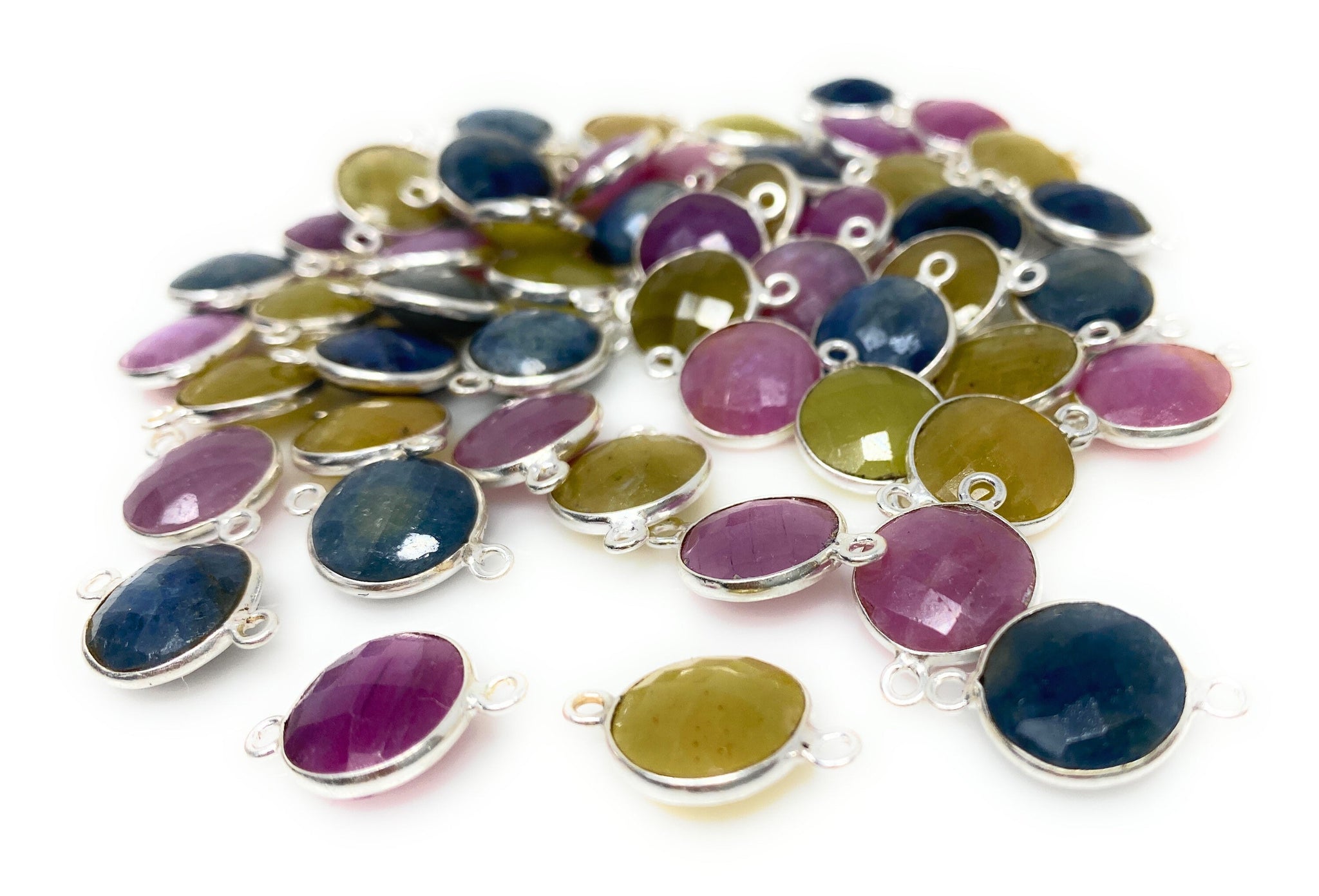 Natural Sapphire Gemstone Sapphire Sterling Silver Connectors Jewelry Findings for Jewelry Making at Wholesale Price.
