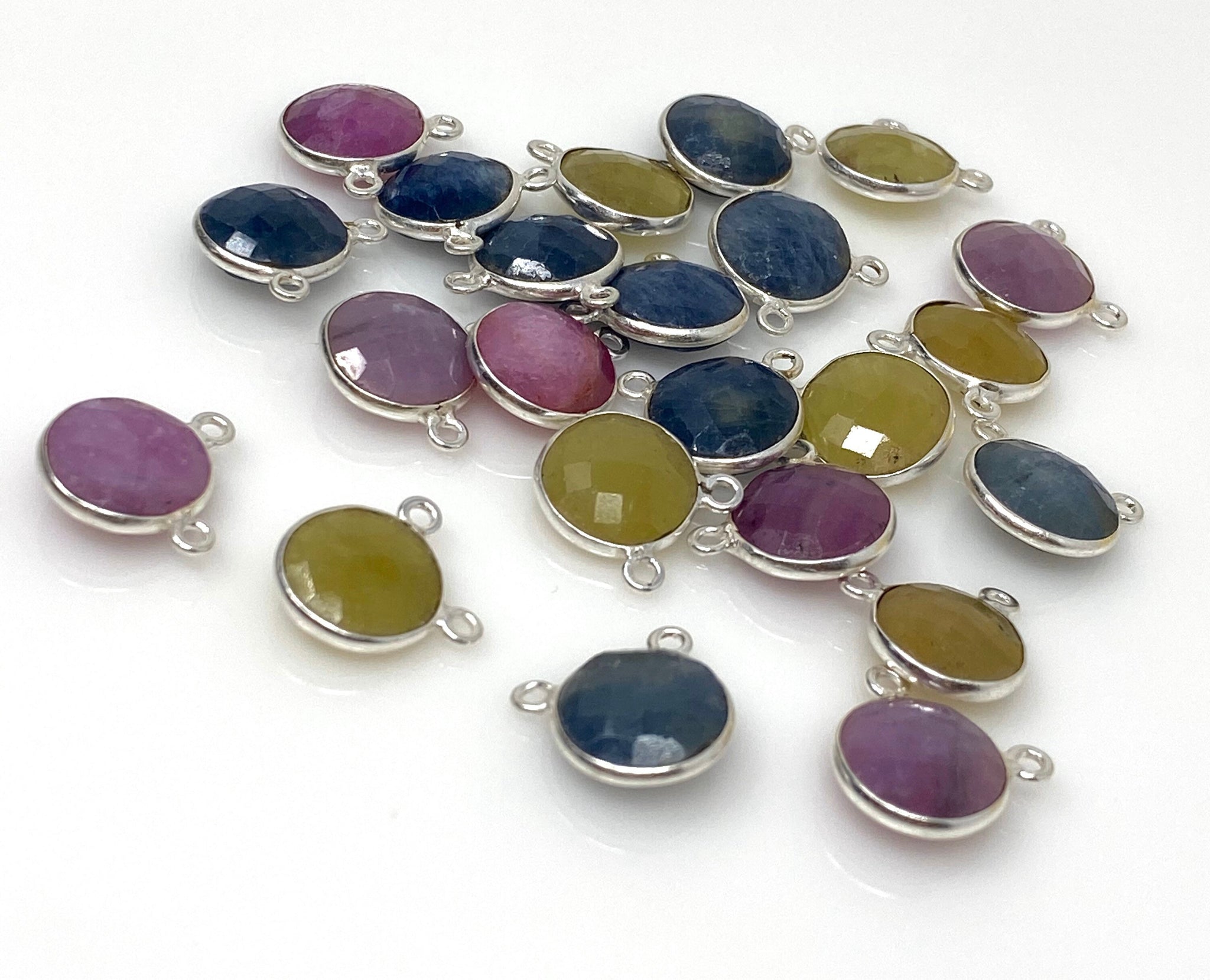 10Pcs/13Pcs Natural Sapphire Gemstone Connectors, Bulk Wholesale Jewelry Supplies, Sterling Silver Jewelry Findings, 13x14mm