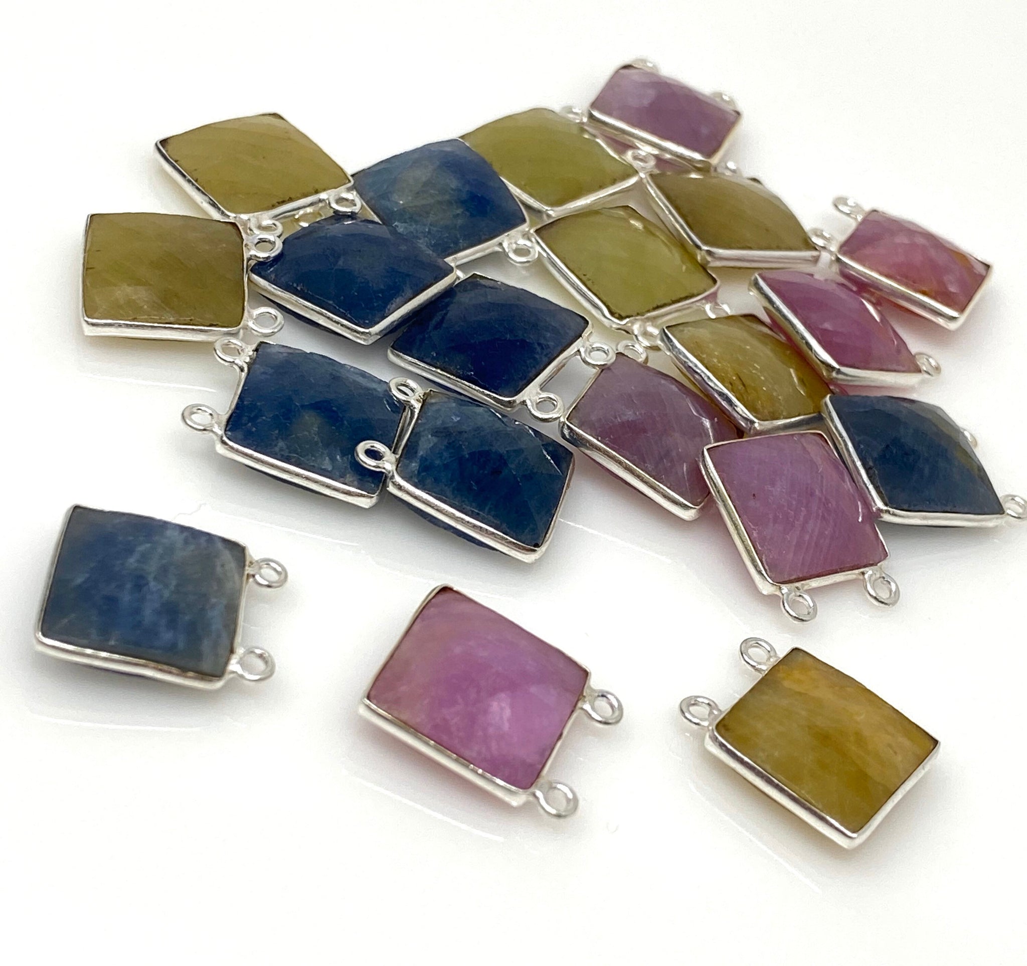 11 Pcs Natural Sapphire Gemstone Connectors, Silver Findings, Bulk Wholesale Jewelry Supplies, 17.5 X14.5mm