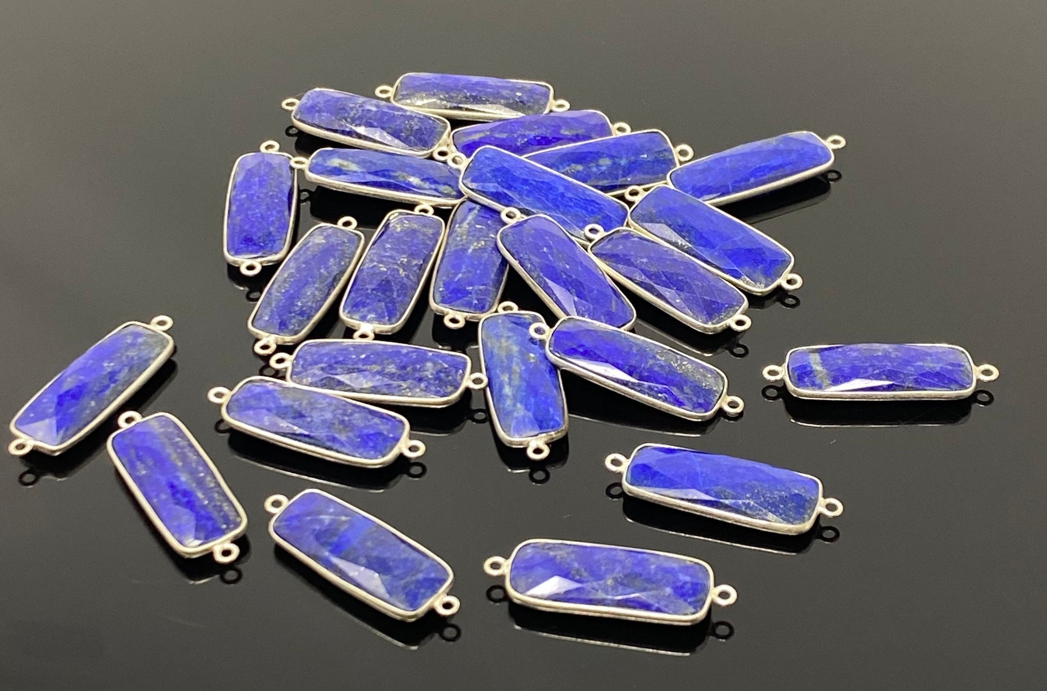 12 Pcs Lapis Lazuli Connectors, Silver Plated Lapis Lazuli Connector Links, Bulk Jewelry Findings