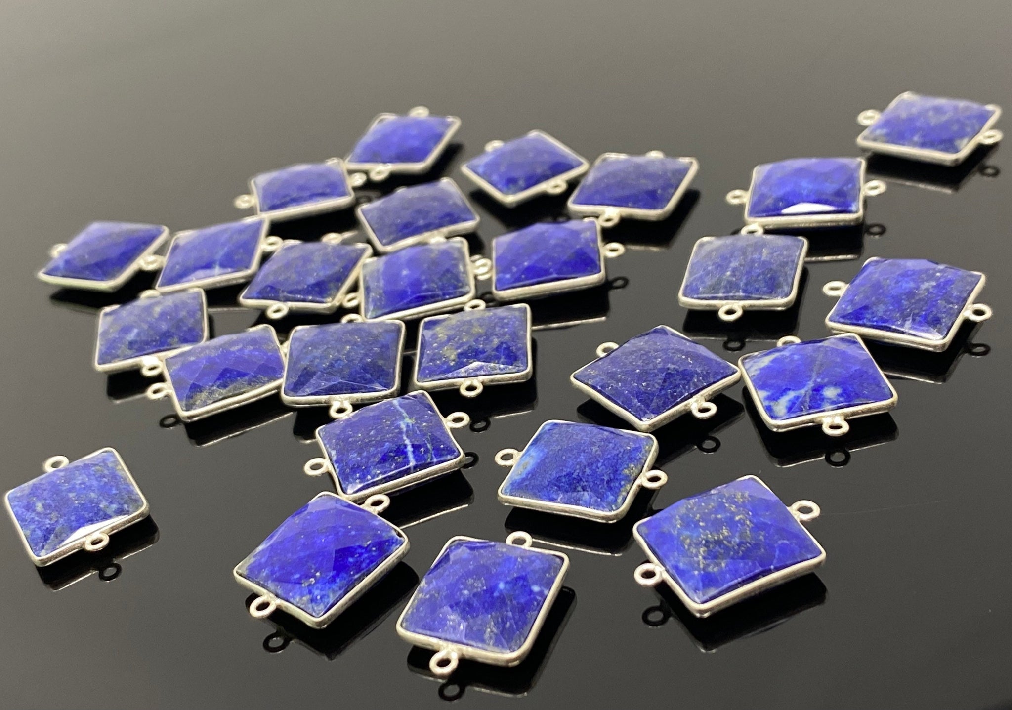 Silver Plated Gemstone Lapis Lazuli Bezel Connectors Jewelry Supplies for Jewelry Making.