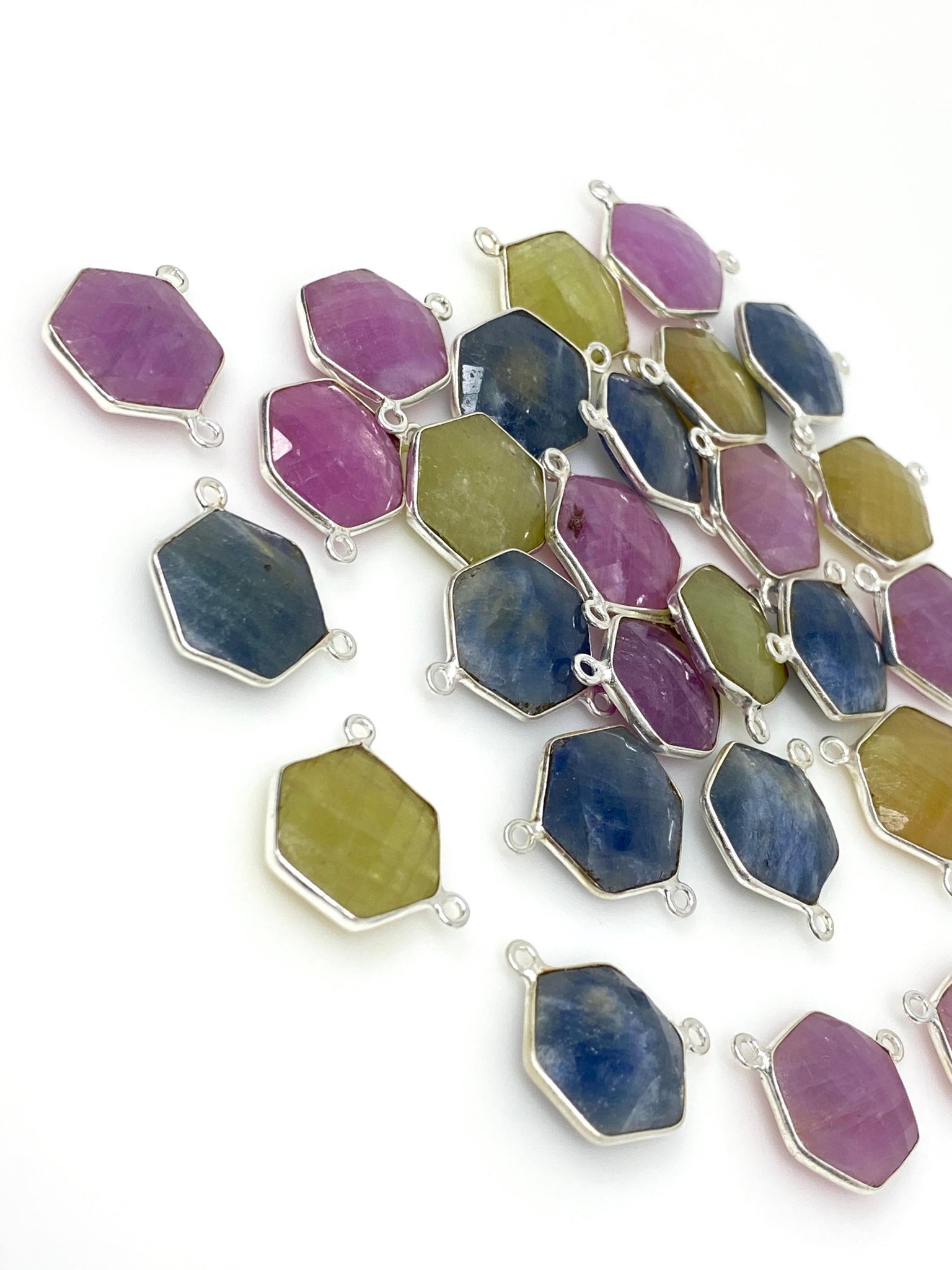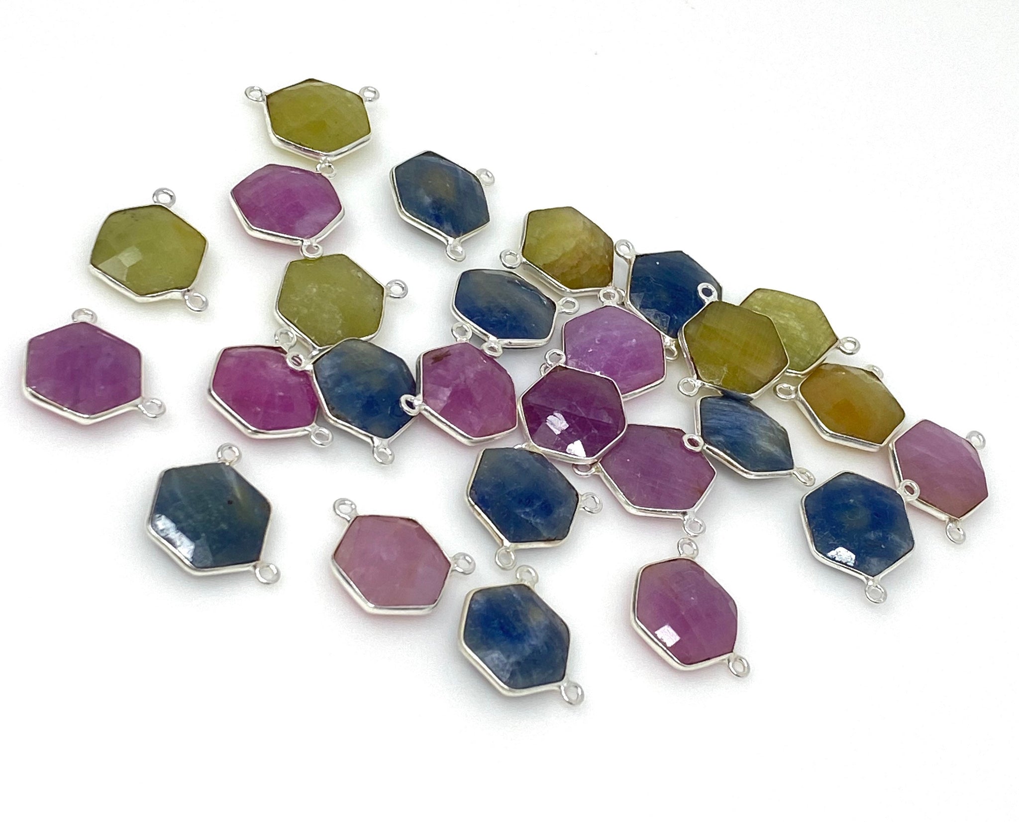 13 Pcs Natural Sapphire Gemstone Connectors, Bulk Wholesale Jewelry Supplies, Silver Jewelry Findings, 17x20mm
