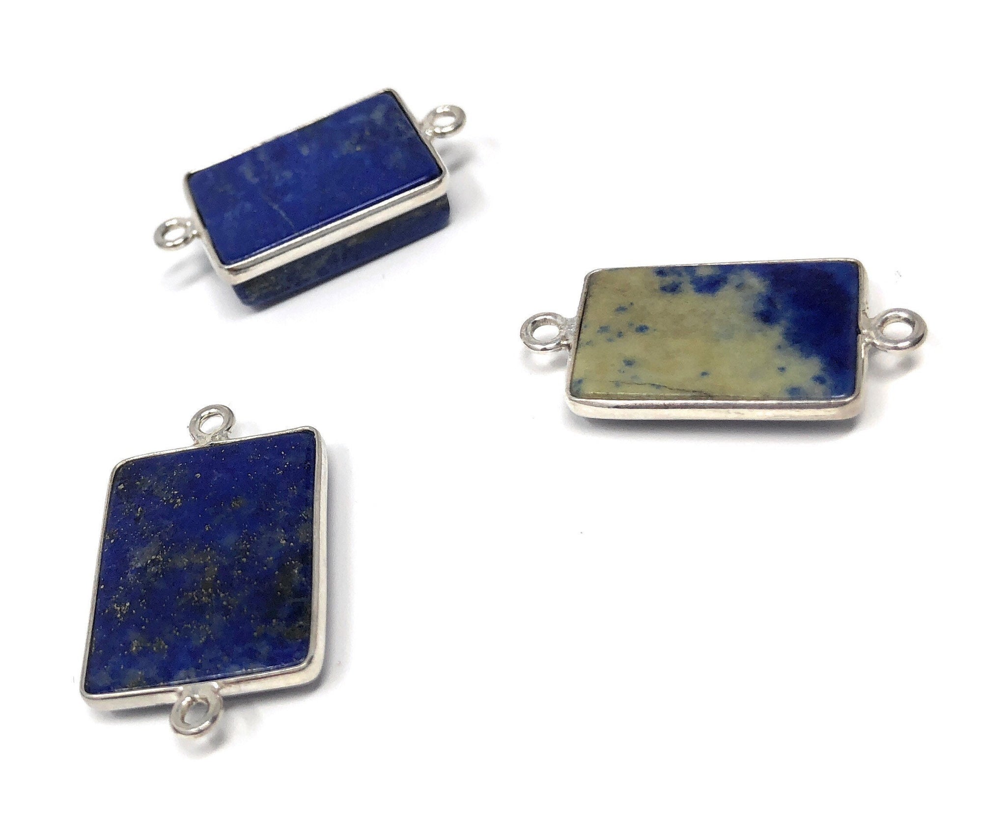 This Beautiful Bulk lot of 3 Pieces of Handmade 925 Sterling Silver Rectangle Shape Natural Smooth Polished Lapis Lazuli Gemstone Charm Connectors is an excellent choice for making any Jewelry Design. These can be used for making Charm Bracelet, Pendant Necklace or can be used to make any creative Jewelry Design.