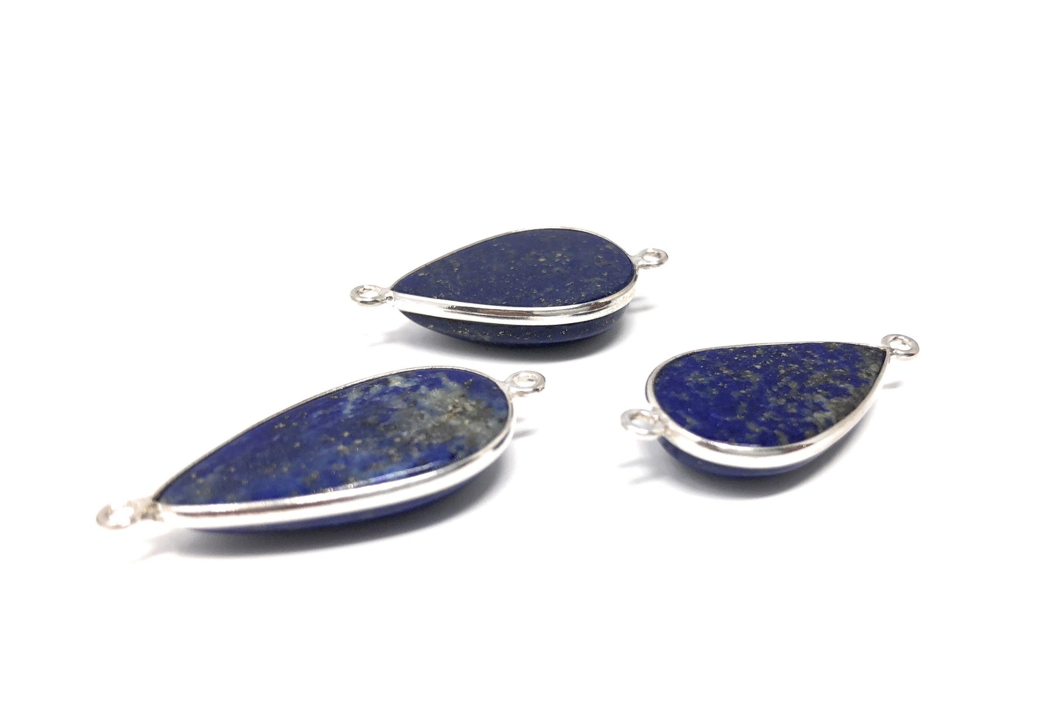 This Beautiful Bulk lot of 3 Pieces of Handmade 925 Sterling Silver Drop Shape Natural Smooth Polished Lapis Lazuli Gemstone Charm Connectors is an excellent choice for making any Jewelry Design. These can be used for making Charm Bracelet, Pendant Necklace or can be used to make any creative Jewelry Design.