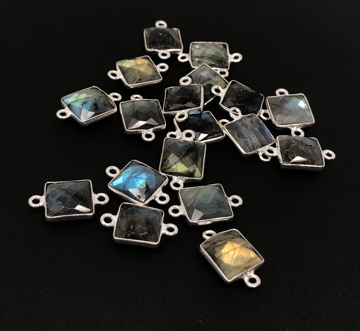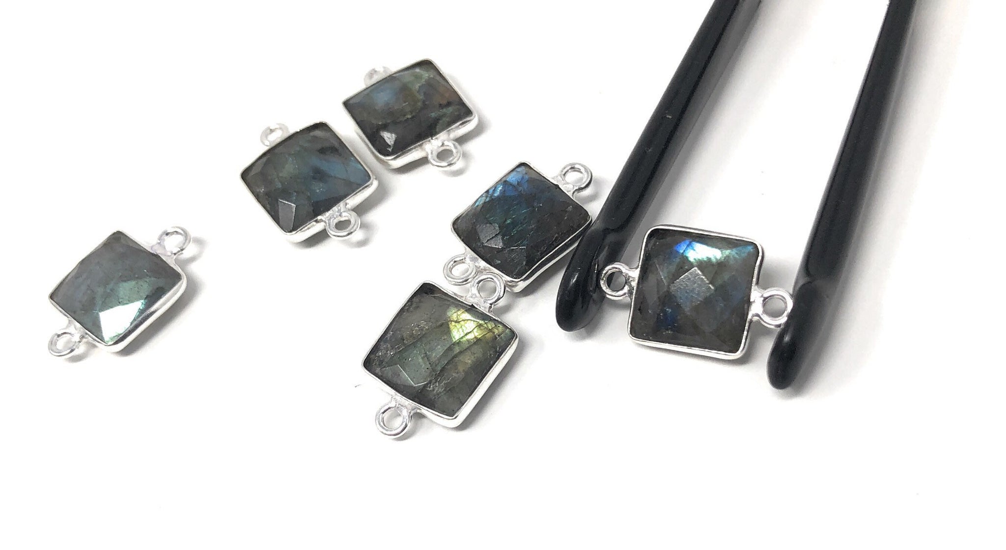 These beautiful Handmade Sterling Silver Natural Gemstone Labradorite Double Bail Square Shape Connector are an excellent choice for making any Jewelry Design. It can be used for making Anklet, Bracelet, Necklace or can be used for making exclusive Jewelry Piece. It can also be used to make Gemstone Belt.