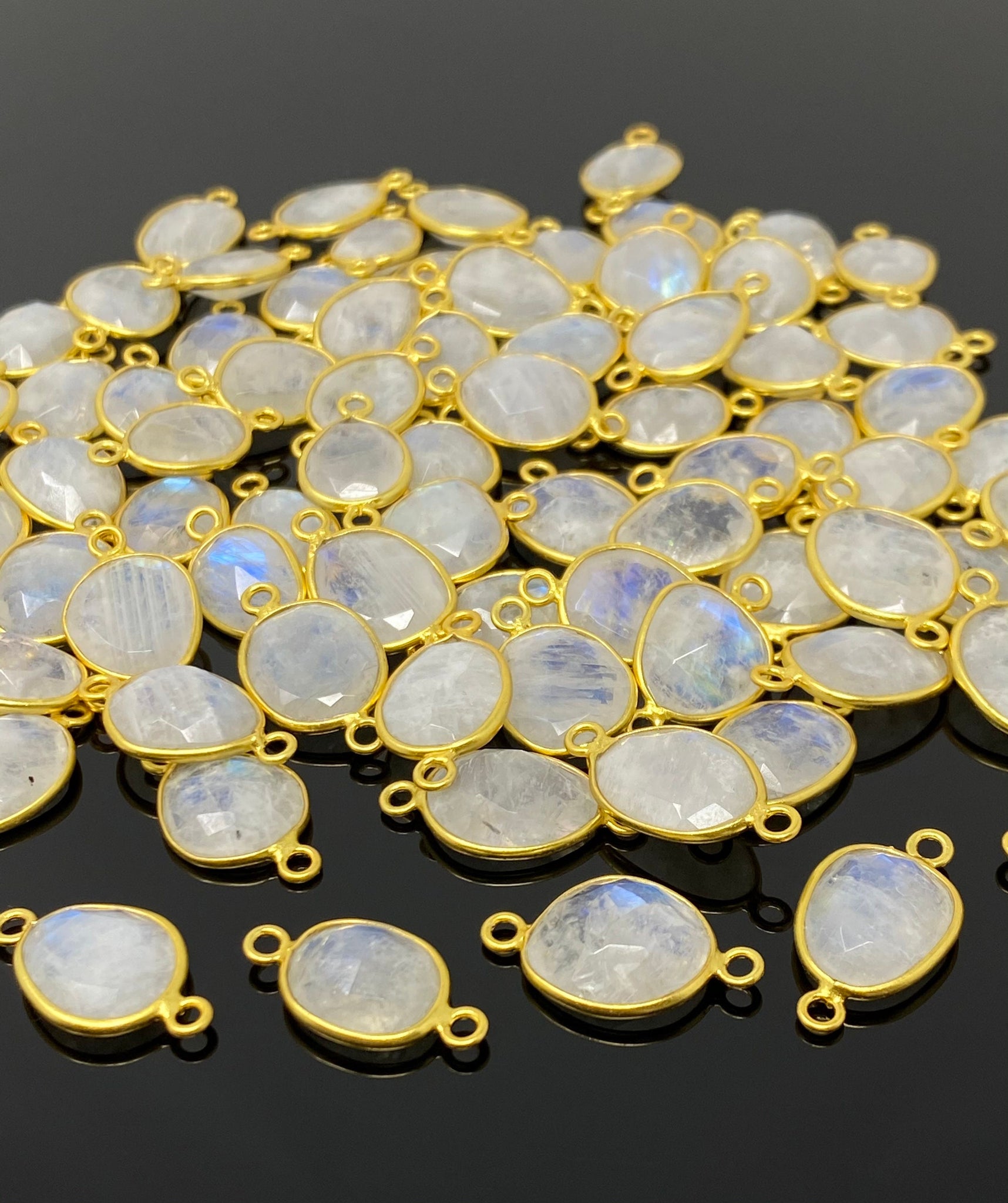 14K Gold Plated over 925 Sterling Silver Faceted Rainbow Moonstone Handmade Connector Flat Back for Jewelry Making at Wholesale Price.
