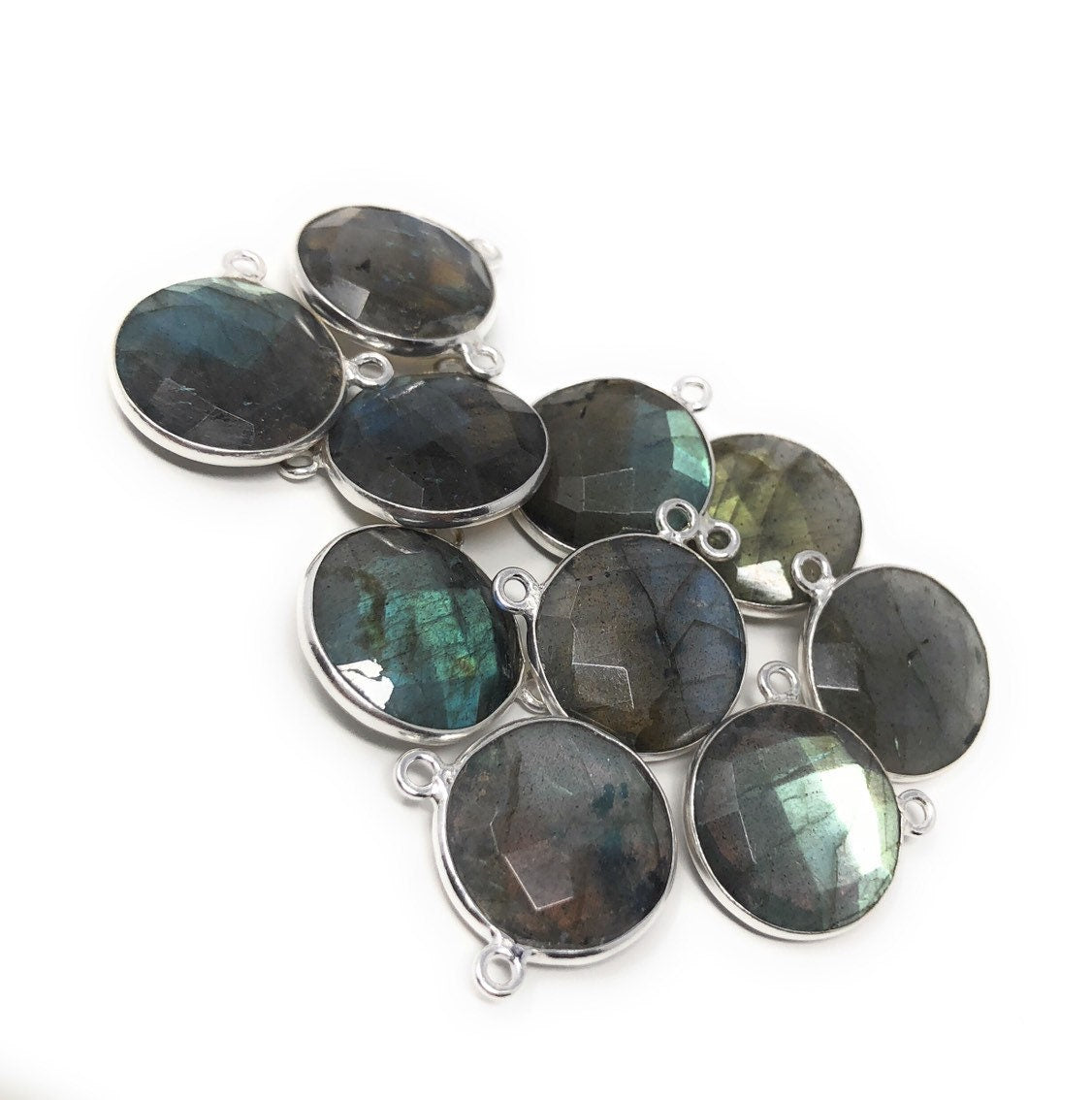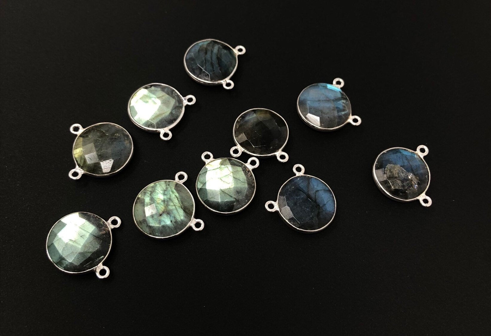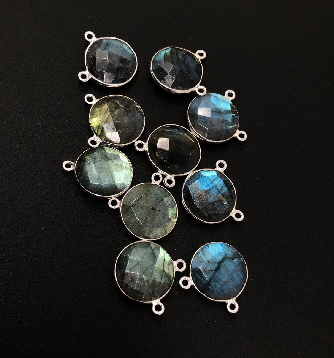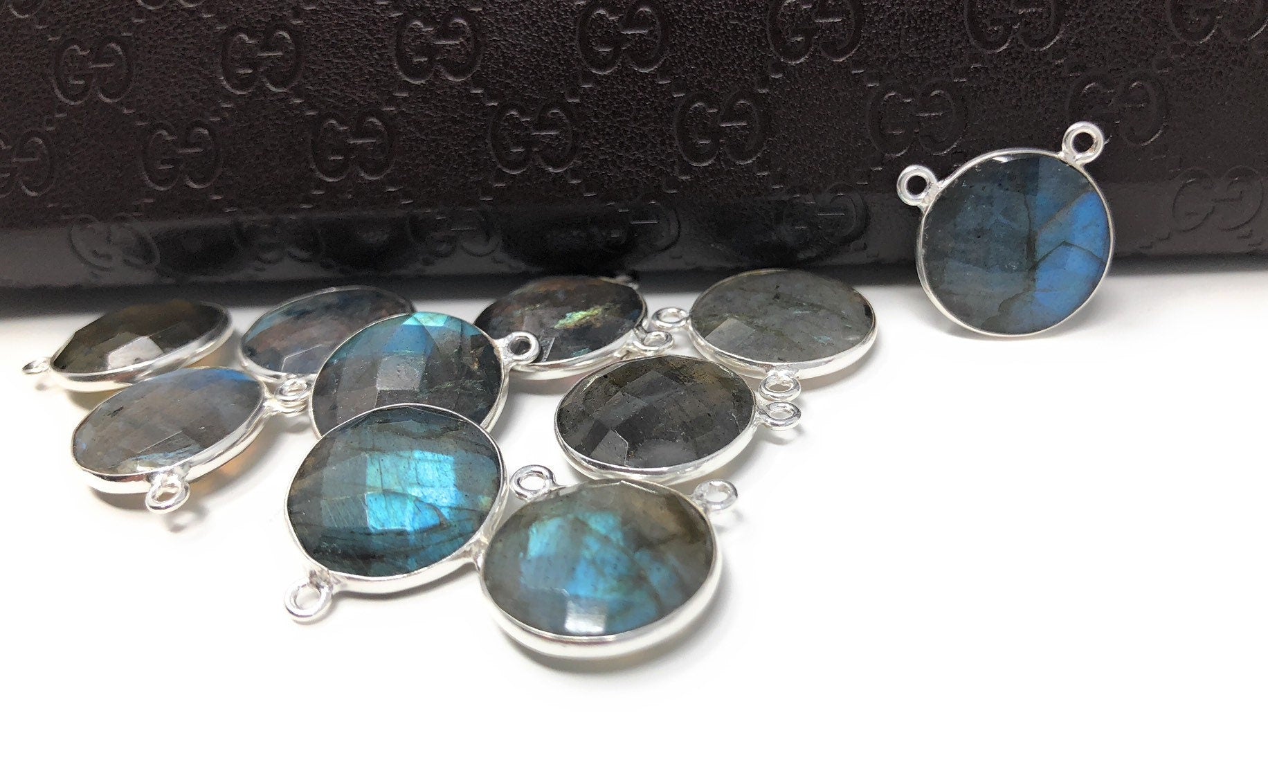 Bulk Lot 5 Pieces of Sterling Silver Labradorite Gemstone Connectors Jewelry Findings for Jewelry Making at Wholesale Price.