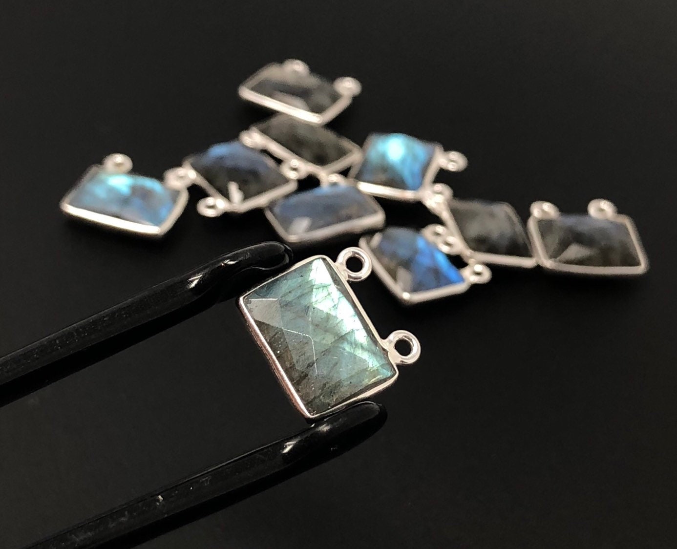6 Pcs Labradorite Gemstone Connector, Sterling Silver Double Bail Connector Charms , 14x14mm