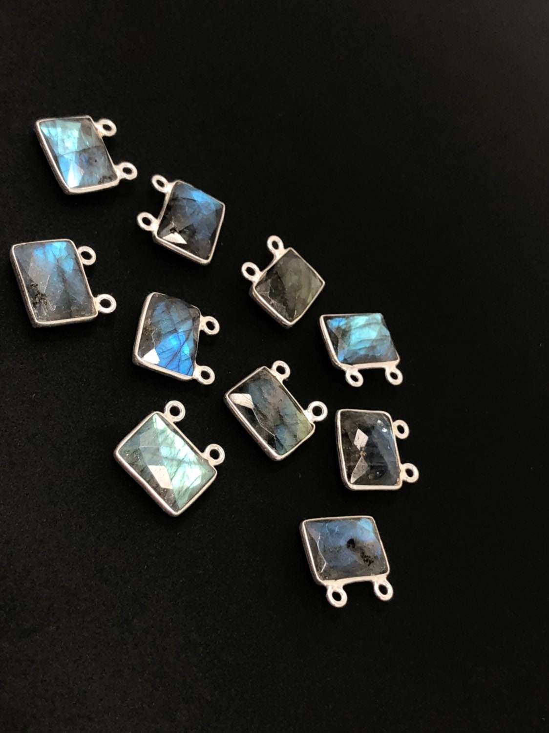 These beautiful Handmade Sterling Silver Natural Gemstone Labradorite Double Bail Rectangle Shape Connector are an excellent choice for making any Jewelry Design. It can be used for making Anklet, Bracelet, Necklace or can be used for making exclusive Jewelry Piece. It can also be used to make Gemstone Belt.