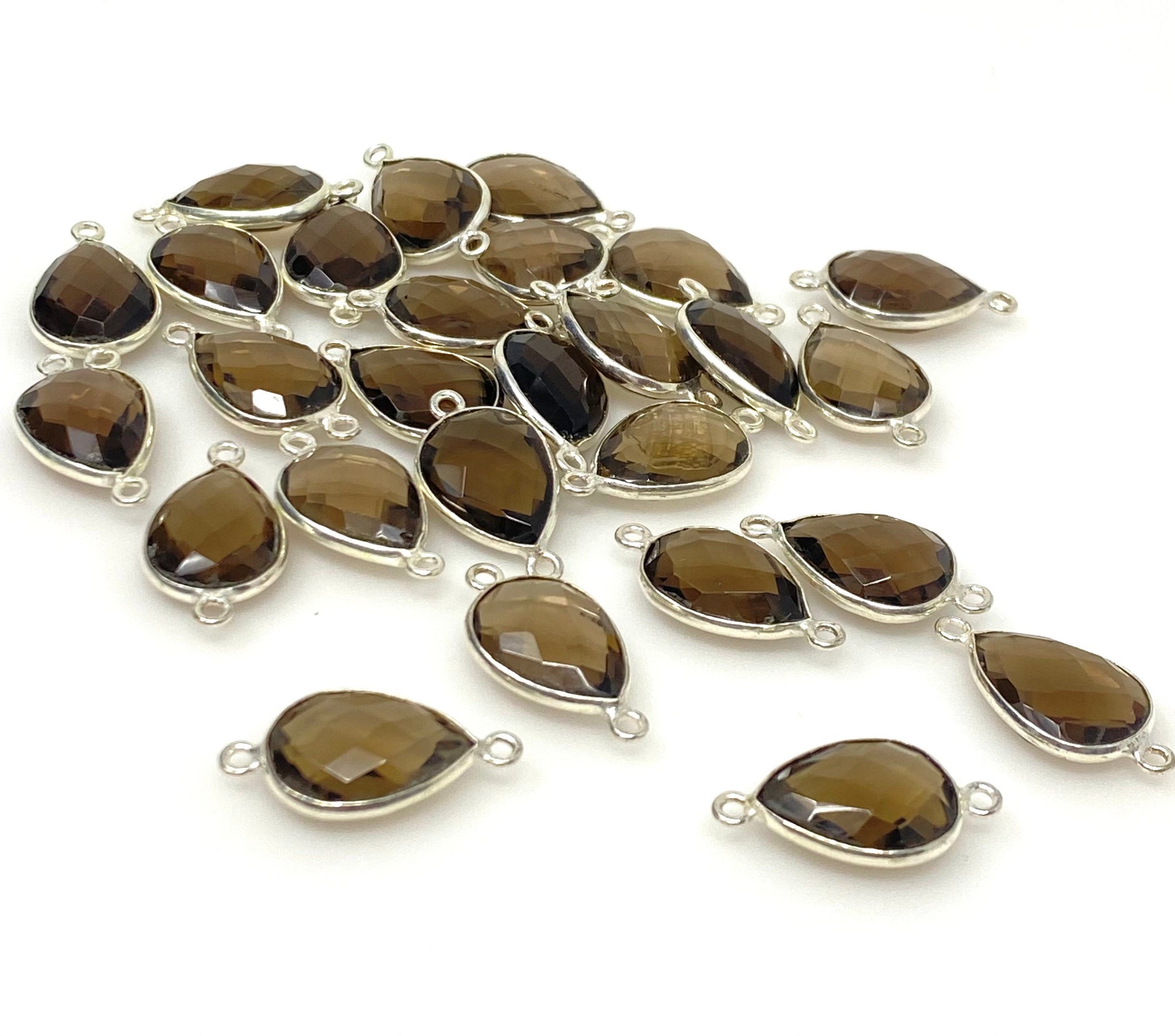 6Pcs/ 10Pcs Smokey Quartz Connectors, Silver Plated Gemstone Connectors, Wholesale Jewelry Findings forJewelry Making, Bulk Charms