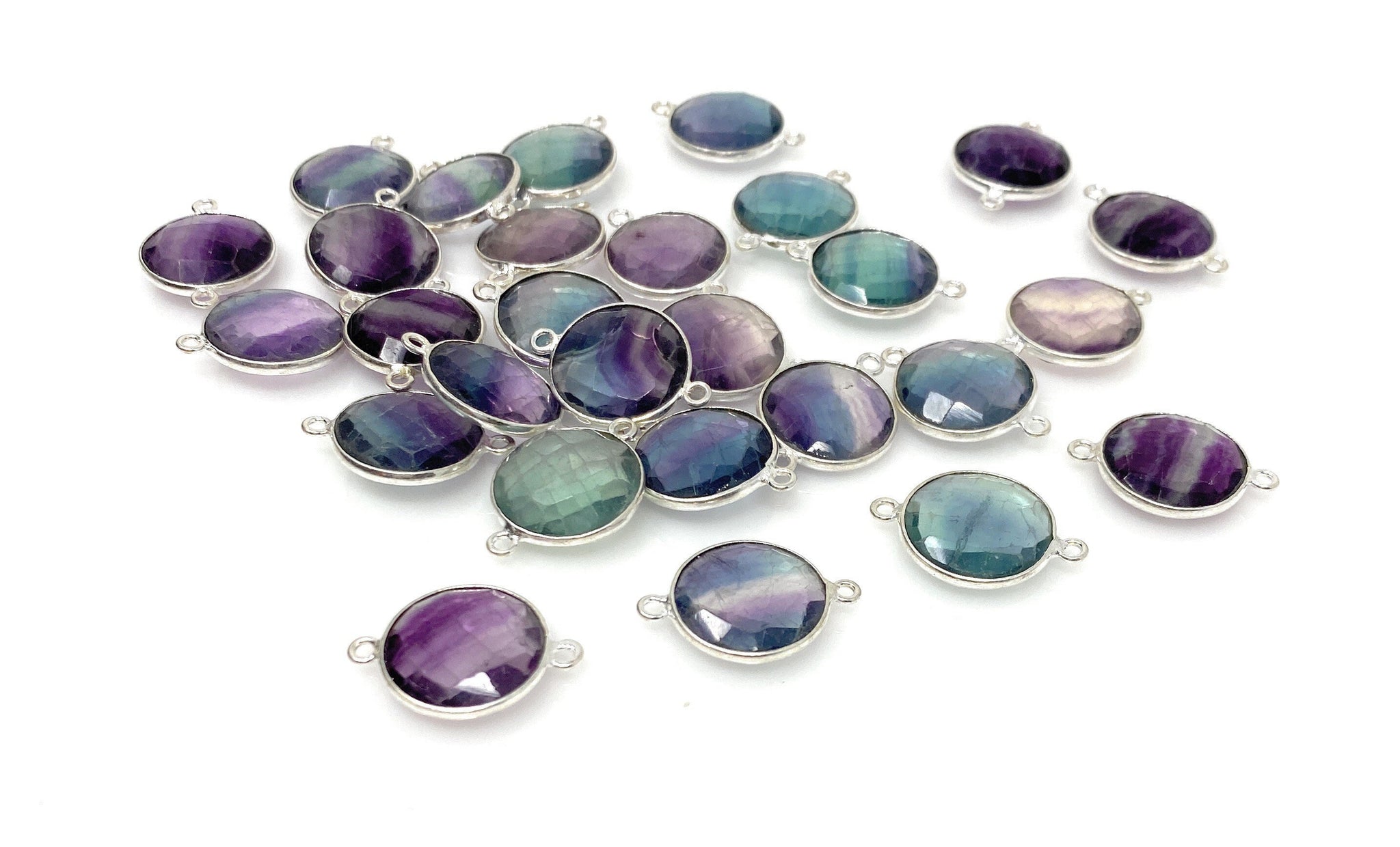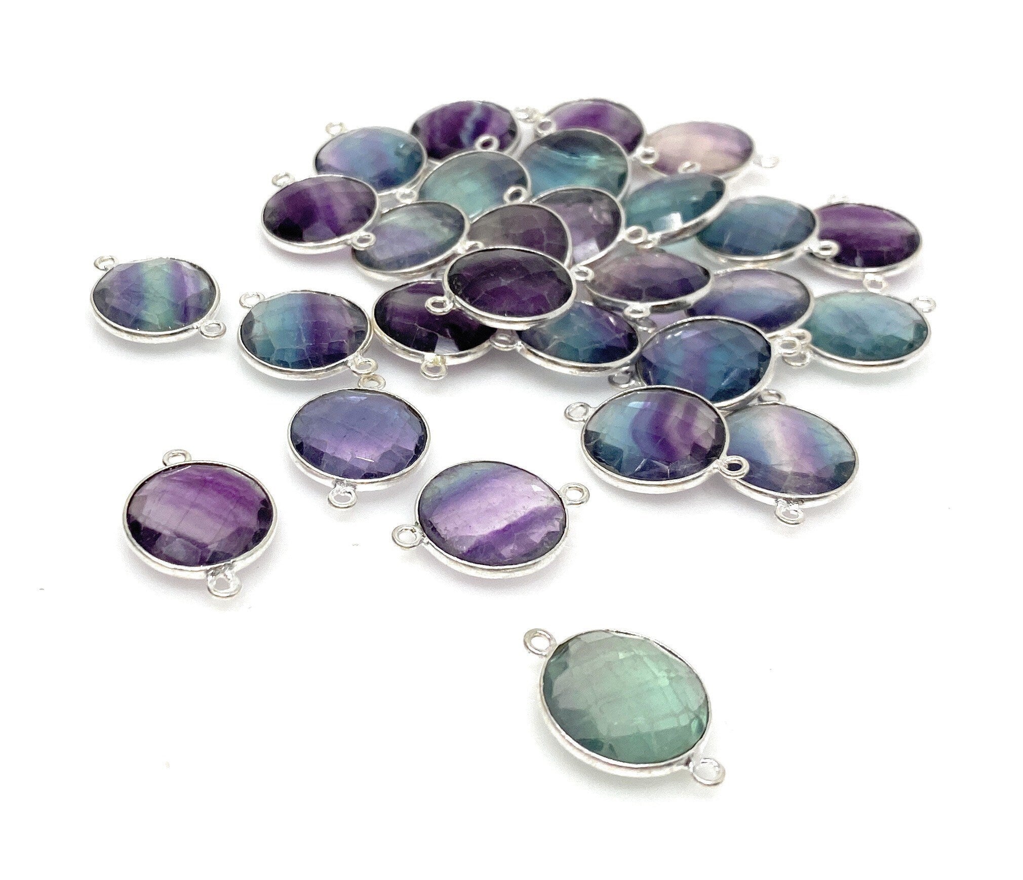 Natural Fluorite Gemstone Silver Plated Connectors Bulk Lot Jewelry Findings for Jewelry Making .