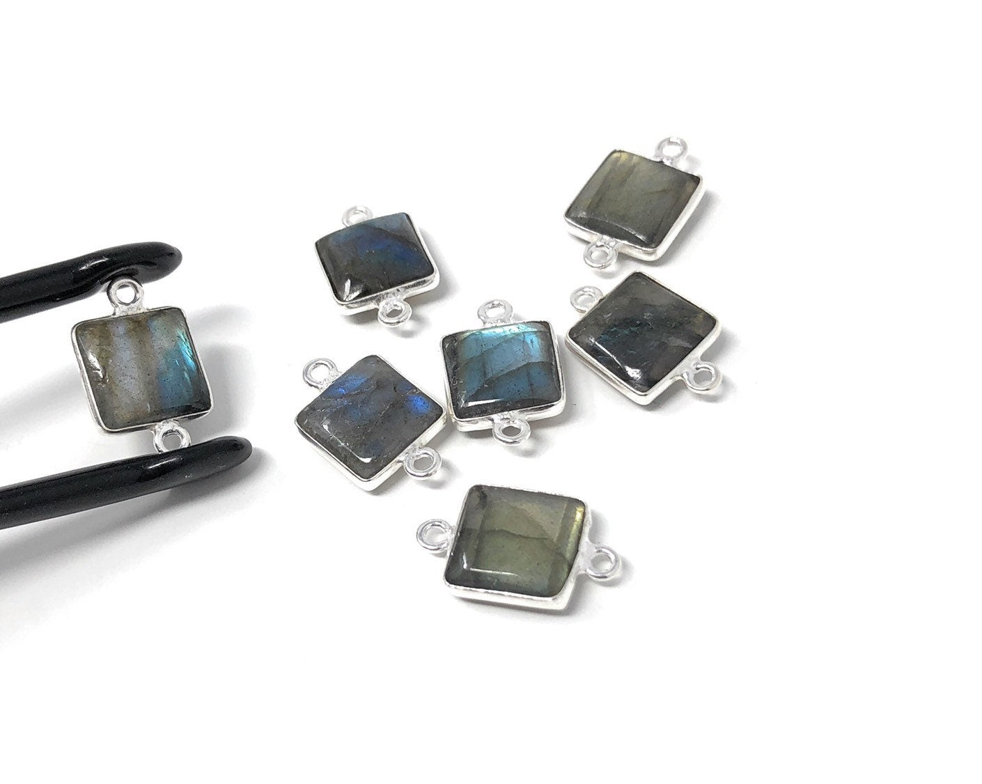 These beautiful Handmade Sterling Silver Natural Smooth Gemstone Labradorite Double Bail Square Shape Connector are an excellent choice for making any Jewelry Design. It can be used for making Anklet, Bracelet, Necklace or can be used for making exclusive Jewelry Piece. It can also be used to make Gemstone Belt.