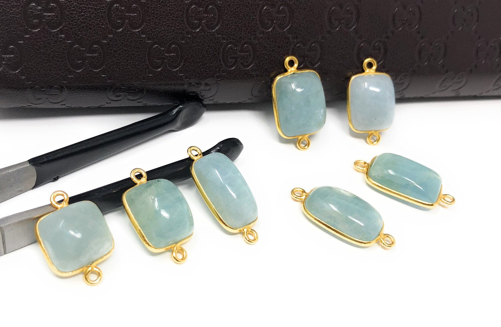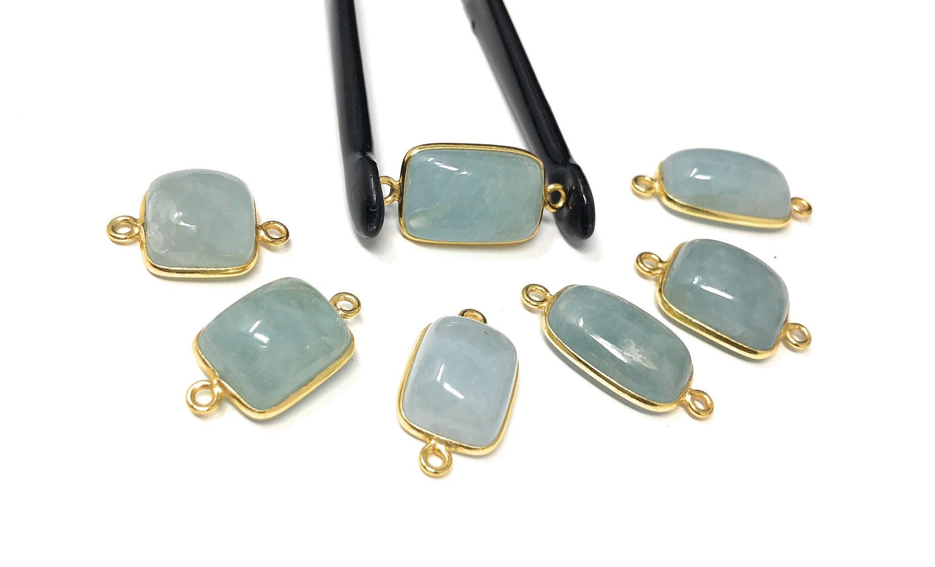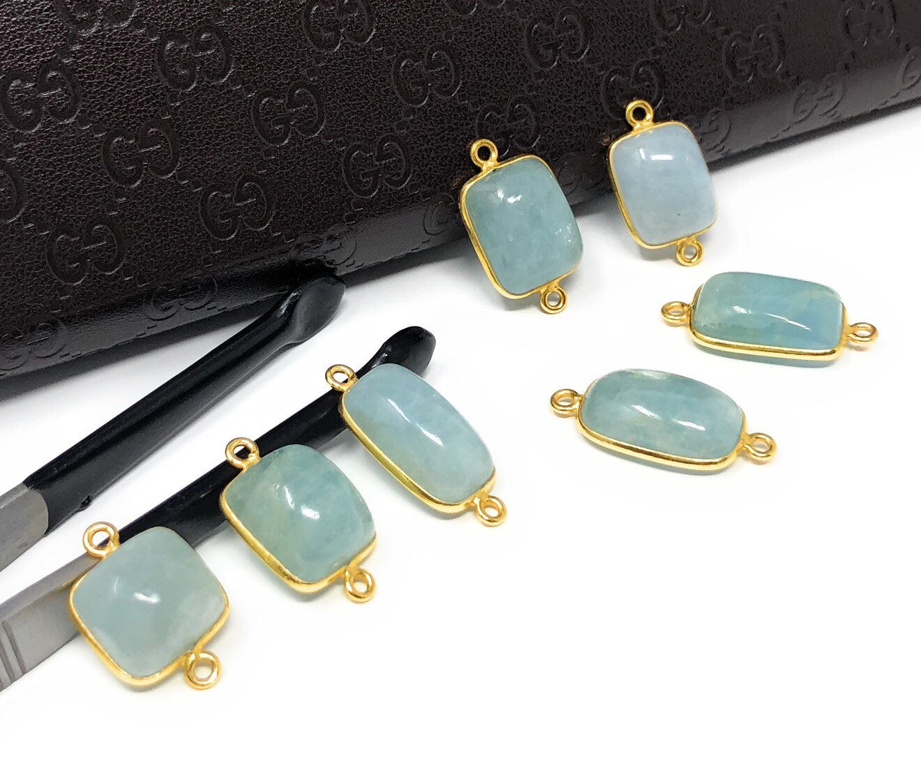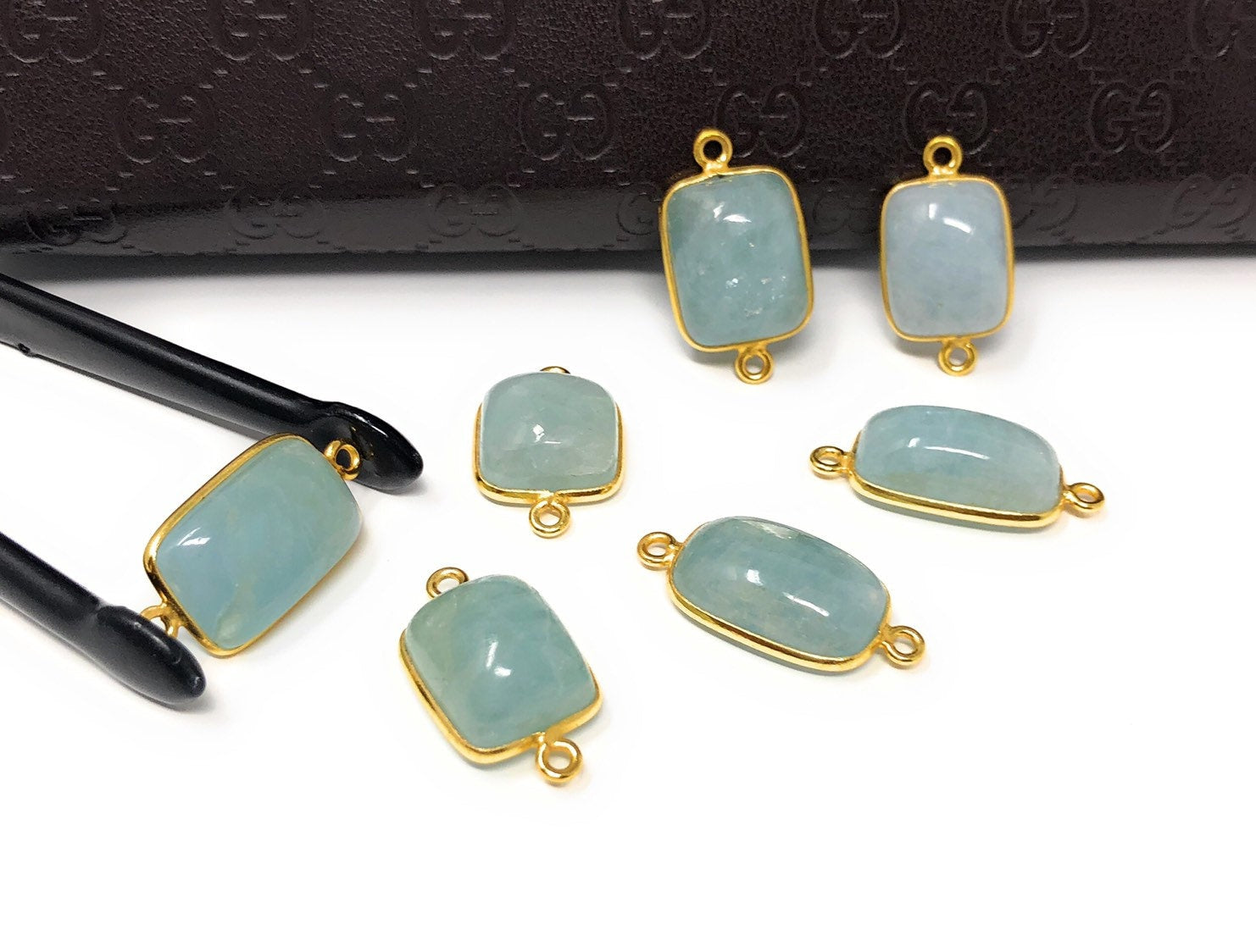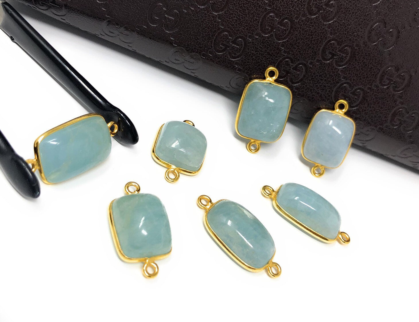 7 pcs Natural Aquamarine Connectors, Gold Plated Sterling Silver Gemstone Connectors, Jewelry Findings, Jewelry Supplies for Jewelry Making