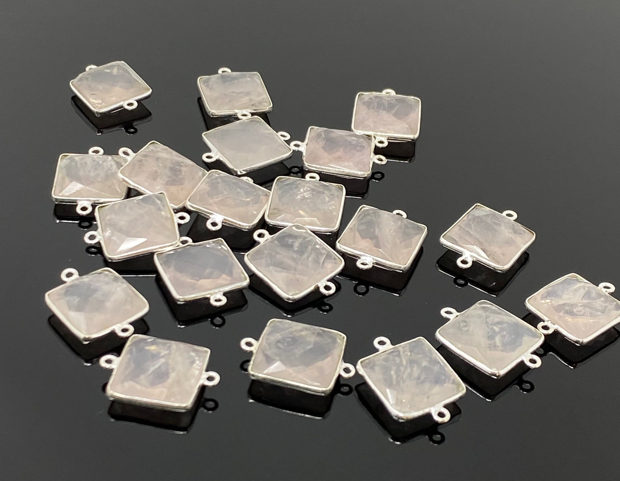 Natural Genuine Untreated Faceted Gemstone Rose Quartz Silver Plated Connector for Jewelry Making at Wholesale Price.