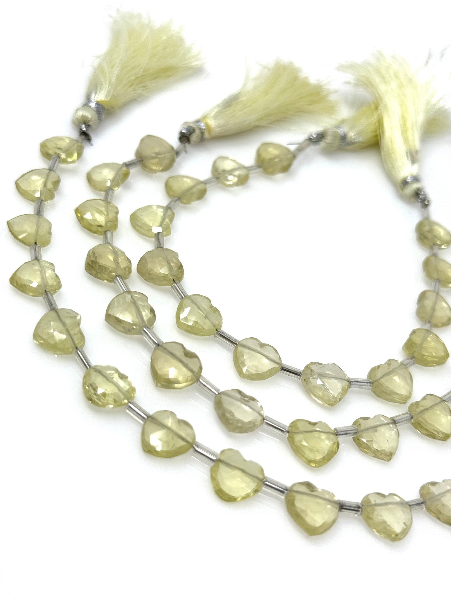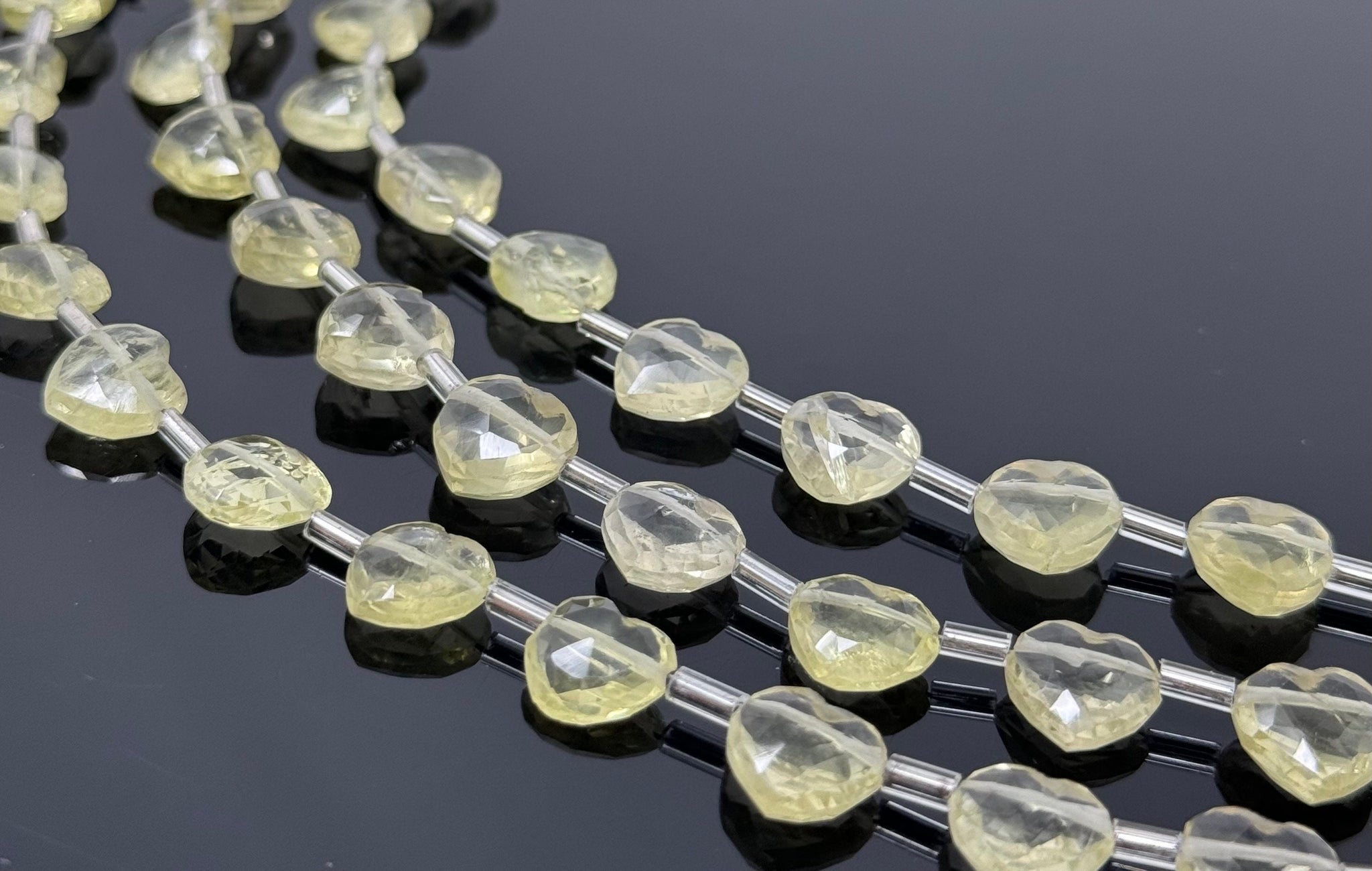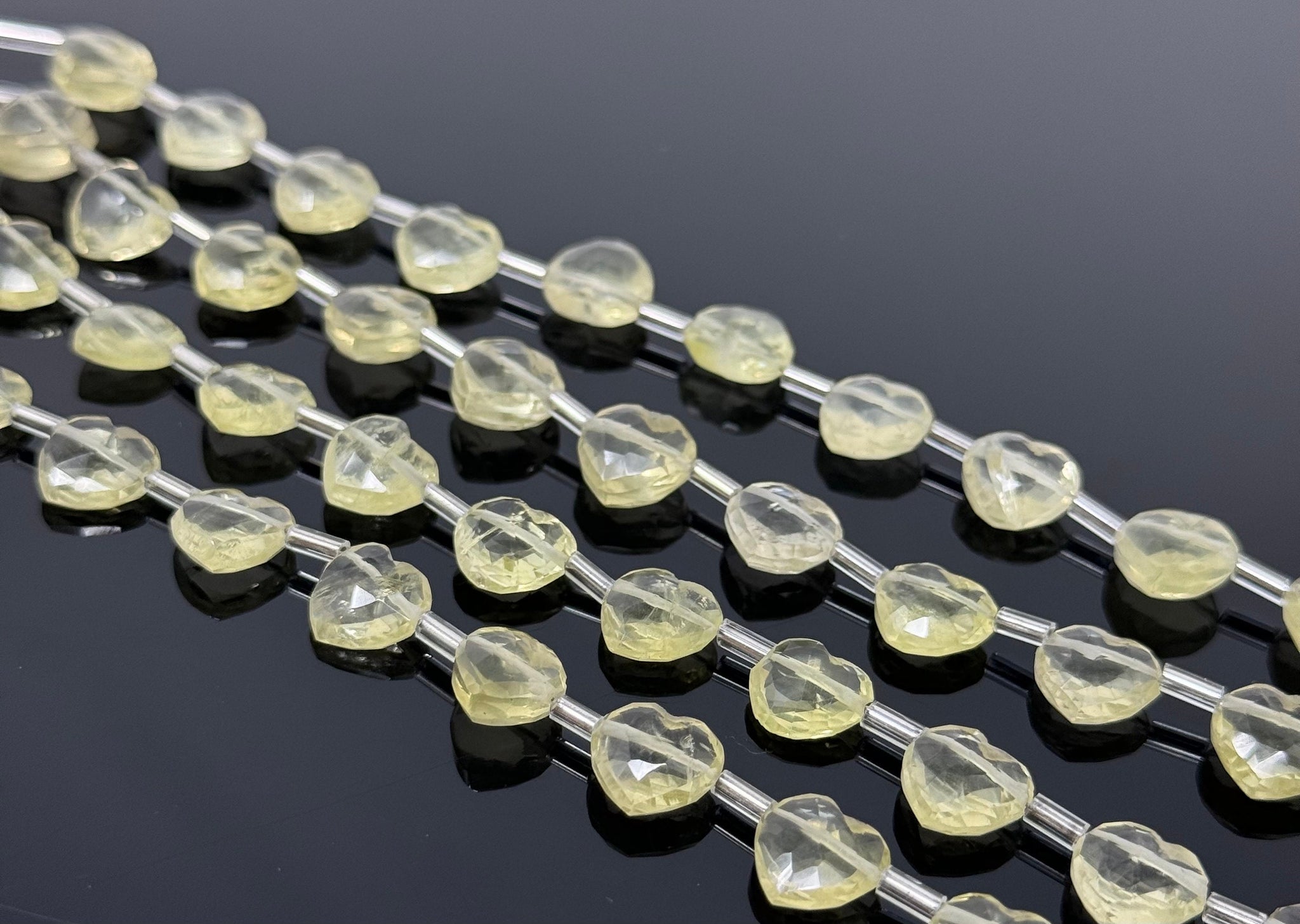 7.5” Lemon Topaz Gemstone Beads, Heart Shape Faceted Lemon Topaz Bulk Wholesale Beads, 9mm - 10mm