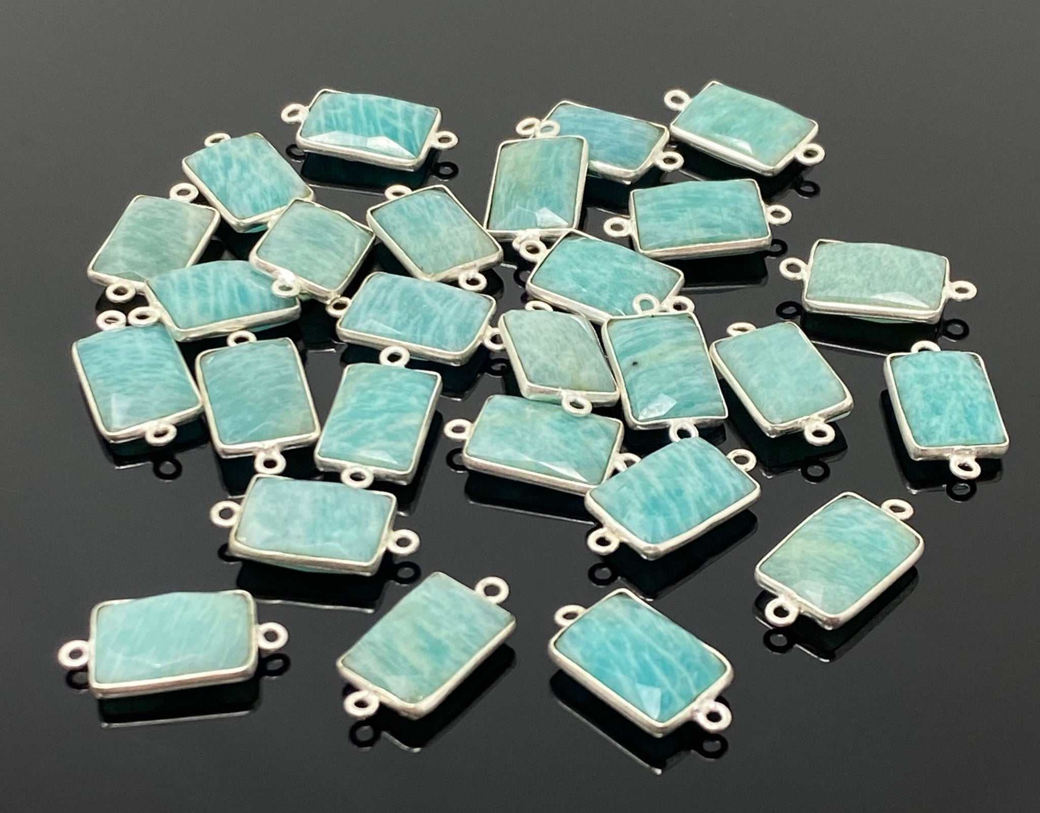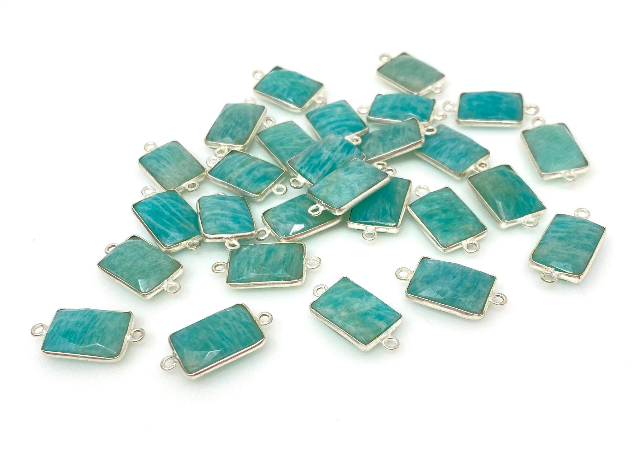 Silver Plated Natural Gemstone Amazonite Bezel Set Double Sided Briolette Connector Jewelry Findings for Jewelry Making at Wholesale Price.