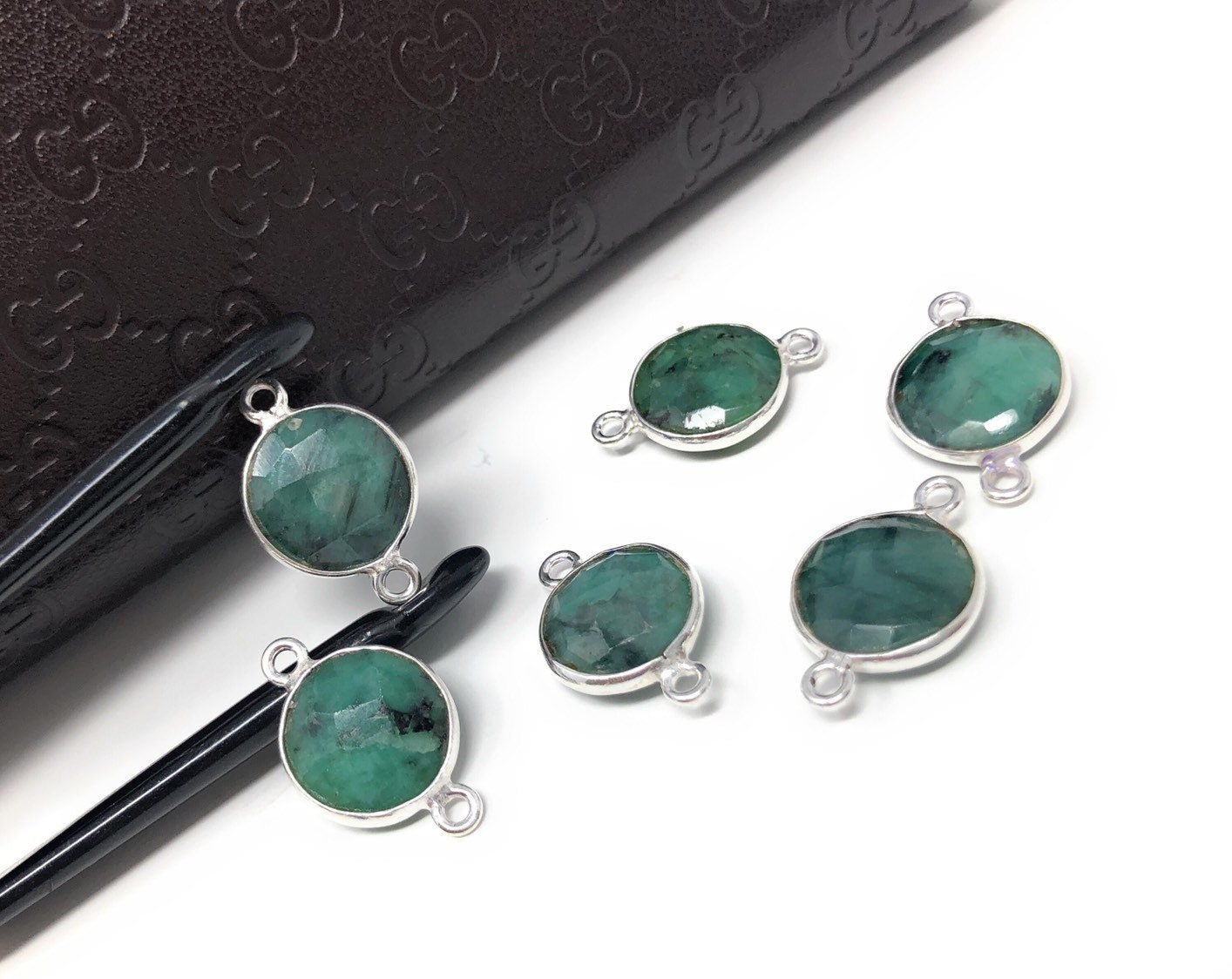 Sterling Silver Natural Emerald Gemstone Connectors Jewelry Findings for Jewelry Making at Wholesale Price.