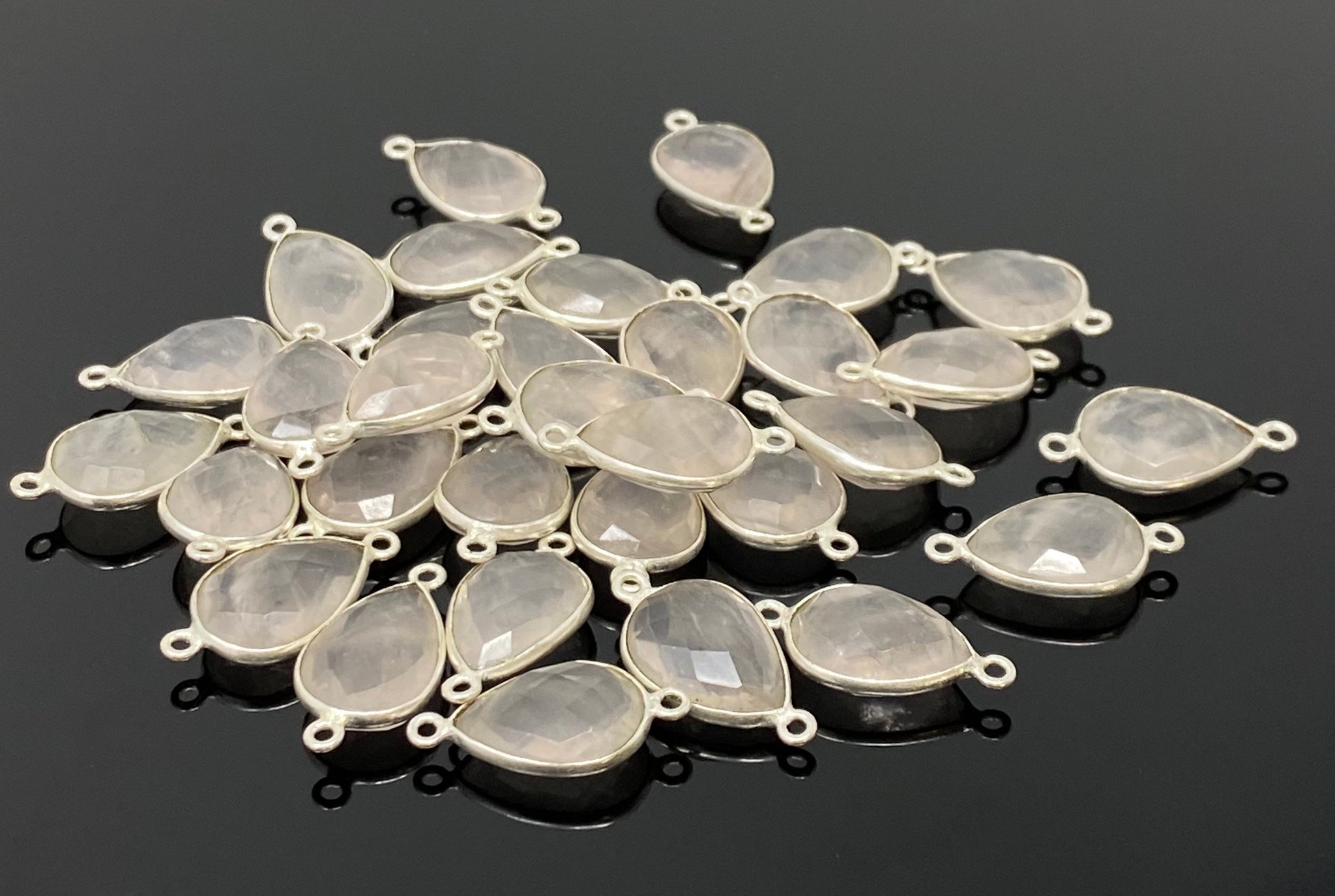 Natural Genuine Untreated Faceted Gemstone Rose Quartz Silver Plated Connector for Jewelry Making at Wholesale Price.