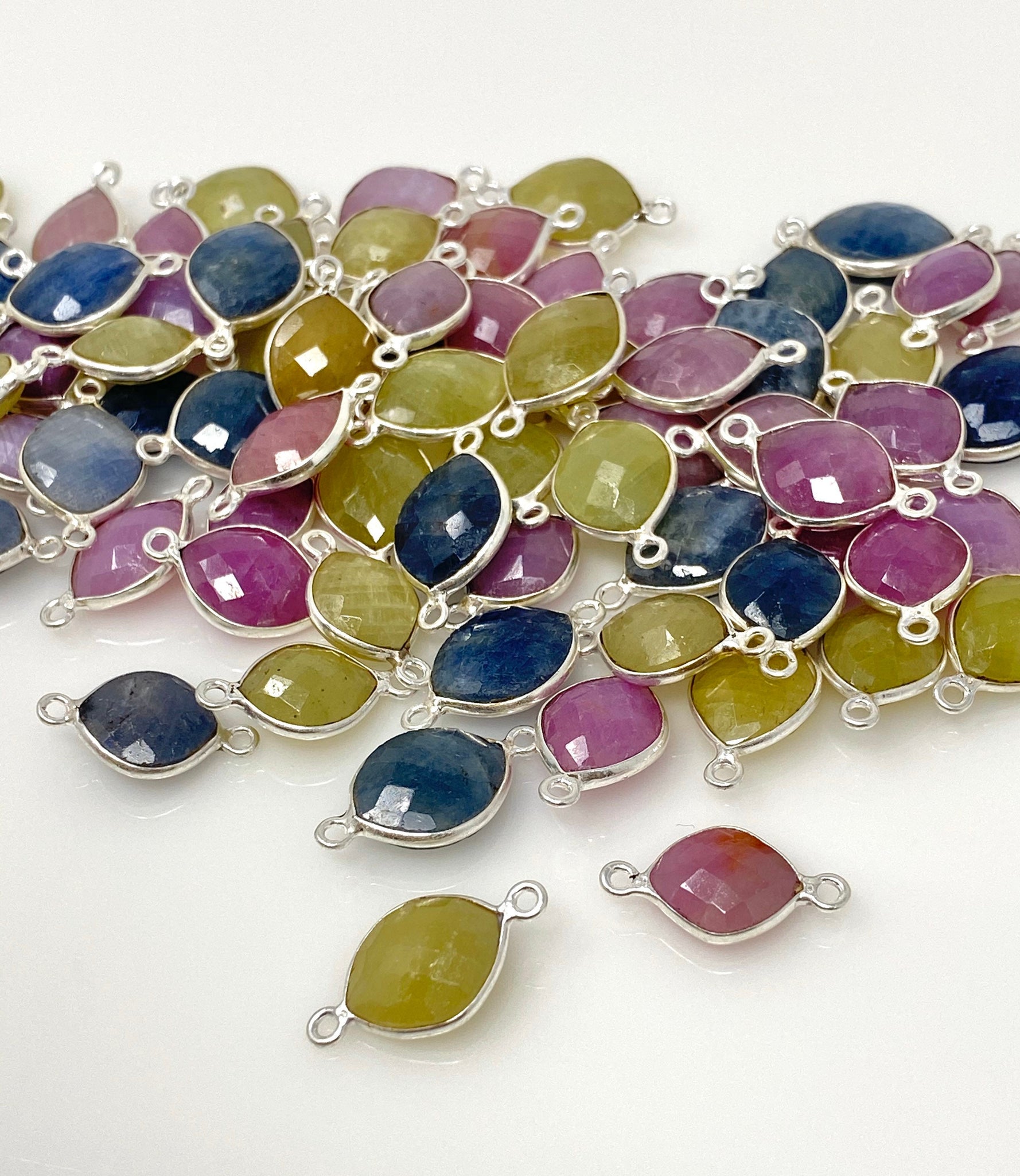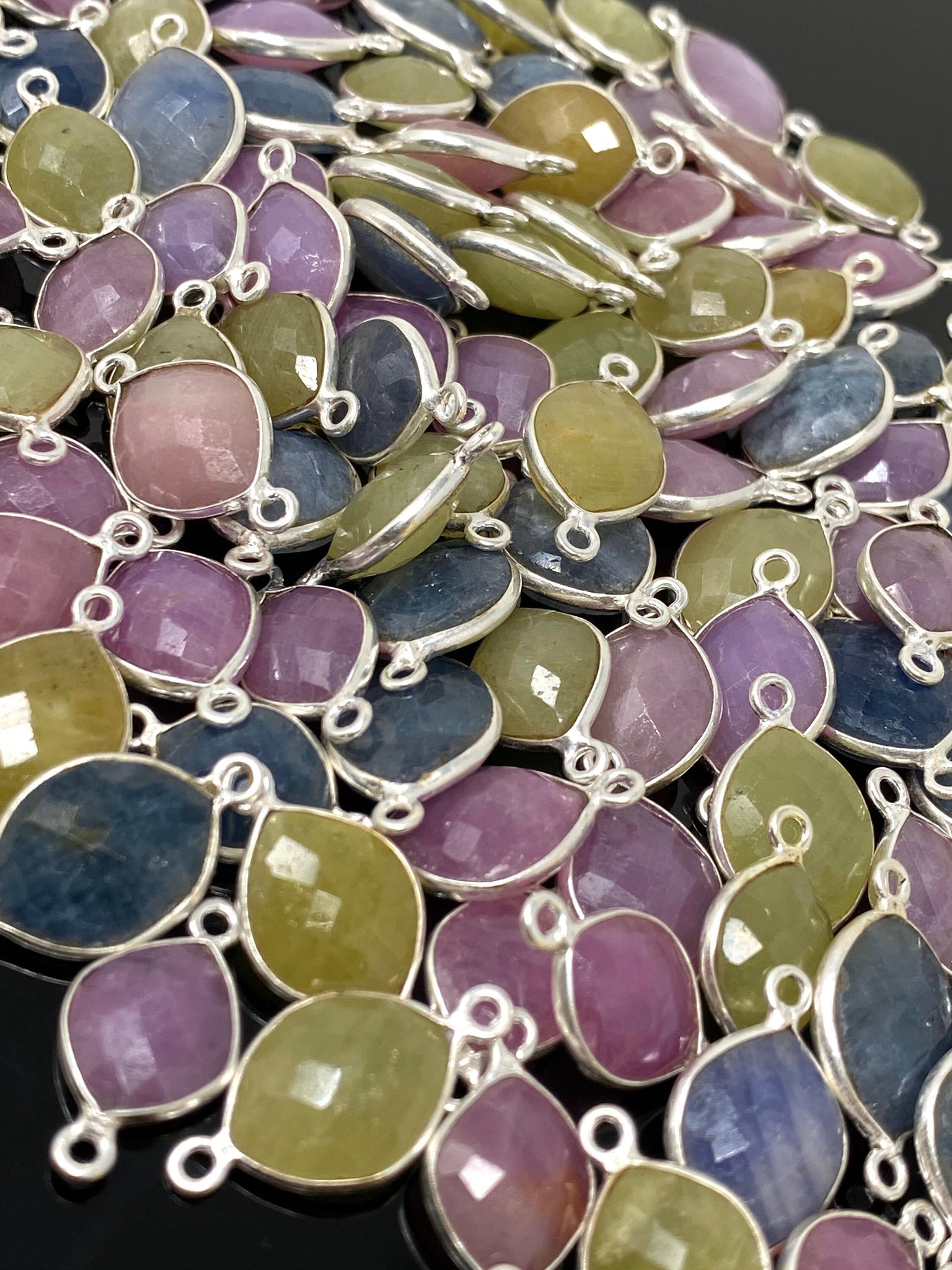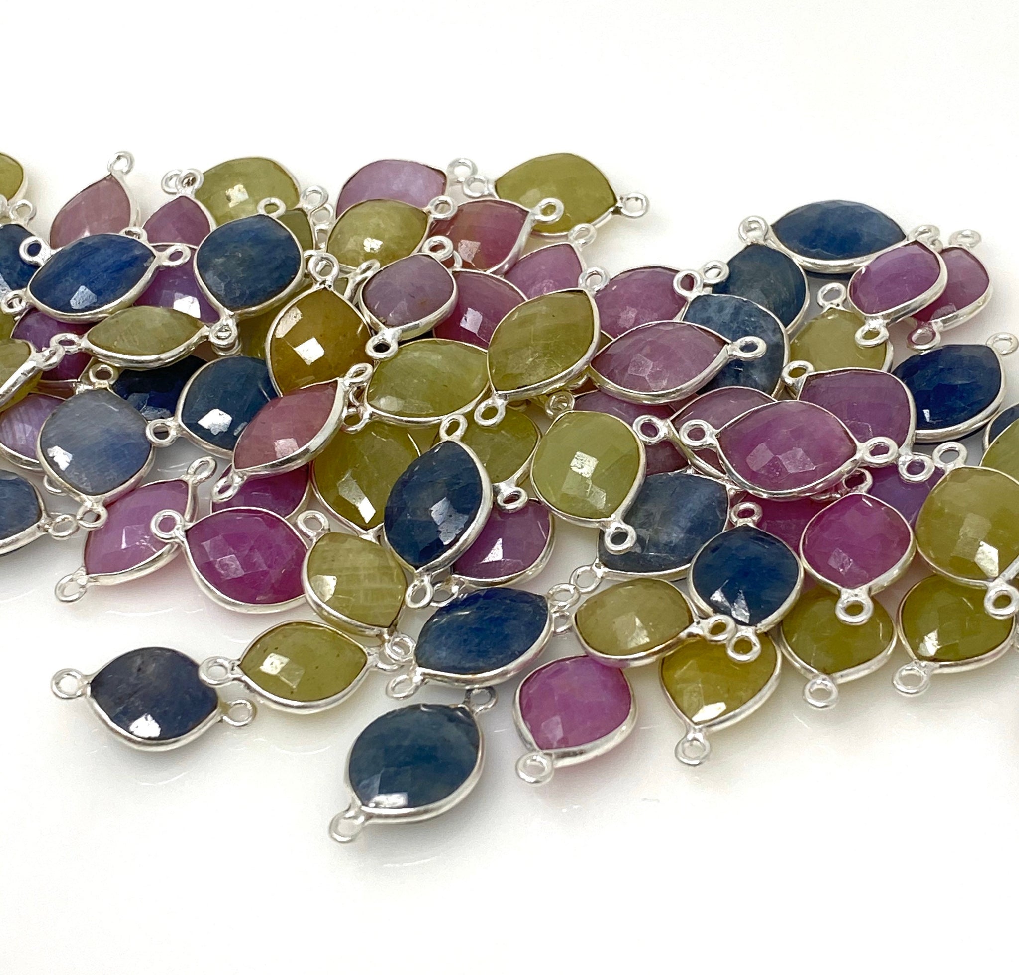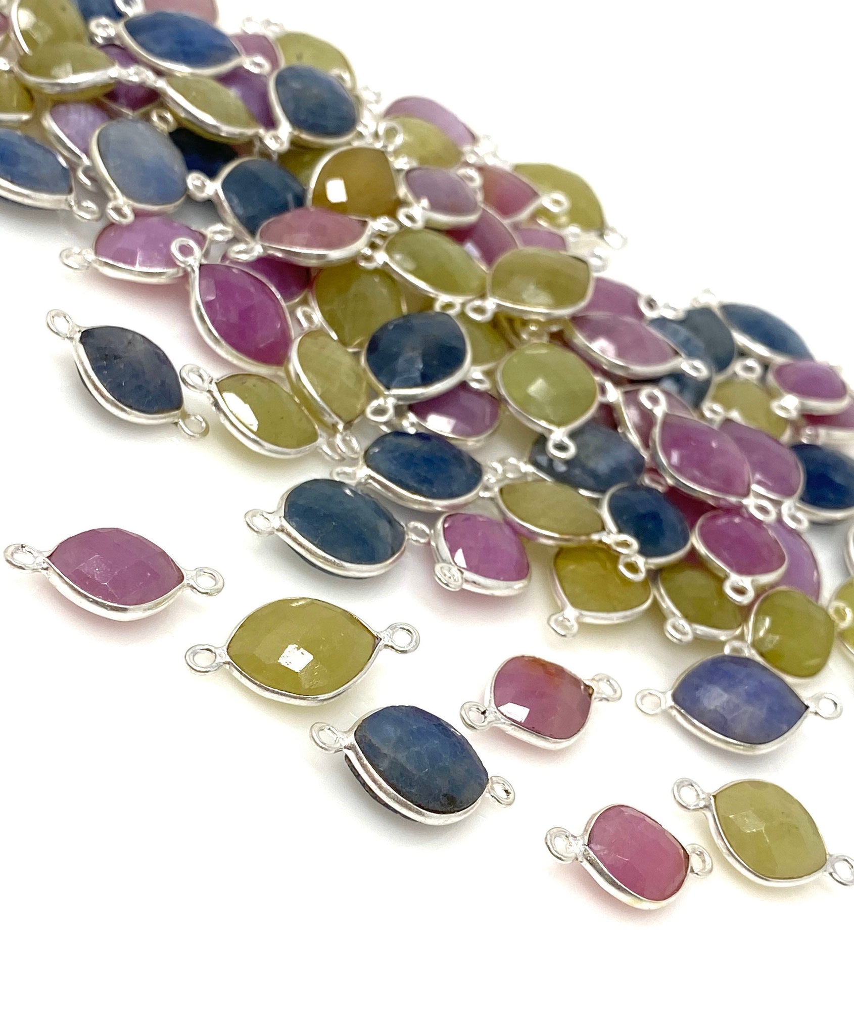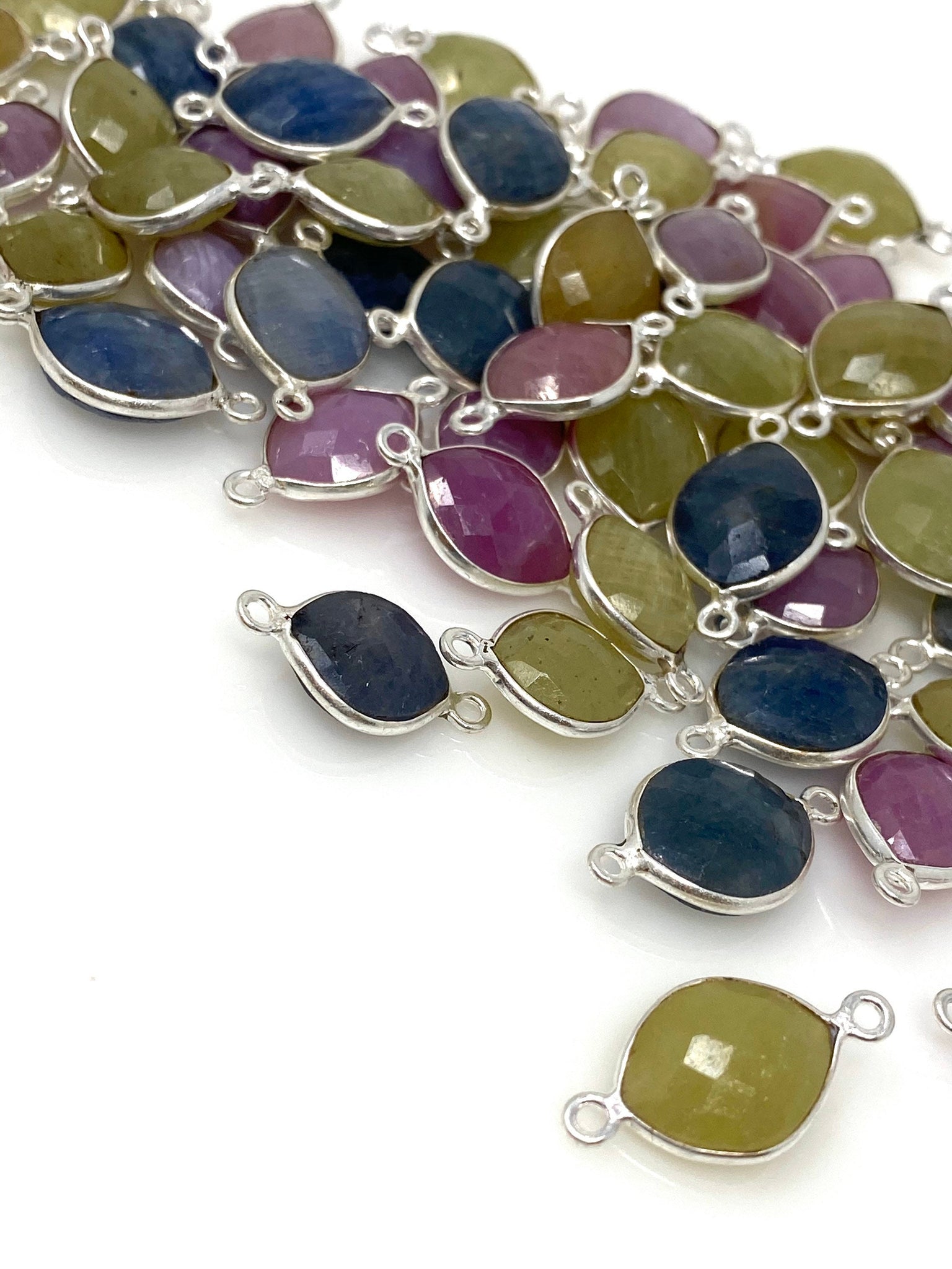 9Pcs/ 10 Pcs Natural Multi Sapphire Gemstone Connectors, Silver Connectors, Bulk Wholesale Jewelry Supplies, 18mm - 20mm