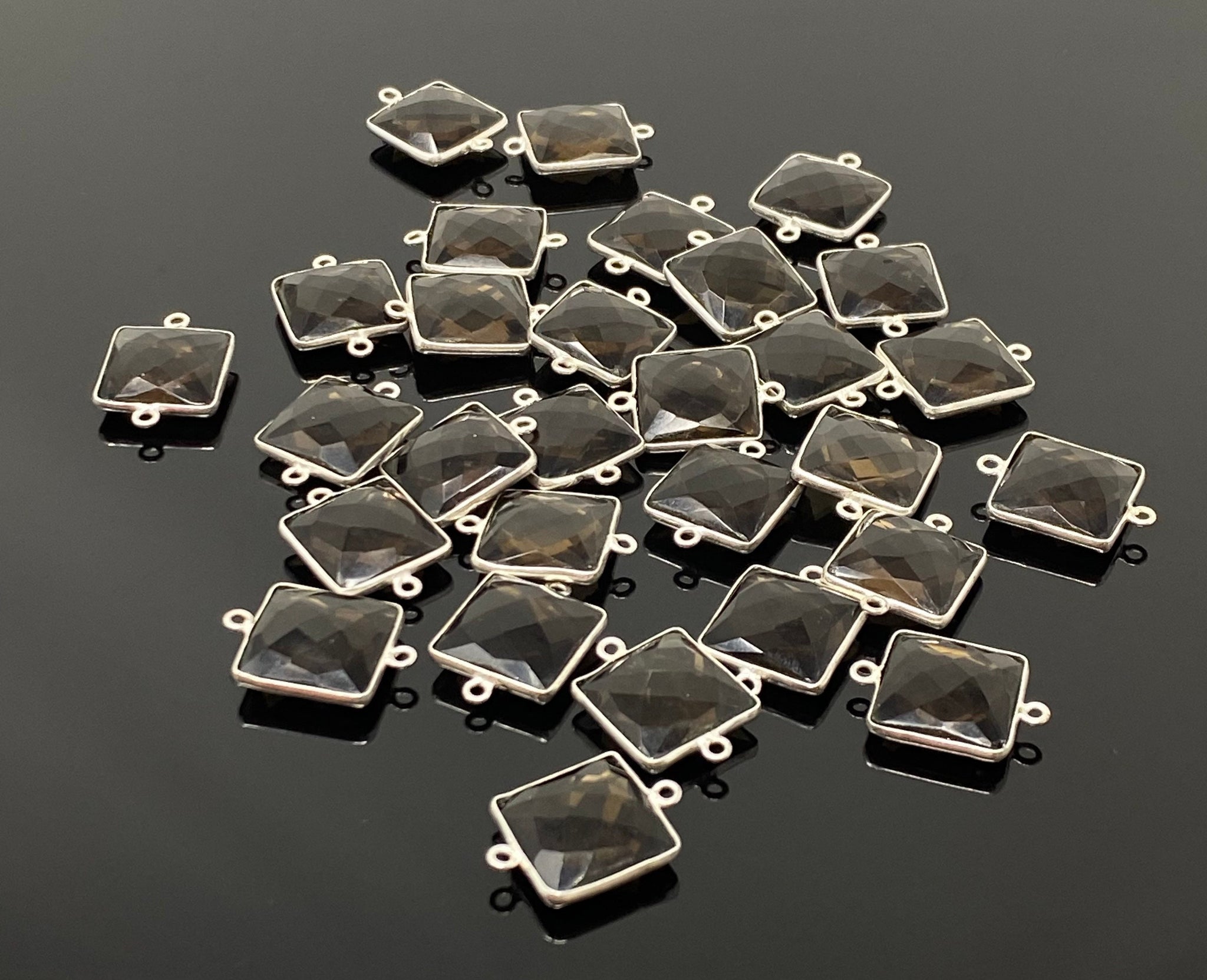9Pcs / 10Pcs Smokey Quartz Connectors, Silver Plated Gemstone Connectors, Wholesale Jewelry Findings forJewelry Making, Bulk Charms