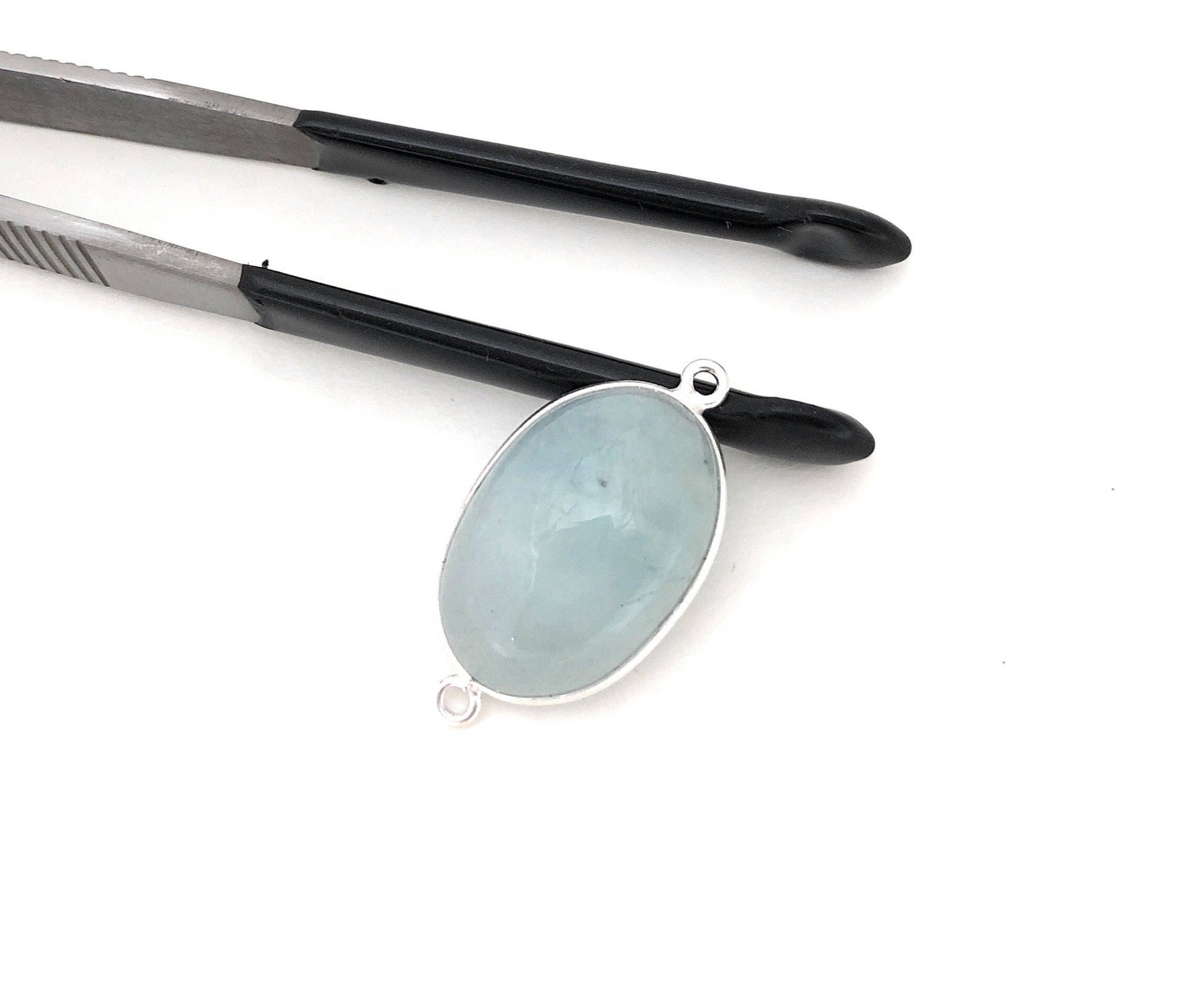 Aquamarine Connectors, Gemstone Connectors, Aquamarine, Silver Connectors, Bezel Connector, Jewelry Supplies, Jewelry Making, DIY, 29x15.5mm