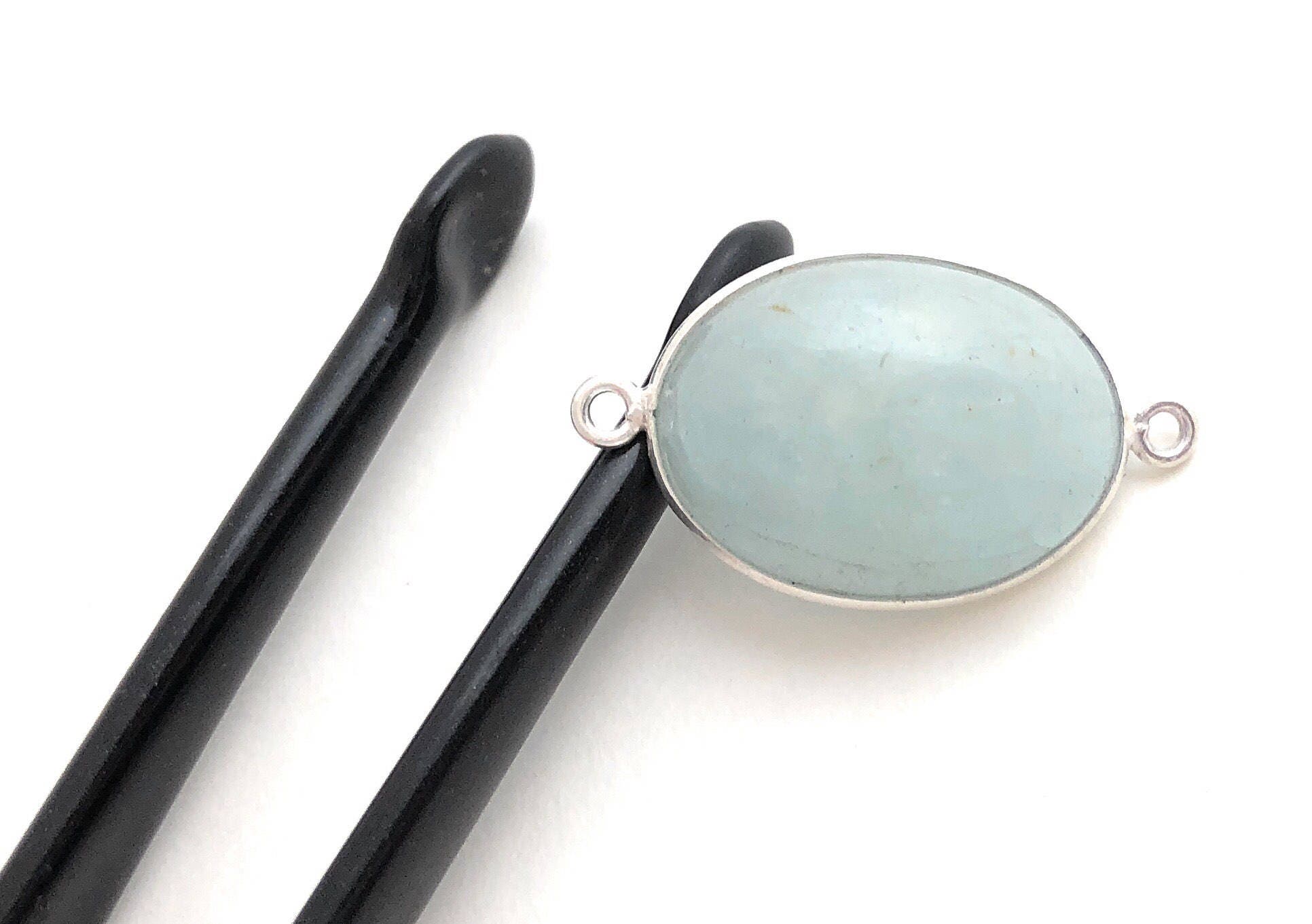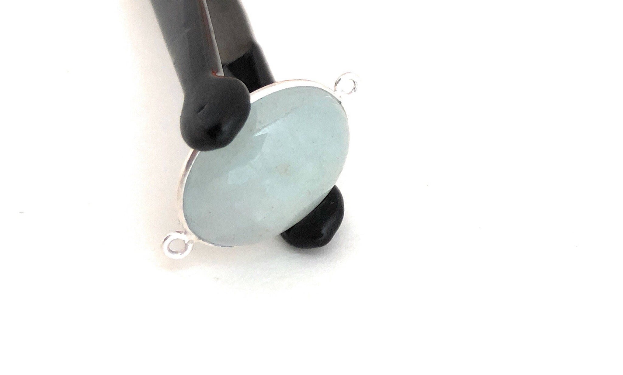 Gemstone Connectors, Aquamarine, Silver Connectors, Aquamarine Connector, Bezel Connector, Jewelry Supplies, Jewelry Making, DIY, 27x15.75mm