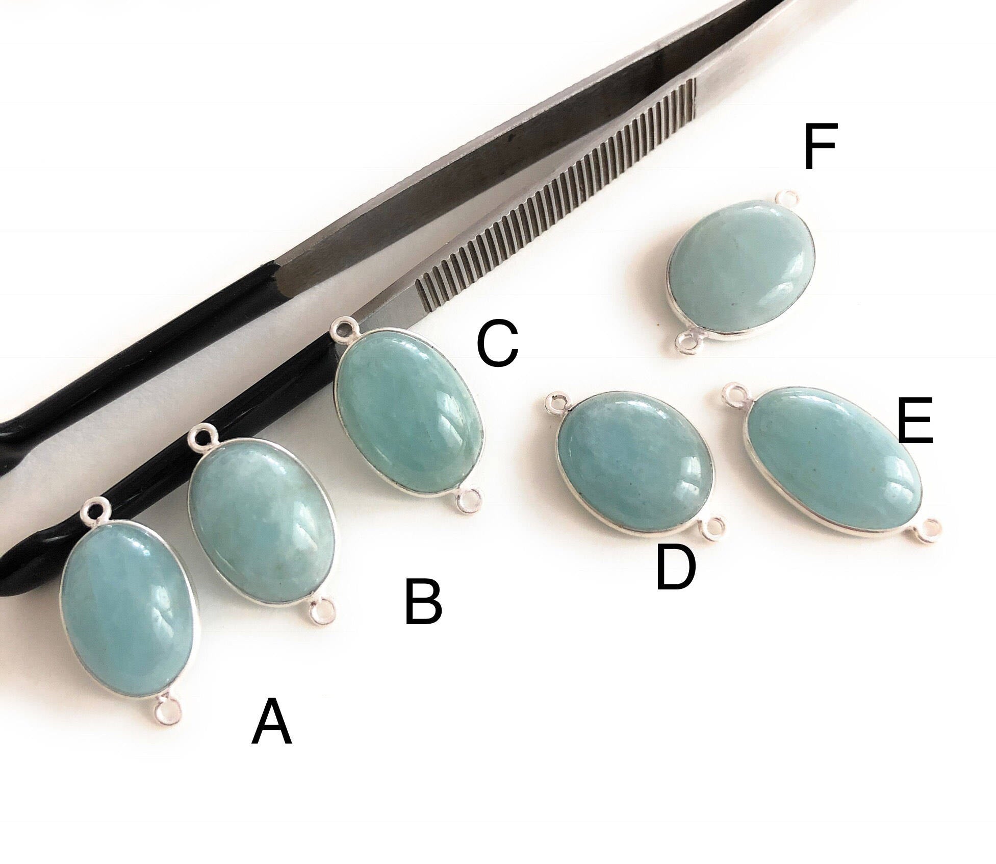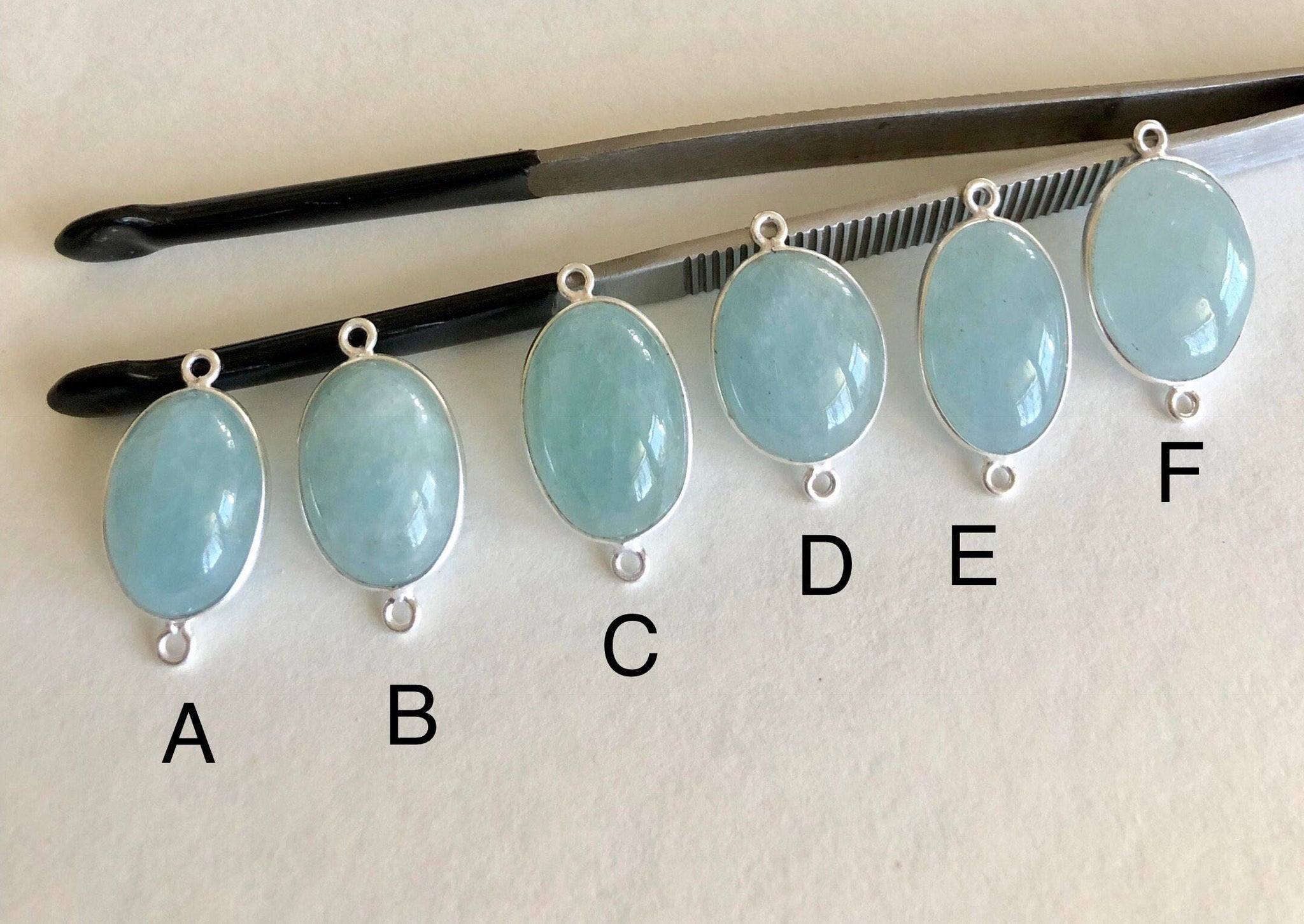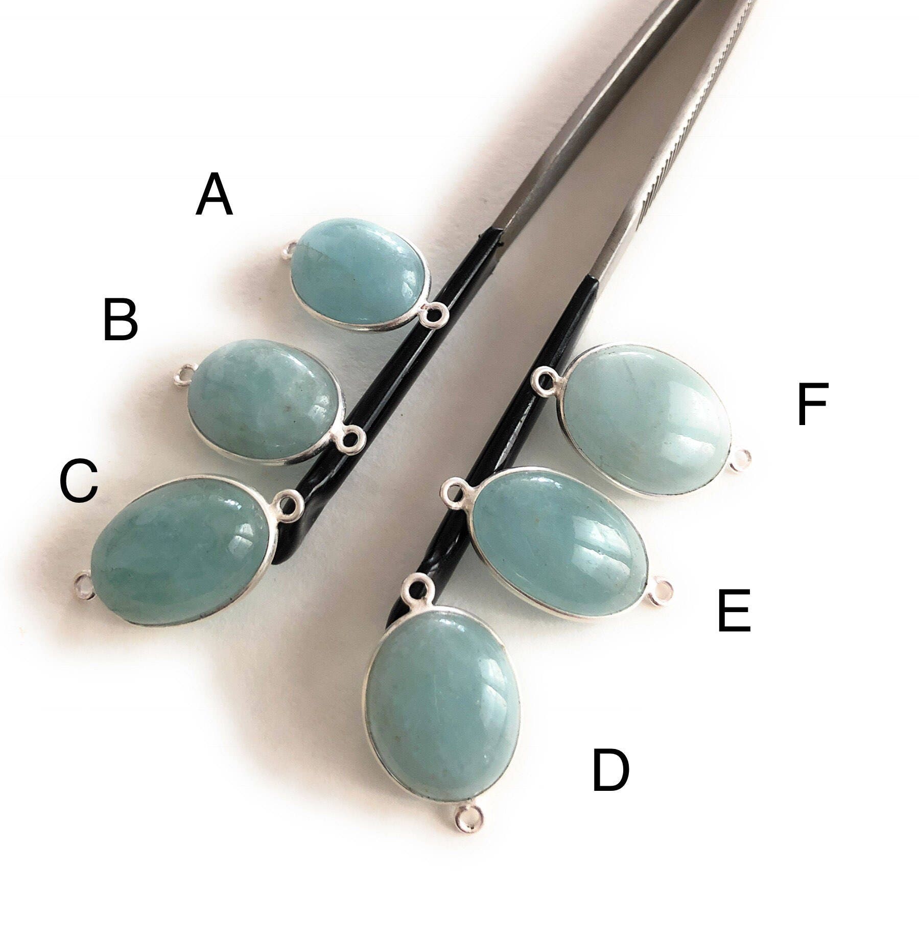 Gemstone Connectors, Silver Connectors, Aquamarine Connectors, Bezel Connectors, Jewelry Supplies, Jewelry Making, Natural Gemstone, DIY
