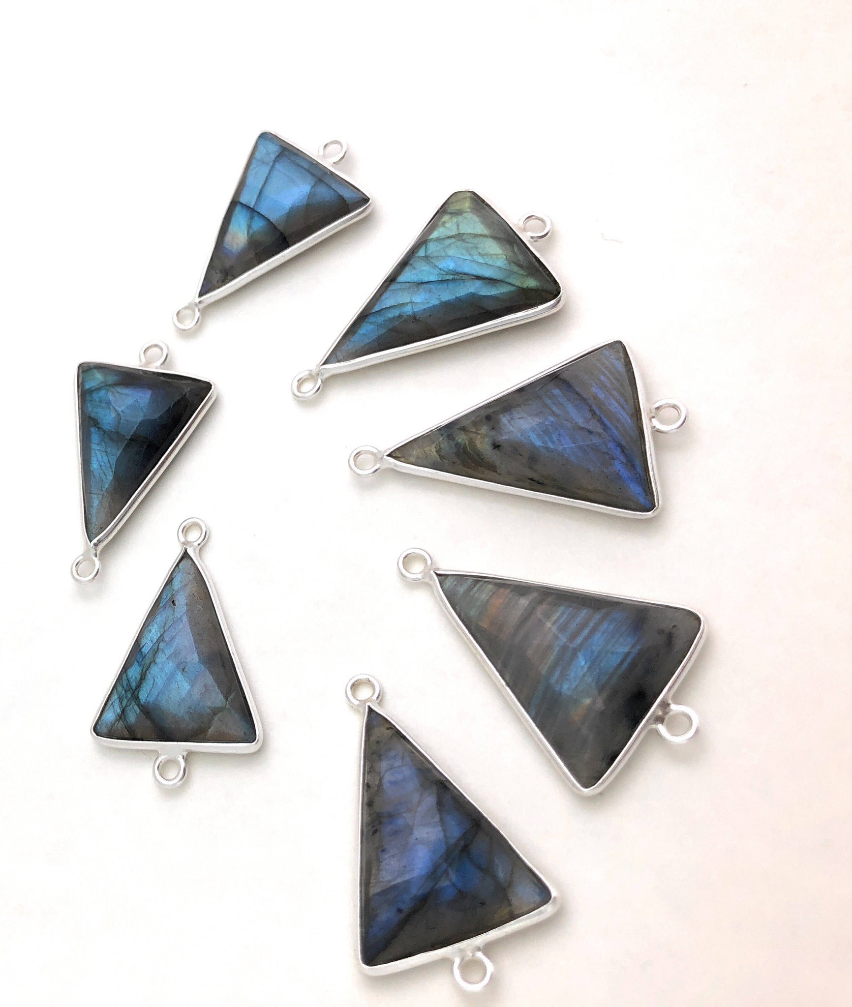 These beautiful Handmade Sterling Silver Triangle Shape Large Size Natural Gemstone Faceted Labradorite Connectors are an excellent choice for making any Jewelry Design.