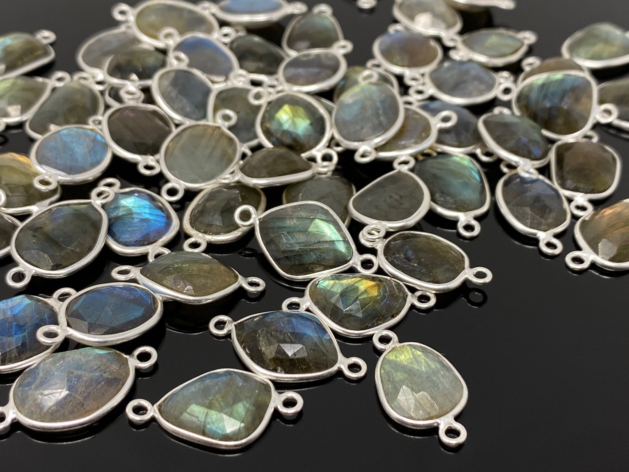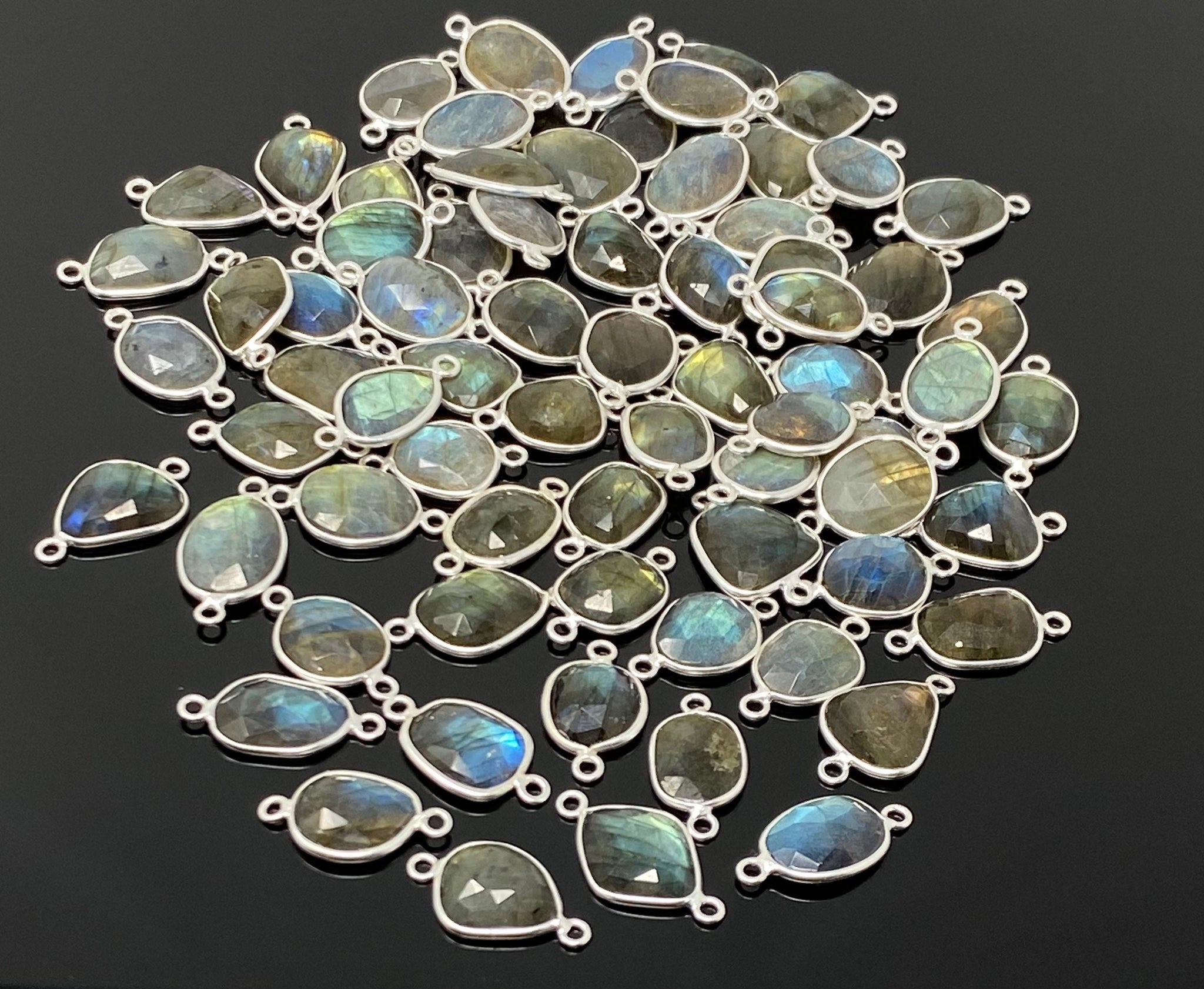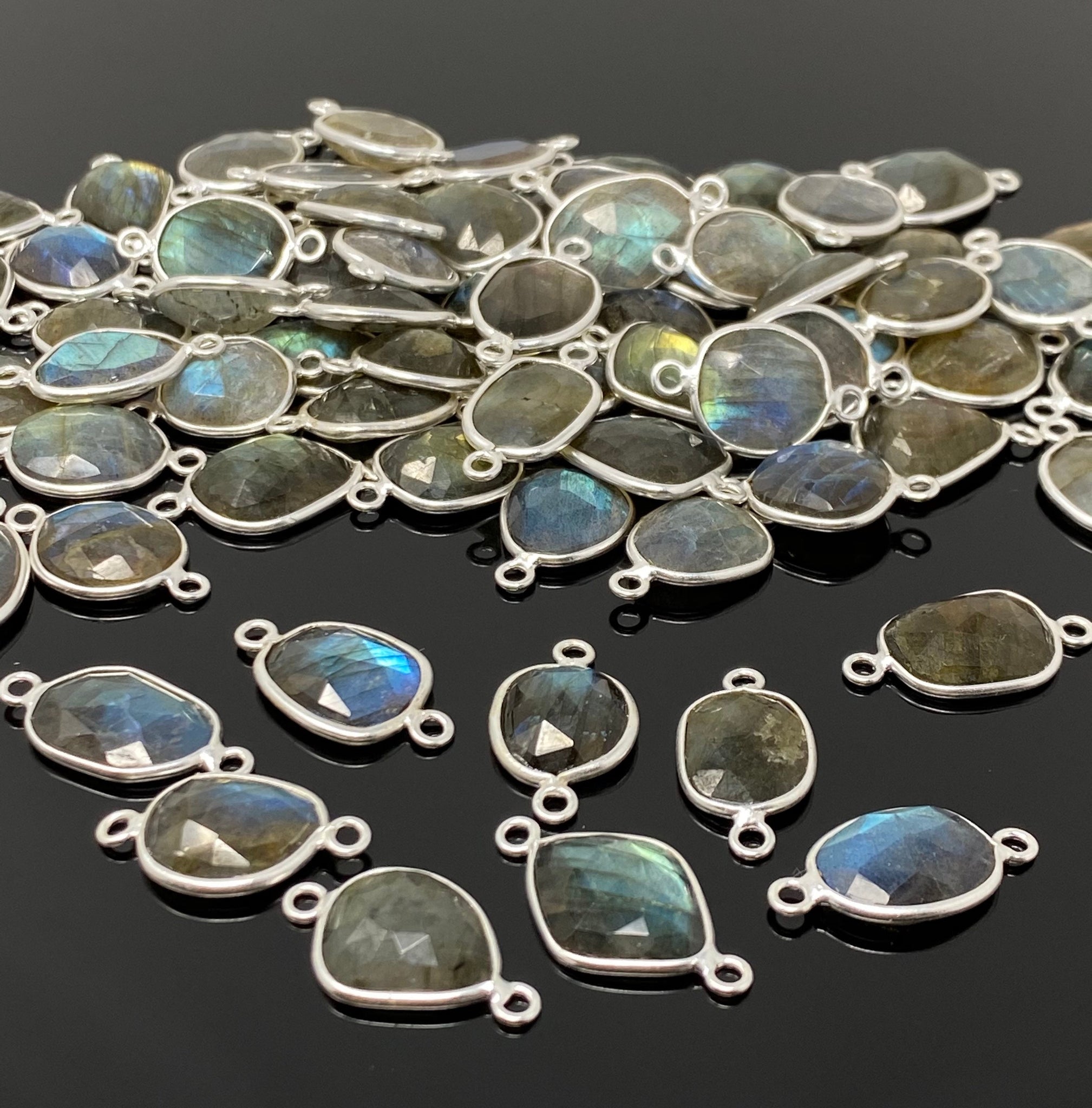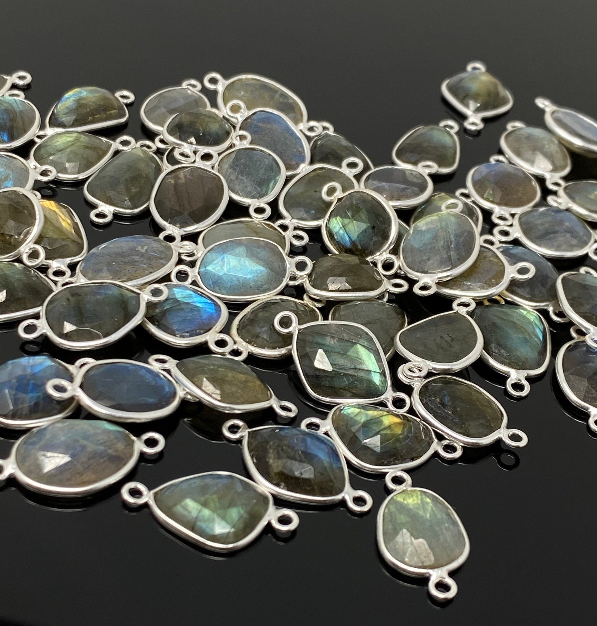 Labradorite Gemstone Bezel Connectors Sterling Silver Jewelry Supplies for Jewelry Making at Wholesale Price.