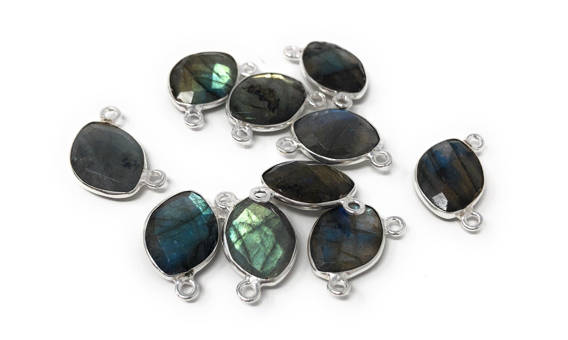 Sterling Silver Labradorite Gemstone Briolette Connectors Jewelry Findings for Jewelry Making at Wholesale Price.