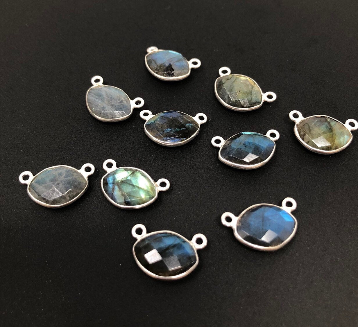 Labradorite Gemstone Connector, Sterling Silver Double Bail Connector Charms, Jewelry findings for DIY Jewelry Making, 17x11mm, 8 Pcs