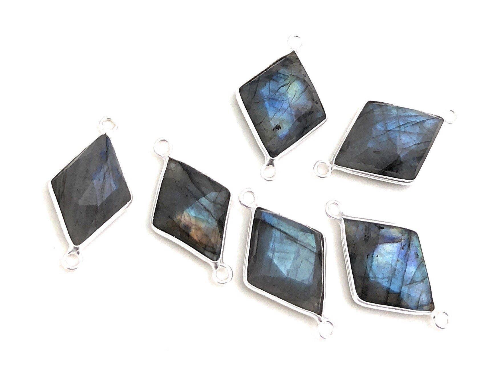 These beautiful Handmade Sterling Silver Fancy Diamond Shape Large Size Natural Gemstone Faceted Labradorite Connectors are an excellent choice for making any Jewelry Design.