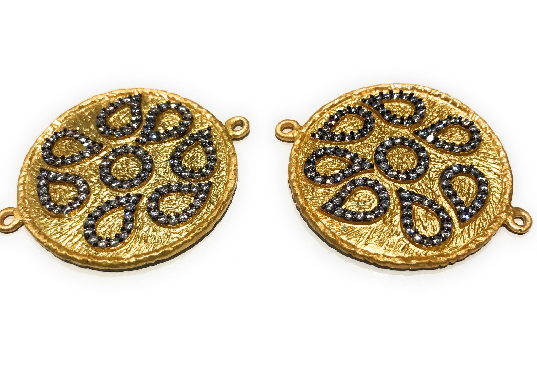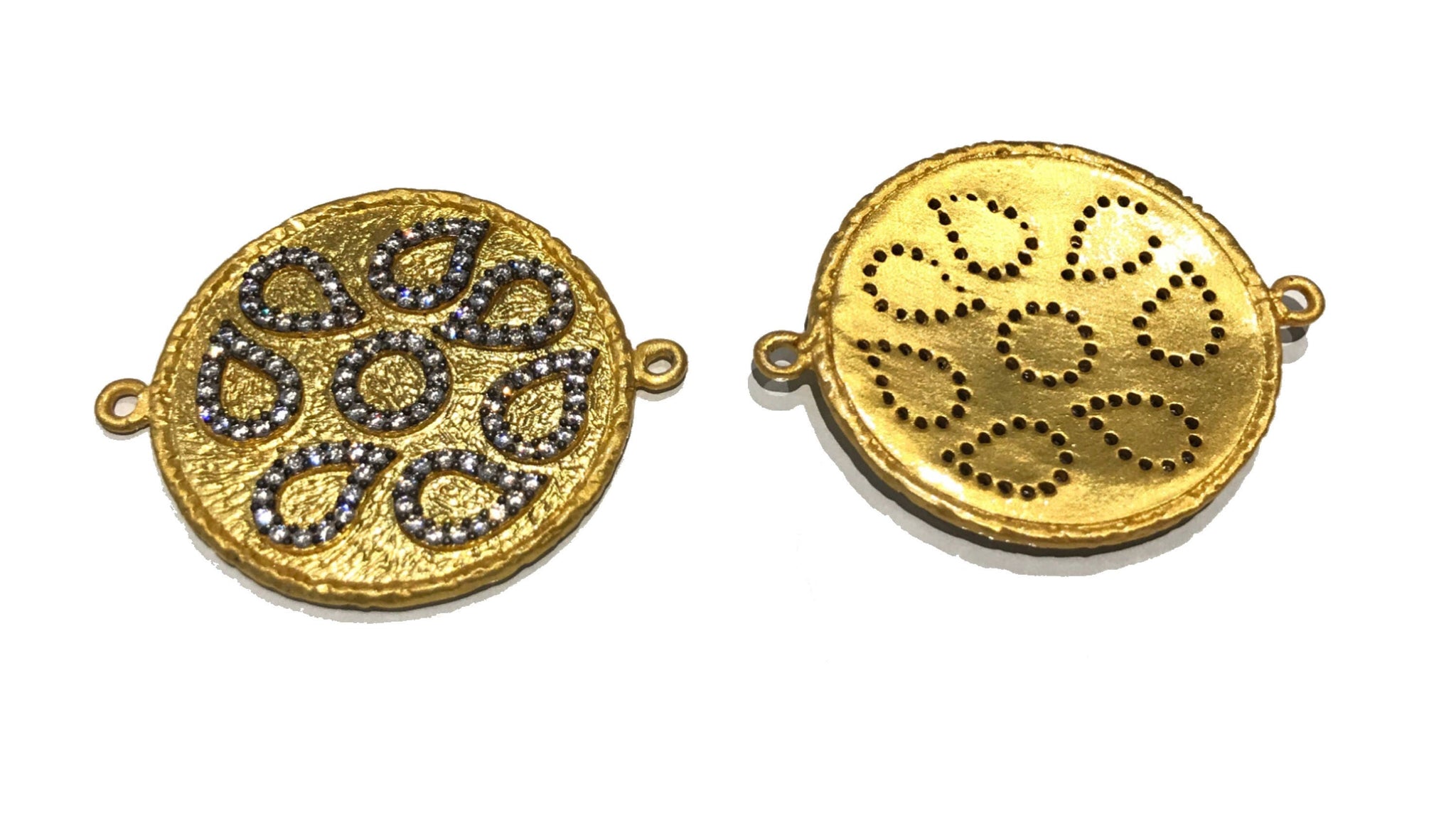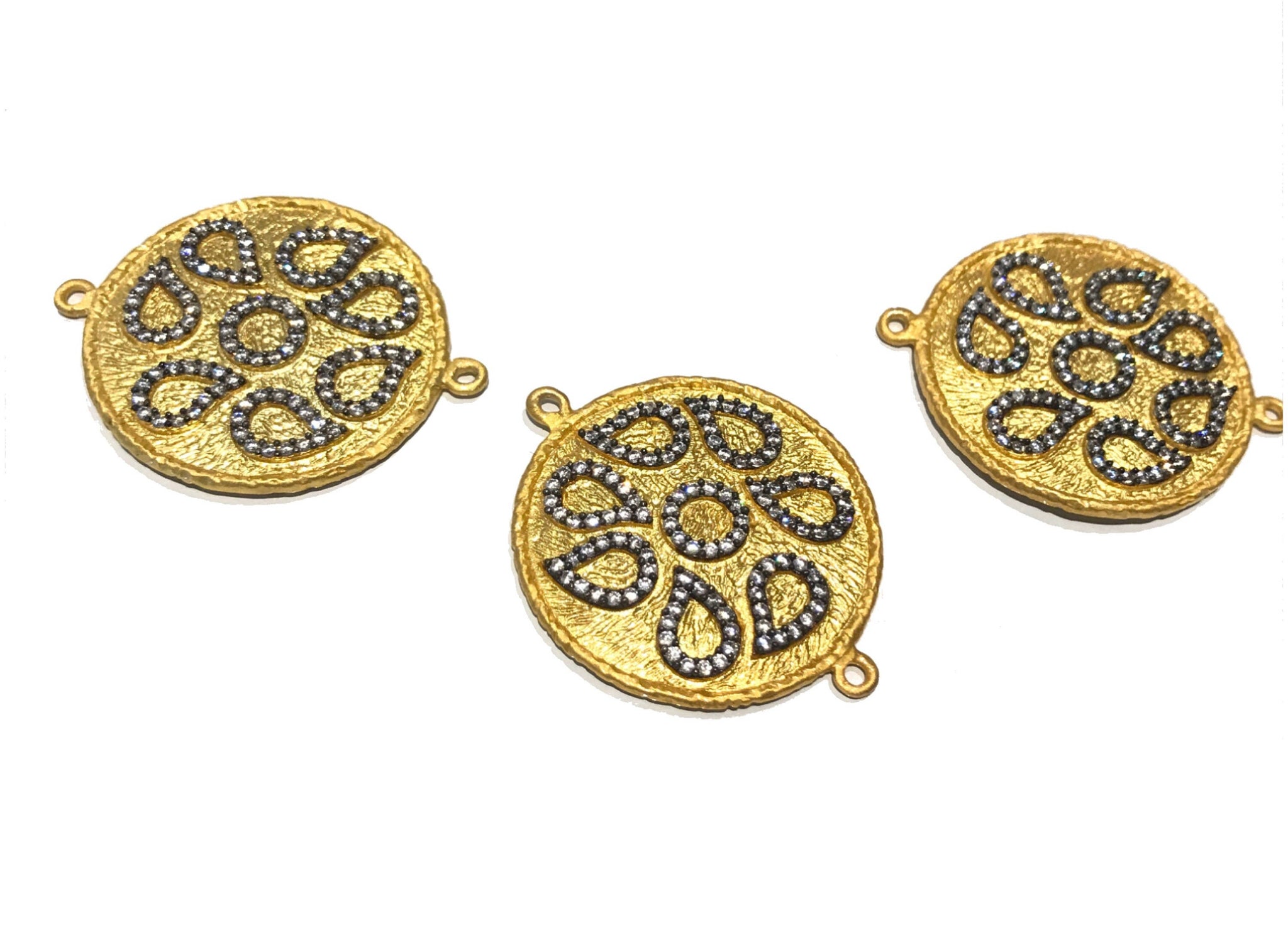 This Beautiful 14K Gold Plated Large Size CZ Round Disc Connector is an excellent choice for making Bracelets or Gorgeous Necklace.