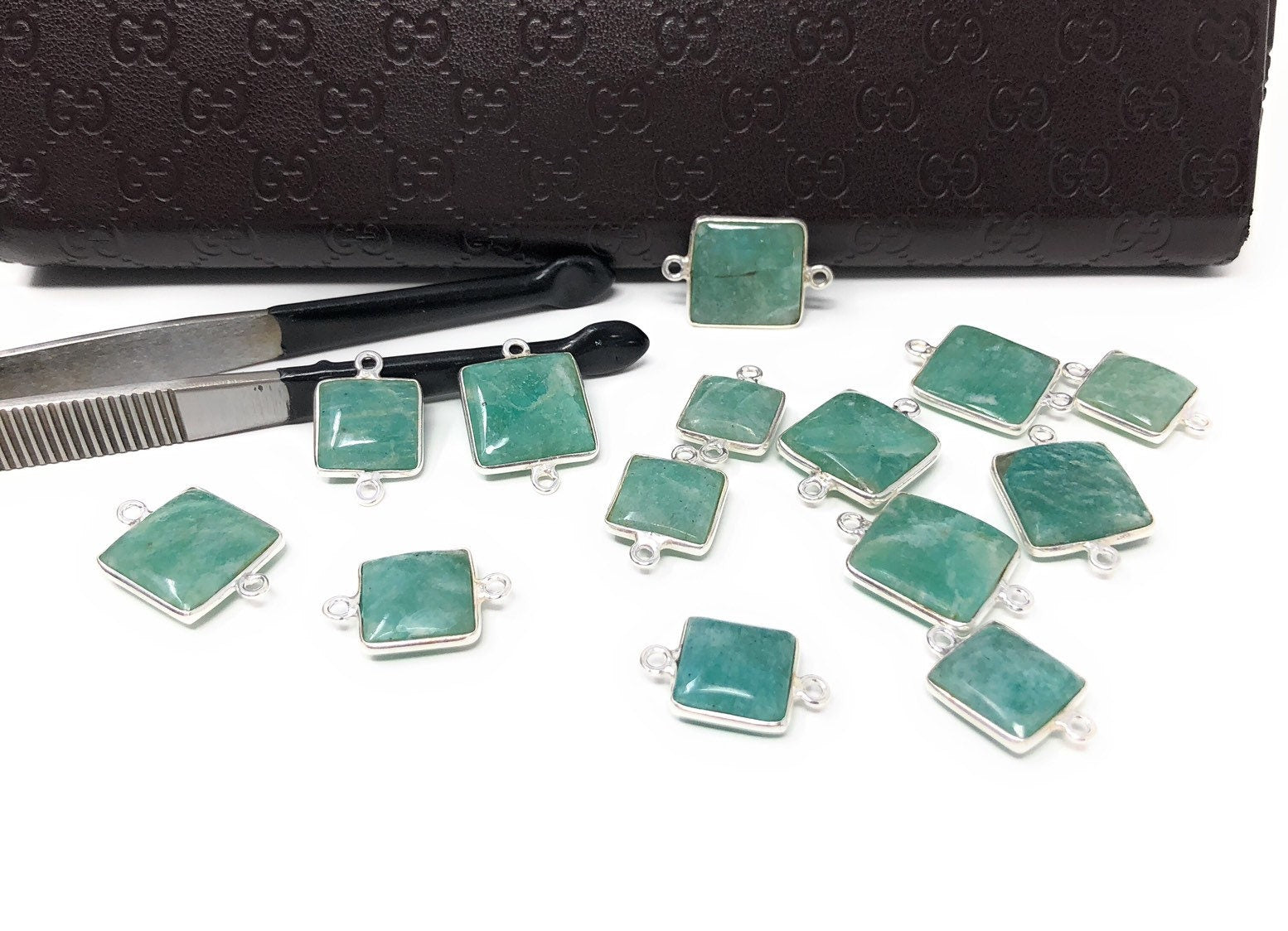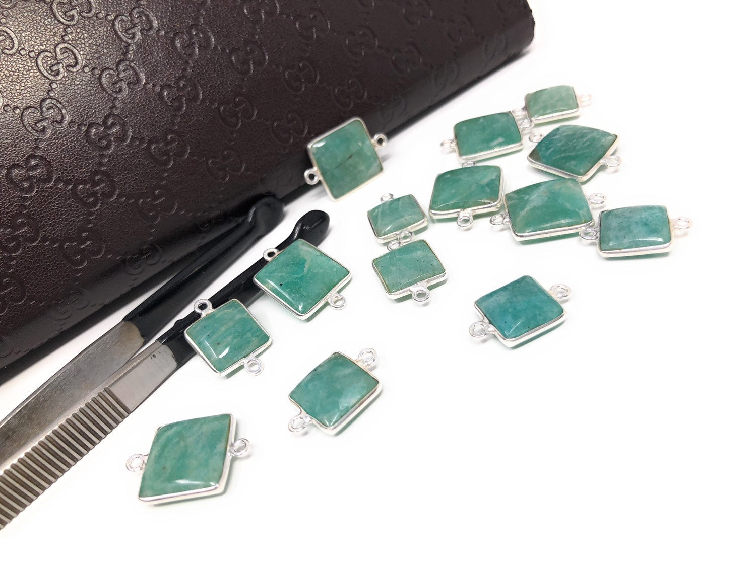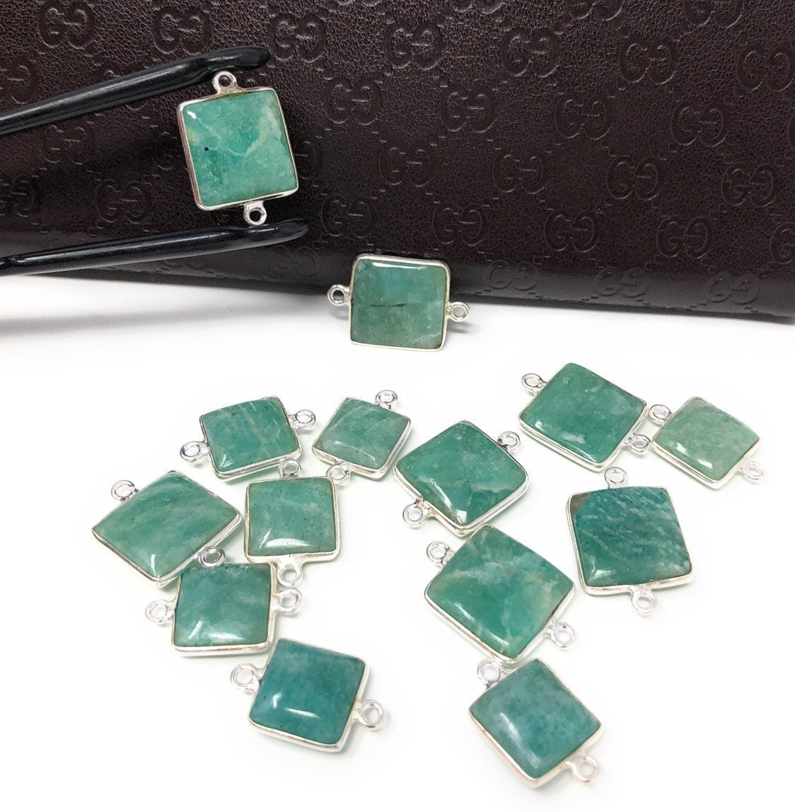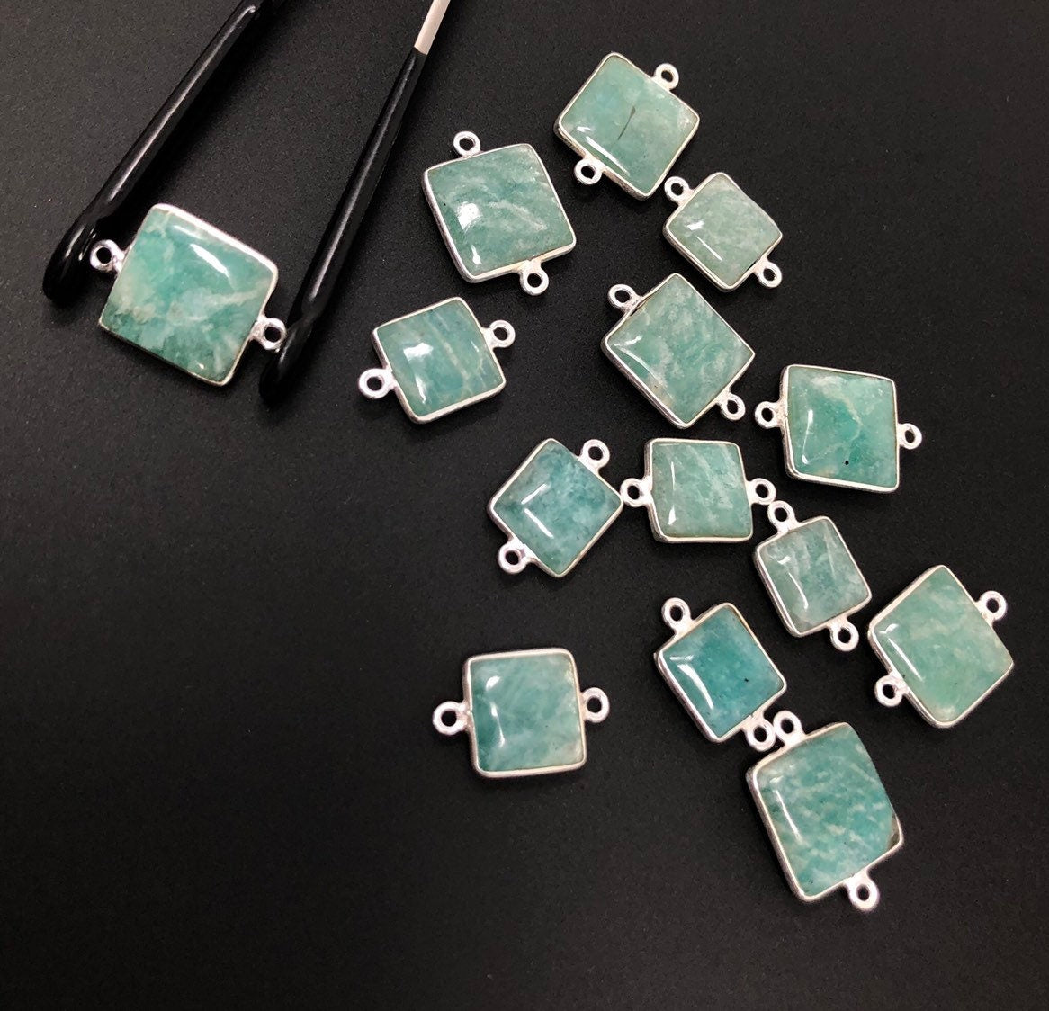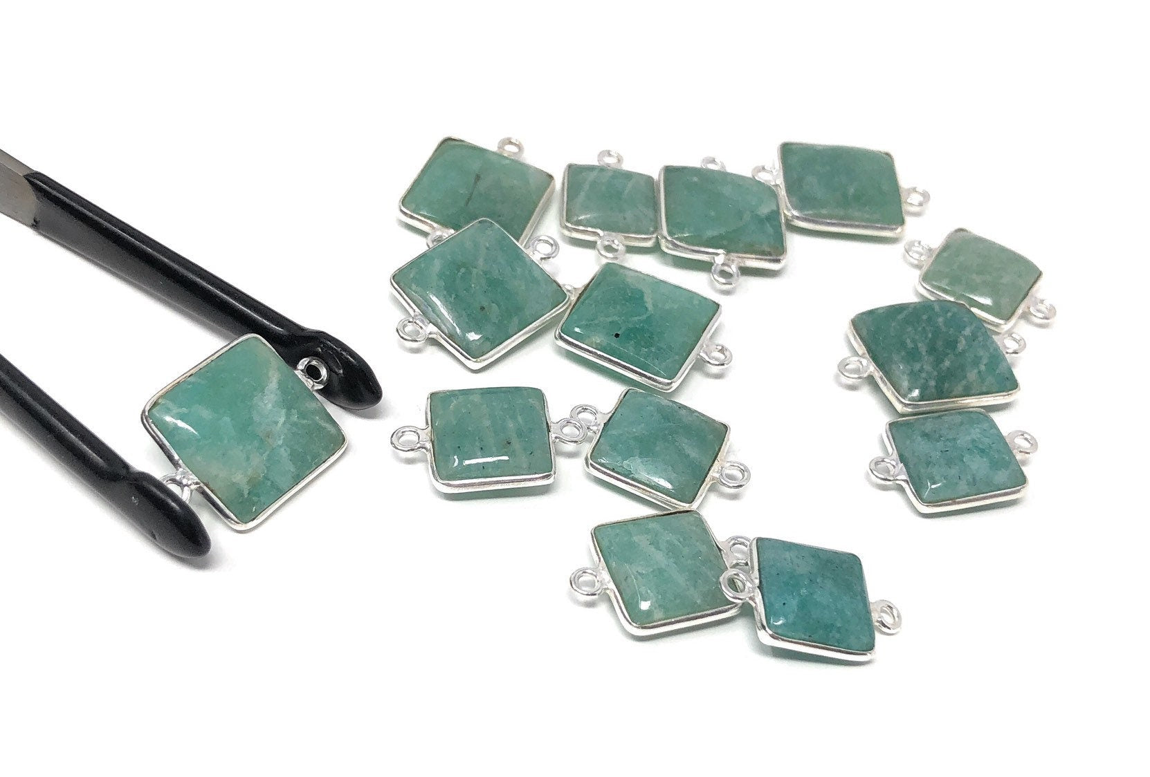 Sterling Silver Natural Gemstone Amazonite Bezel Set Double Sided Briolette Connector Jewelry Findings for Jewelry Making at Wholesale Price.