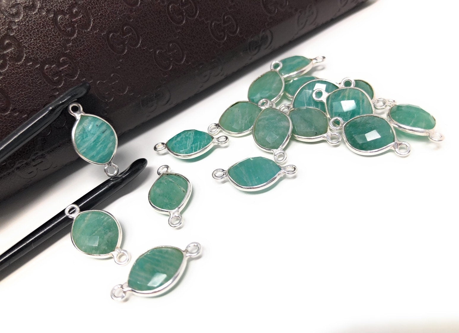 Sterling Silver Natural Gemstone Amazonite Bezel Set Double Sided Briolette Connector Jewelry Findings for Jewelry Making at Wholesale Price.