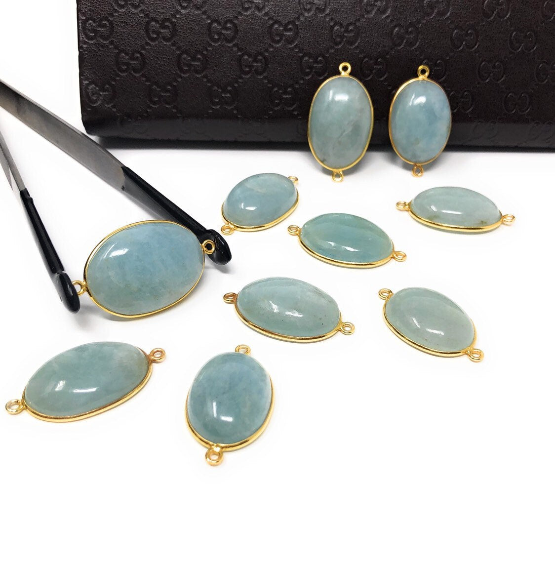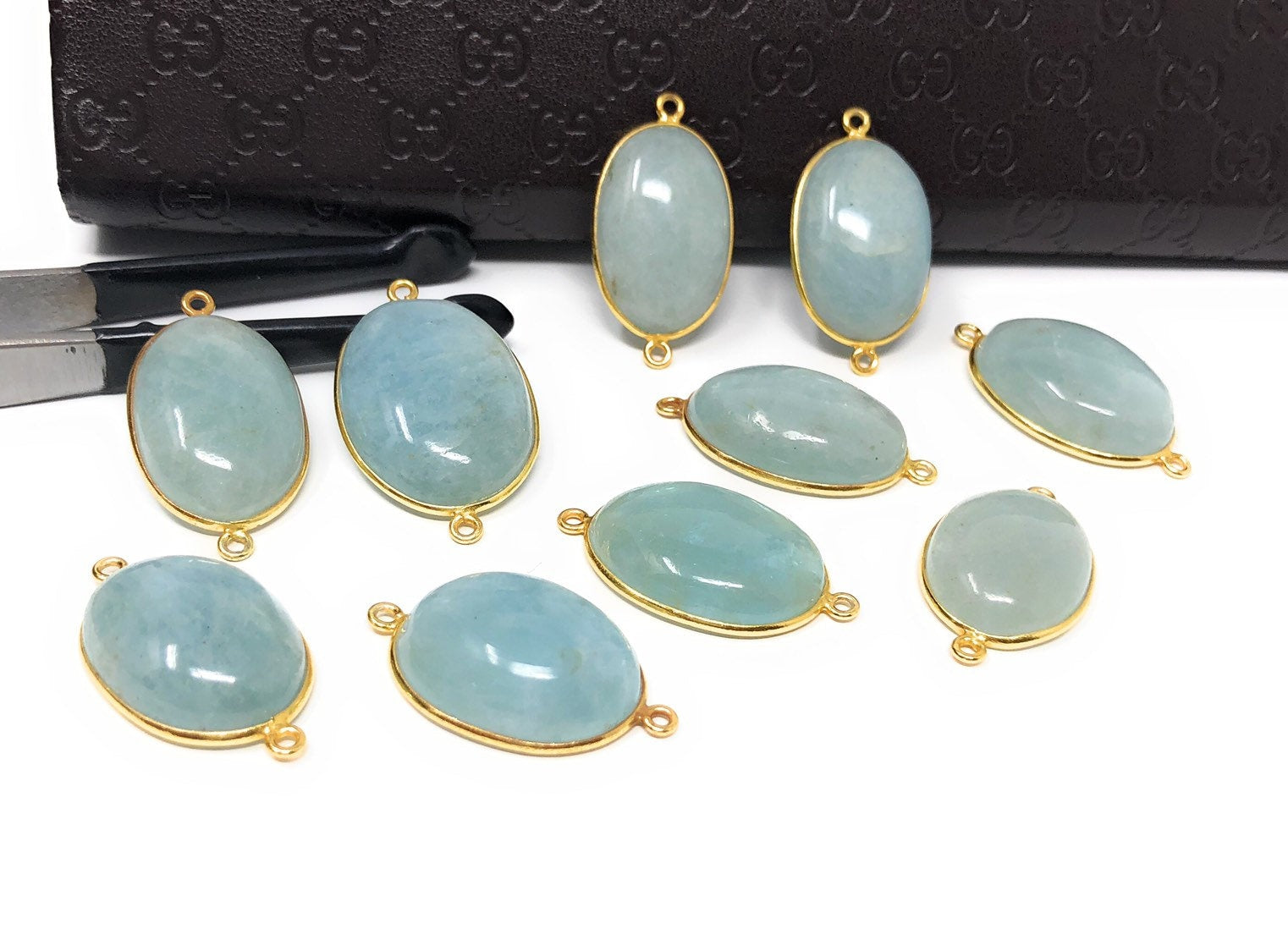 Natural Aquamarine Connectors, Gold Plated Sterling Silver Gemstone Connectors, Jewelry Findings, Jewelry Supplies for Jewelry Making, 1 pc