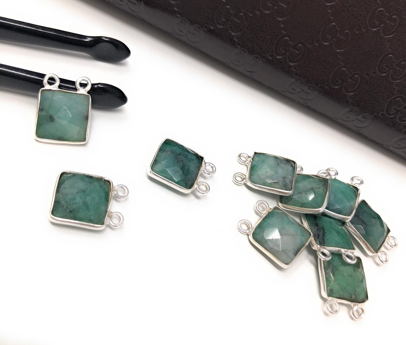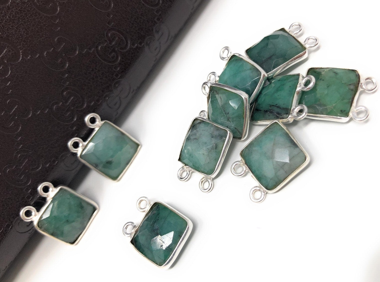 Sterling Silver Natural Emerald Gemstone Connectors Jewelry Findings for Jewelry Making at Wholesale Price.