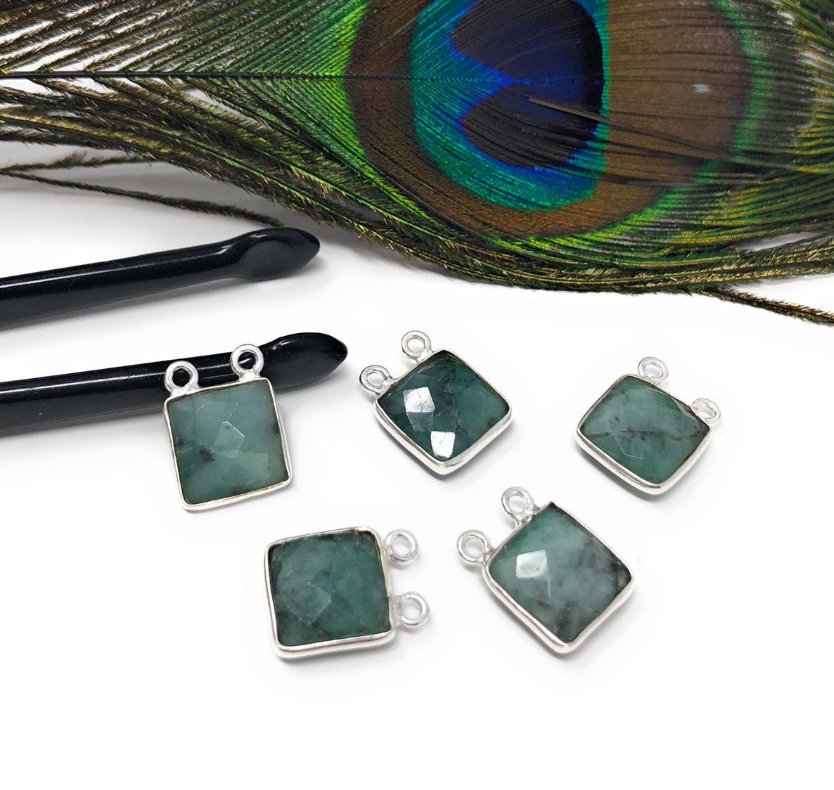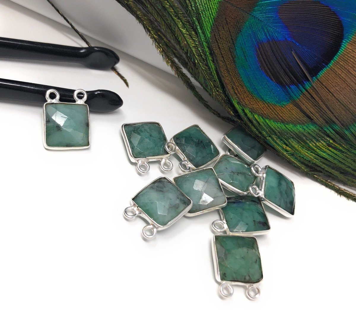 These beautiful Handmade Sterling Silver Natural Gemstone Sakota Emerald Double Bail Square Shape Briolette Connector are an excellent choice for making any Jewelry Design. It can be used for making Anklet, Bracelet, Necklace or can be used for making exclusive Jewelry Piece. It can also be used to make Gemstone Belt.