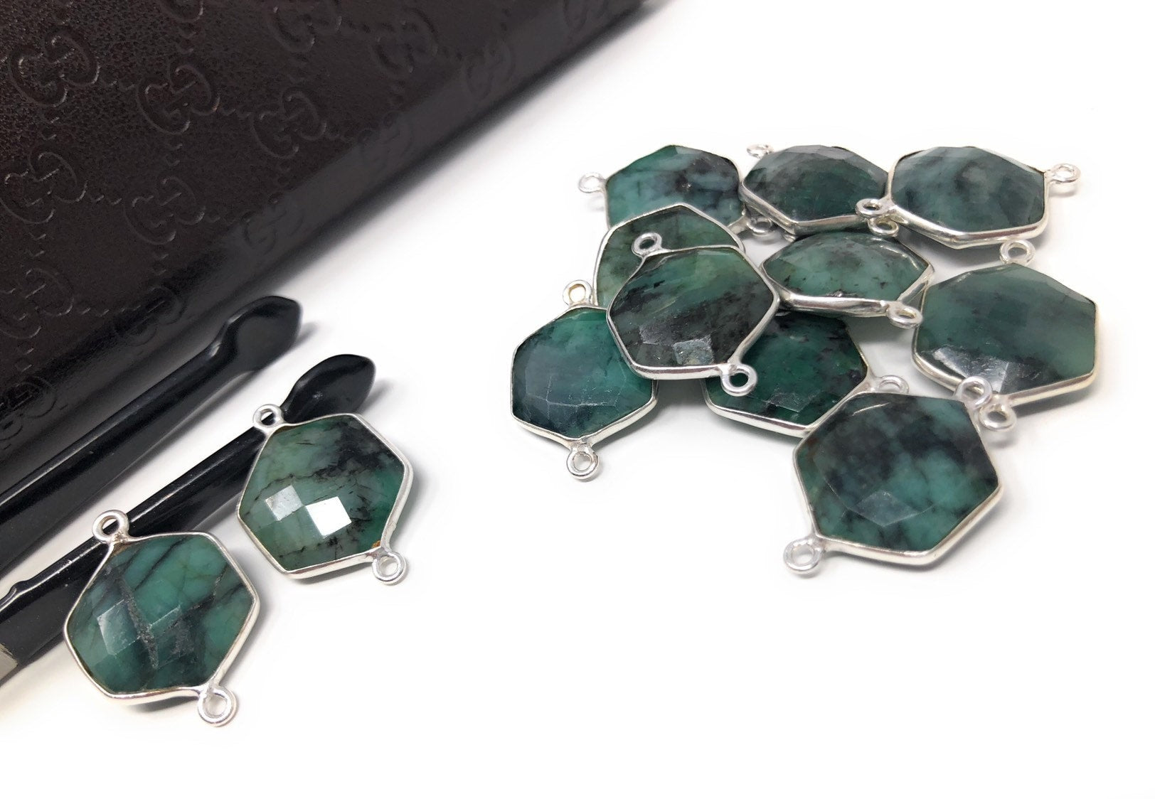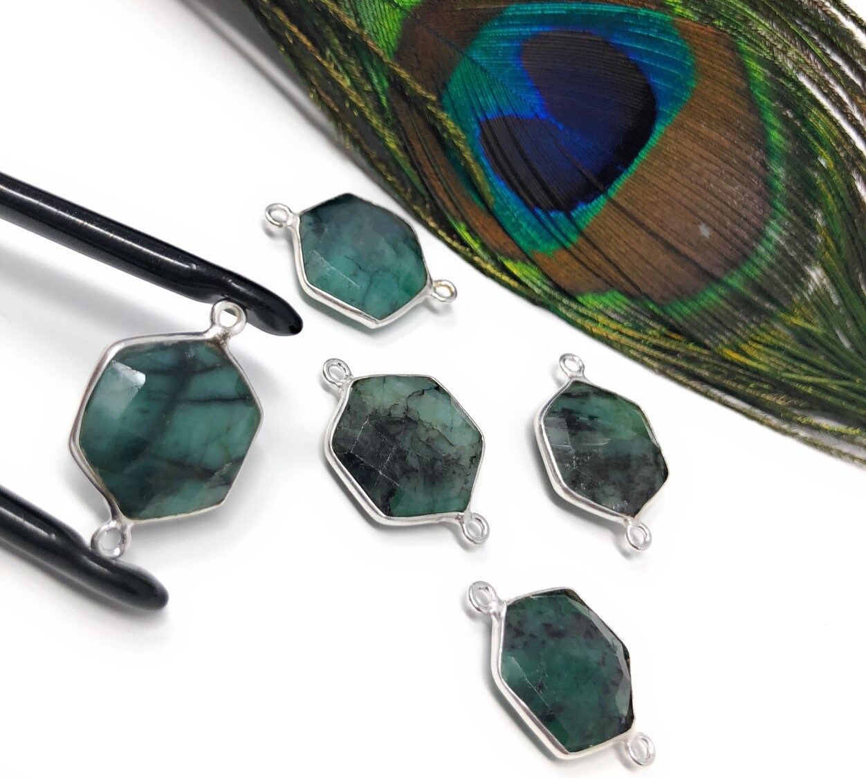 These beautiful Handmade Sterling Silver Natural Gemstone Sakota Emerald Double Bail Hexagon Shape Briolette Connector are an excellent choice for making any Jewelry Design. It can be used for making Anklet, Bracelet, Necklace or can be used for making exclusive Jewelry Piece. It can also be used to make Gemstone Belt.