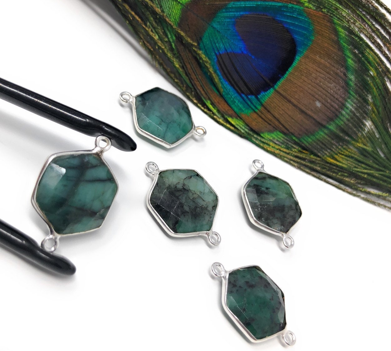 Sterling Silver Natural Emerald Gemstone Connectors Jewelry Findings for Jewelry Making at Wholesale Price.