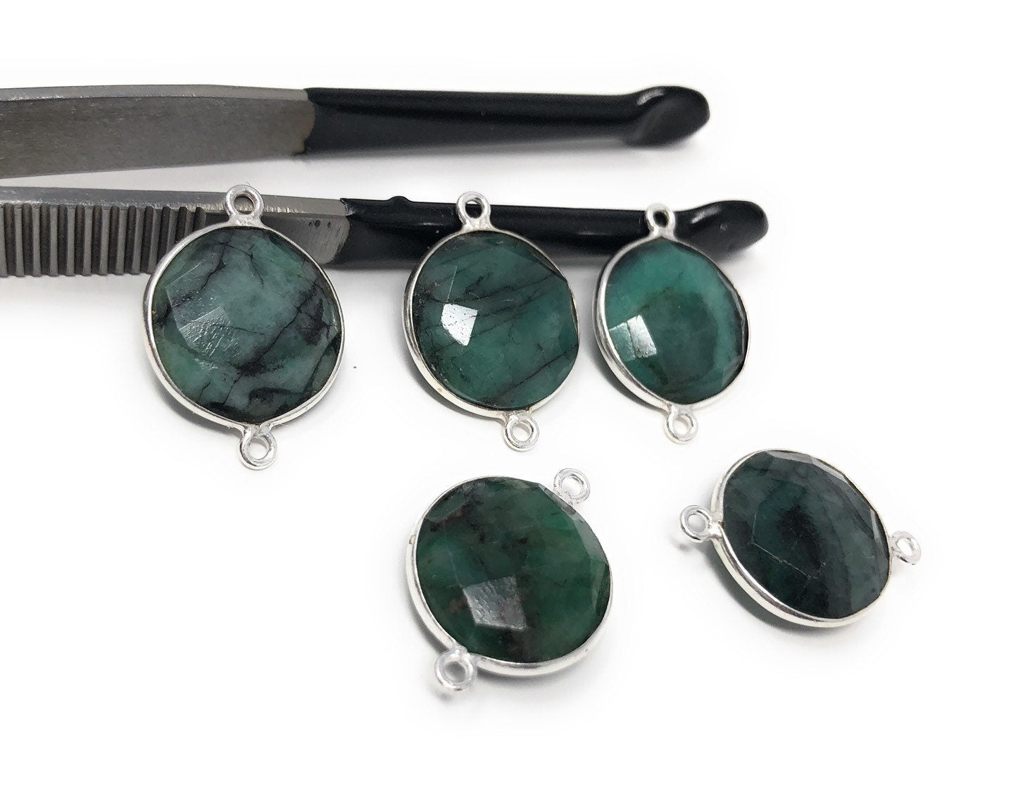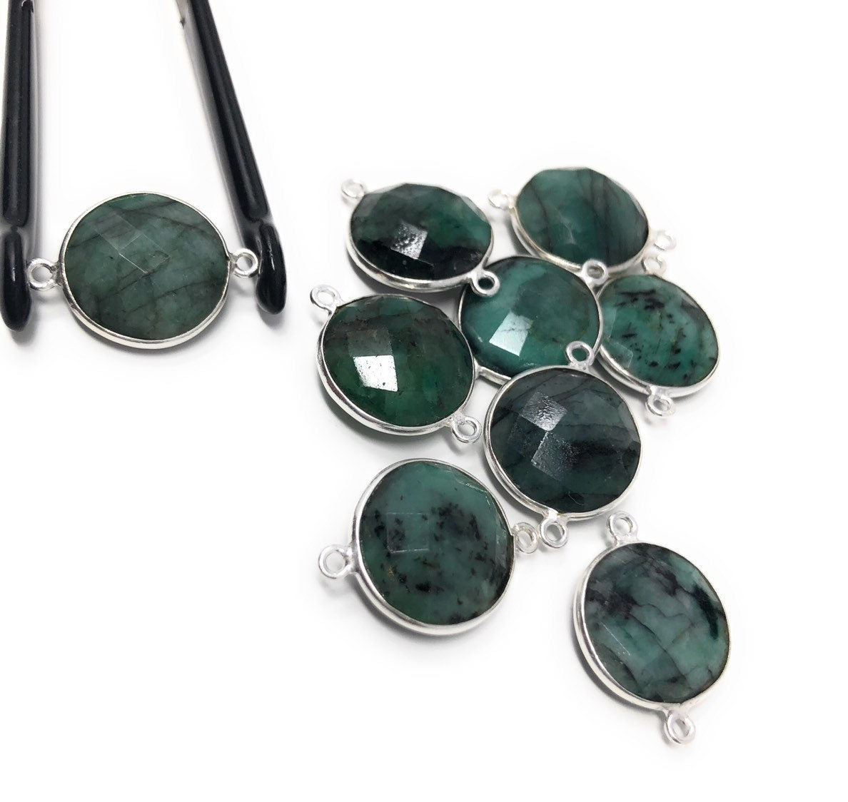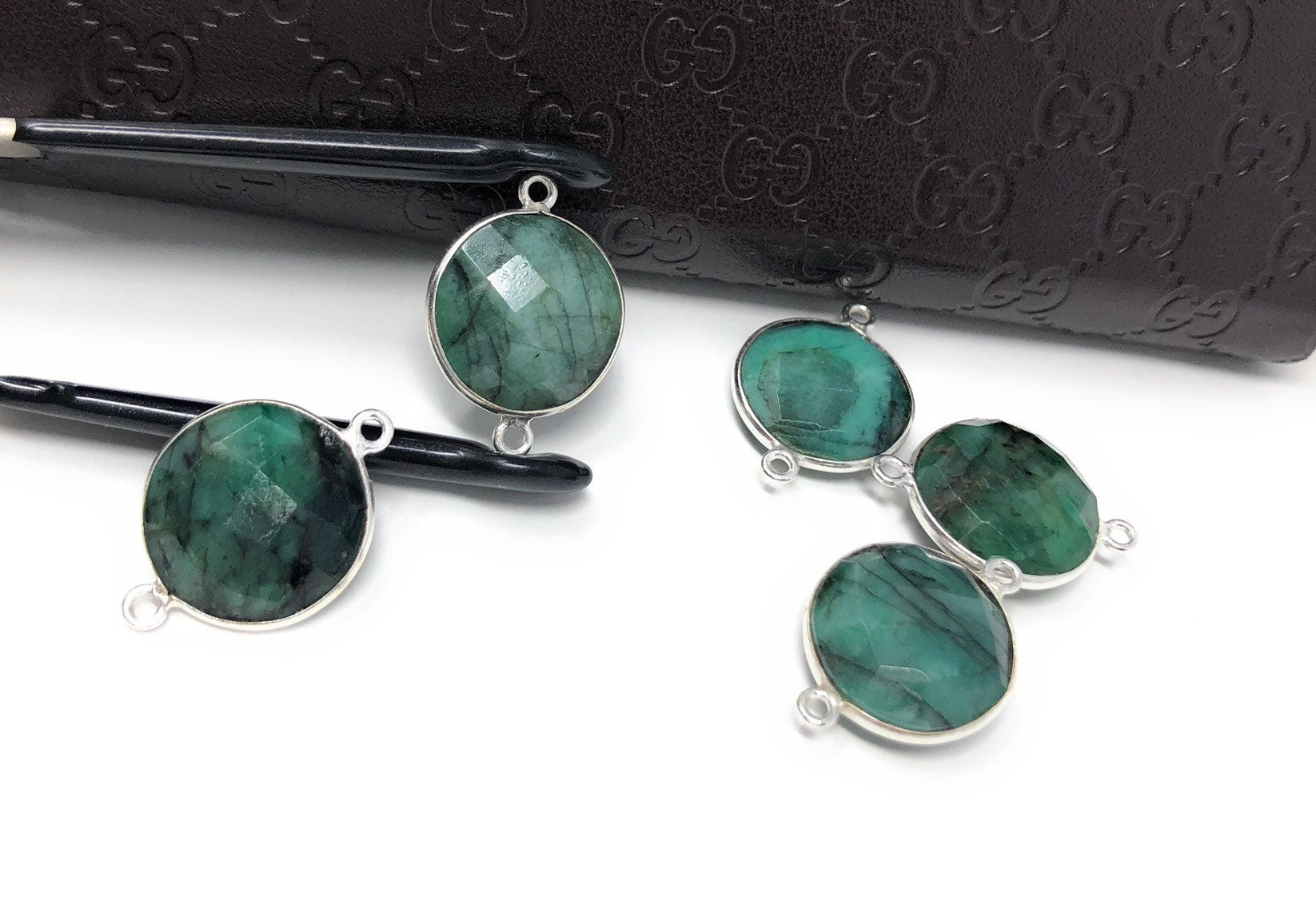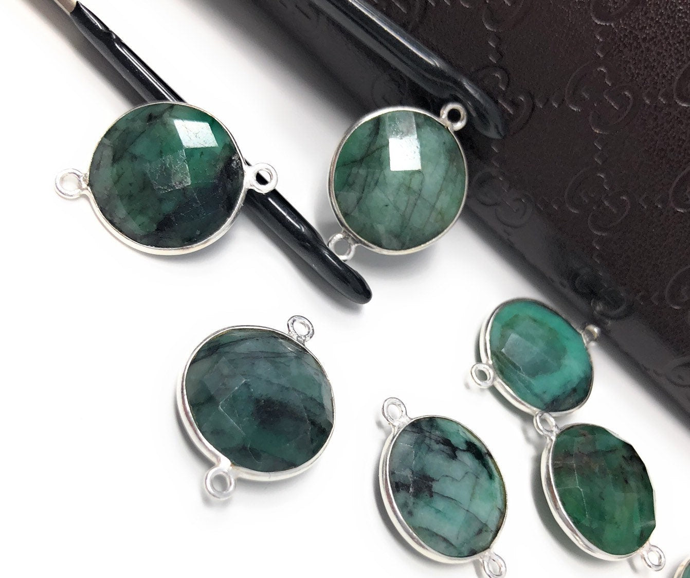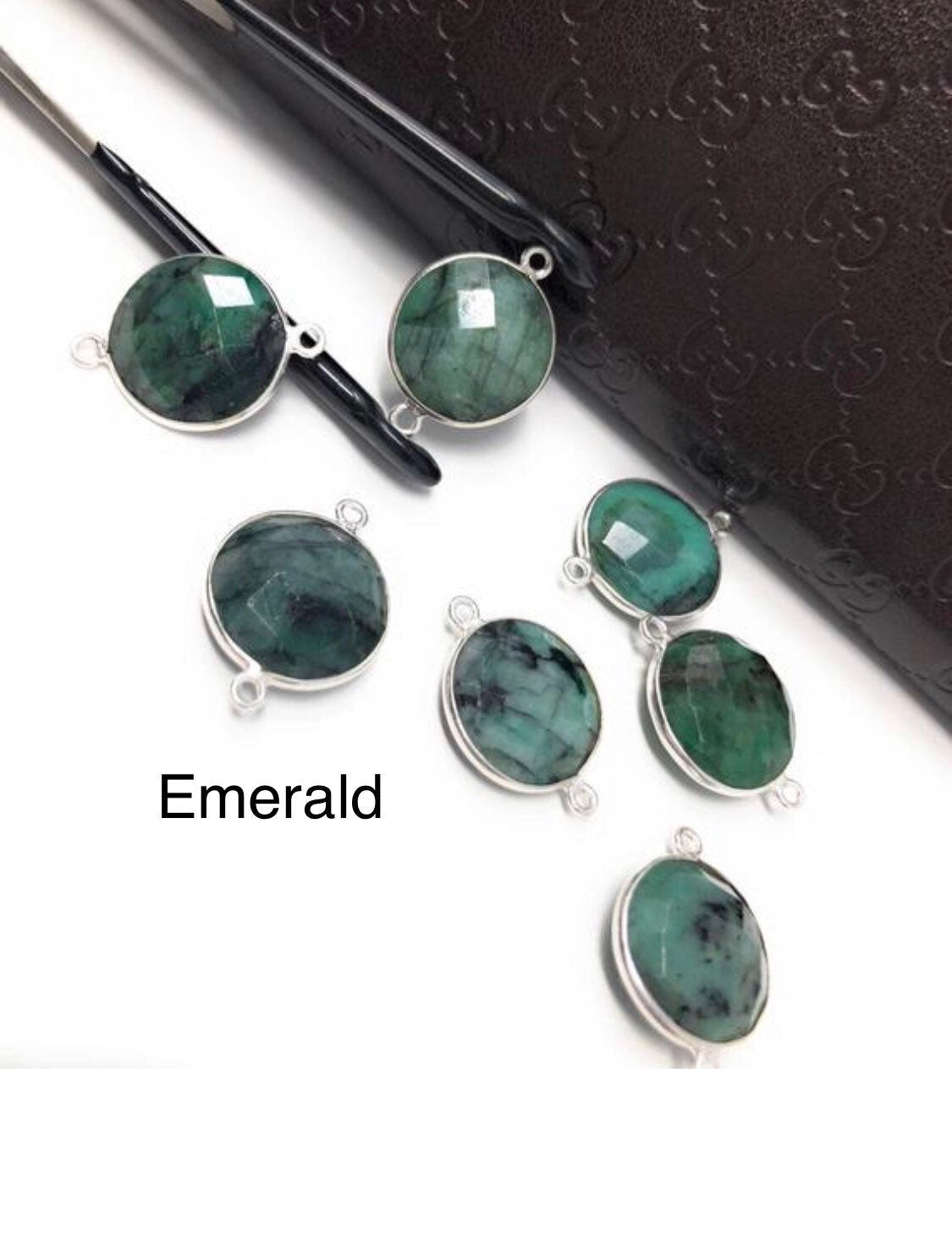 Sterling Silver Natural Emerald Gemstone Connectors Jewelry Findings for Jewelry Making at Wholesale Price.