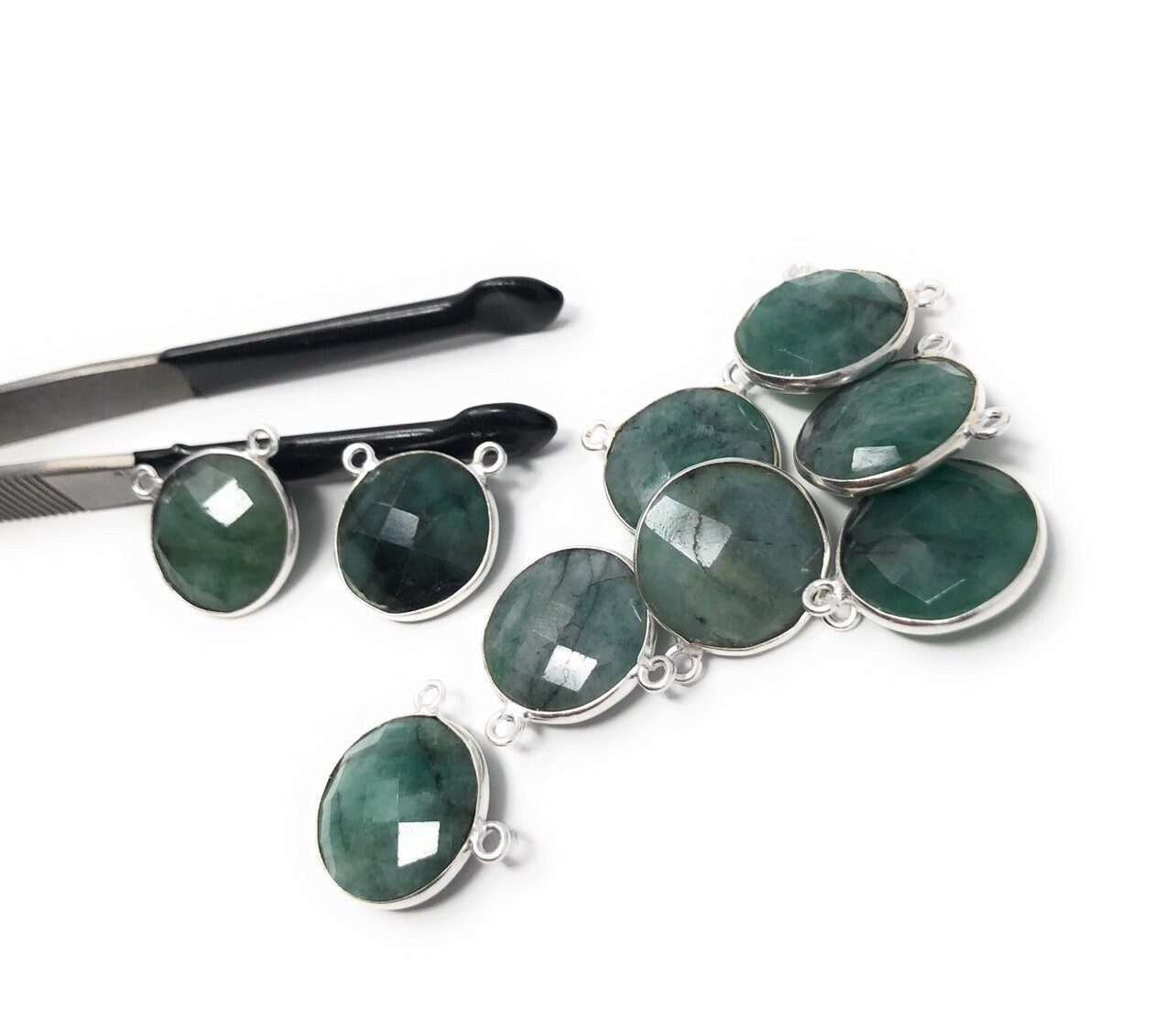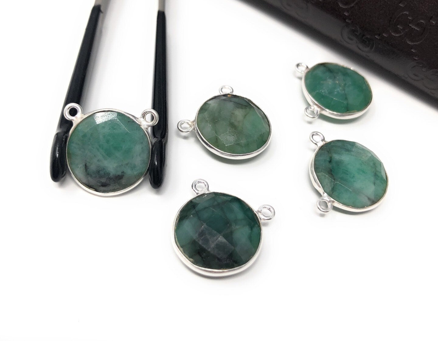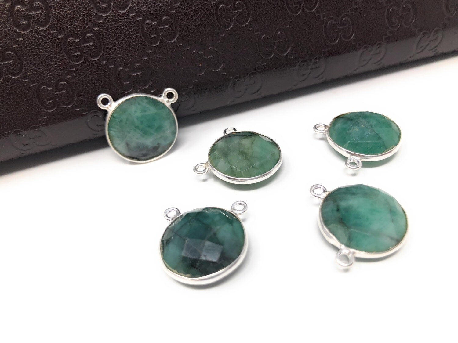Sterling Silver Natural Emerald Gemstone Connectors Jewelry Findings for Jewelry Making at Wholesale Price.